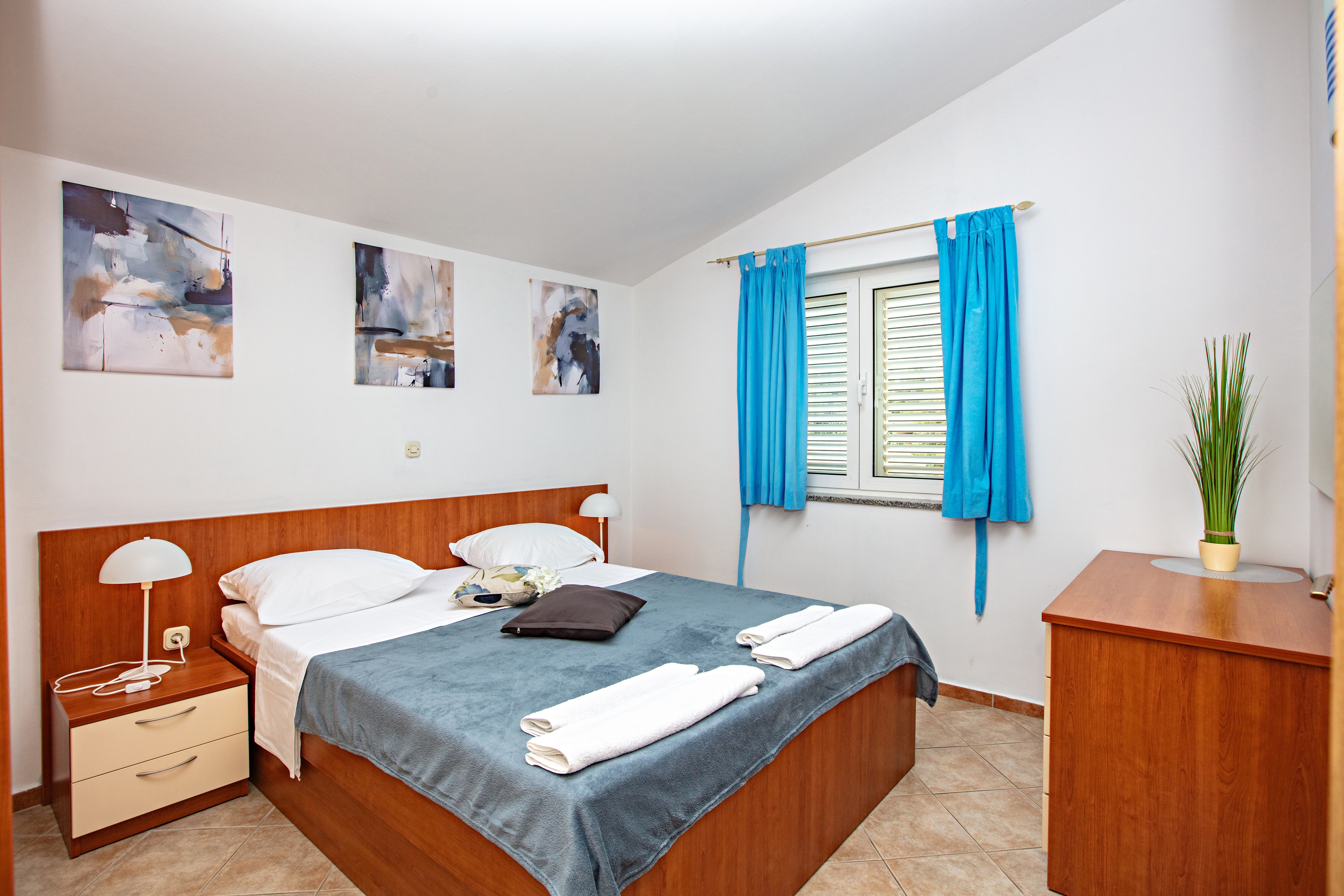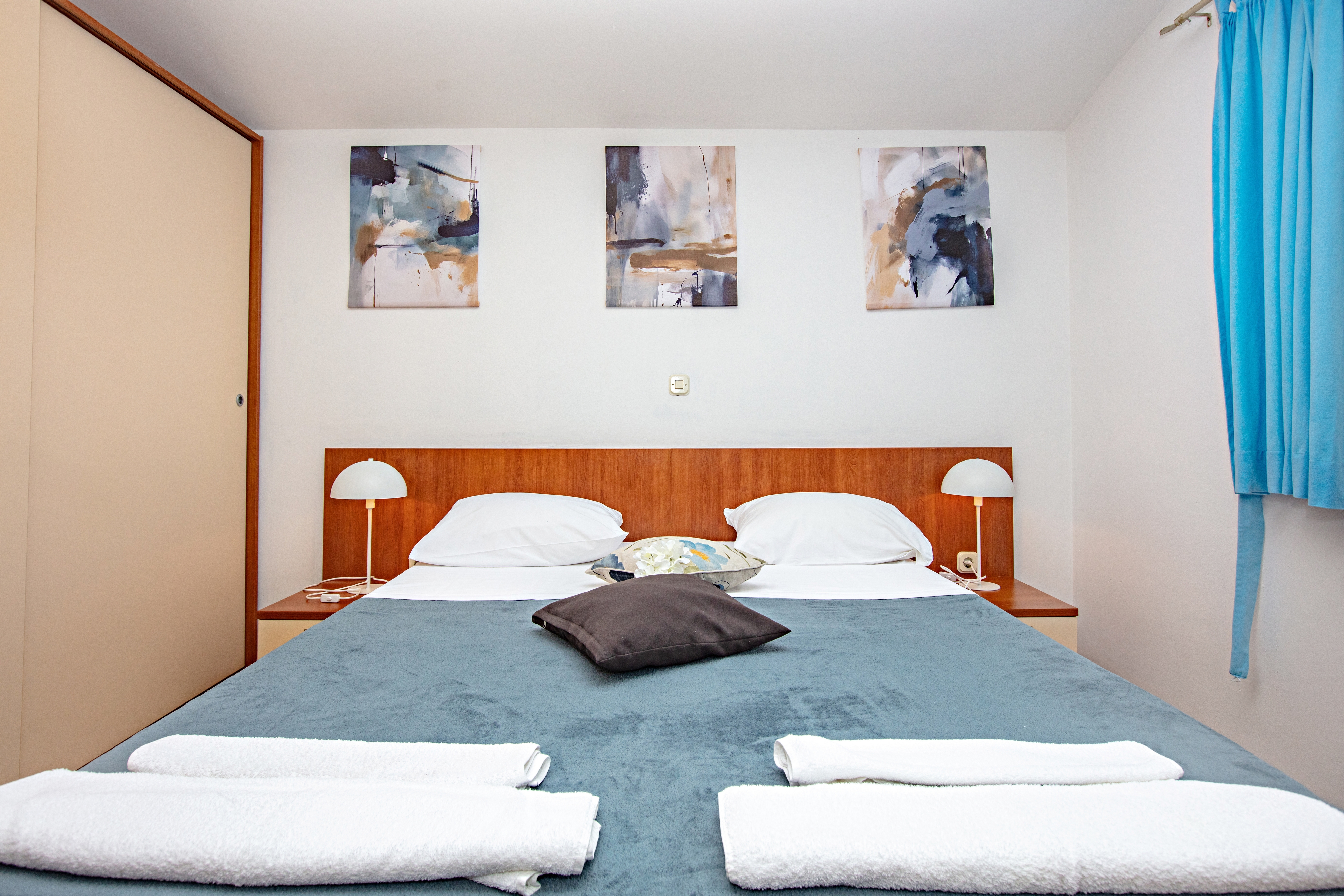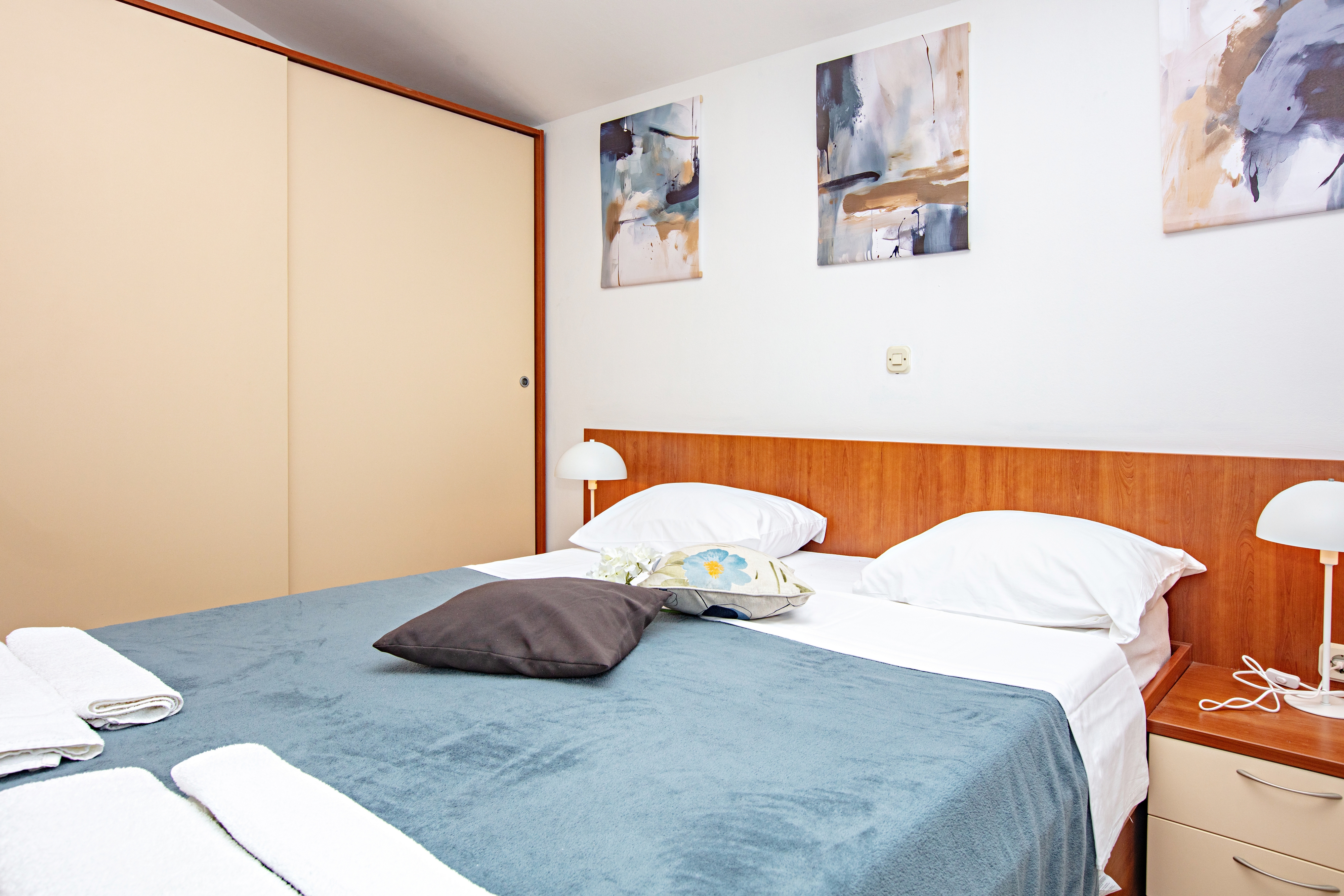 Apartment can accommodate 4 guests. Beds are situated in 2 sleeping rooms, within 42m2. Guests can use a private terrace to enjoy the warm summer evenings. Food can be prepared using barbecue which is shared with other guests too. INCLUDED IN THE PRICE: tourist tax, final cleaning, air-conditioning, parking, internet. OPTIONAL ADDITIONAL COSTS: breakfast (€17.00, a 50% discount for children aged 4 to 12 years, Children up to age 4 free of charge), half-board (€36.00, a 50% discount for children aged 4 to 12 years, Children up to age 4 free of charge). The availability of additional services for your chosen dates of stay, as well as their prices (if none are listed) must be checked ahead of time. Any additional services not shown in the price calculation are payable directly to the property owner and only if used by the visitor.