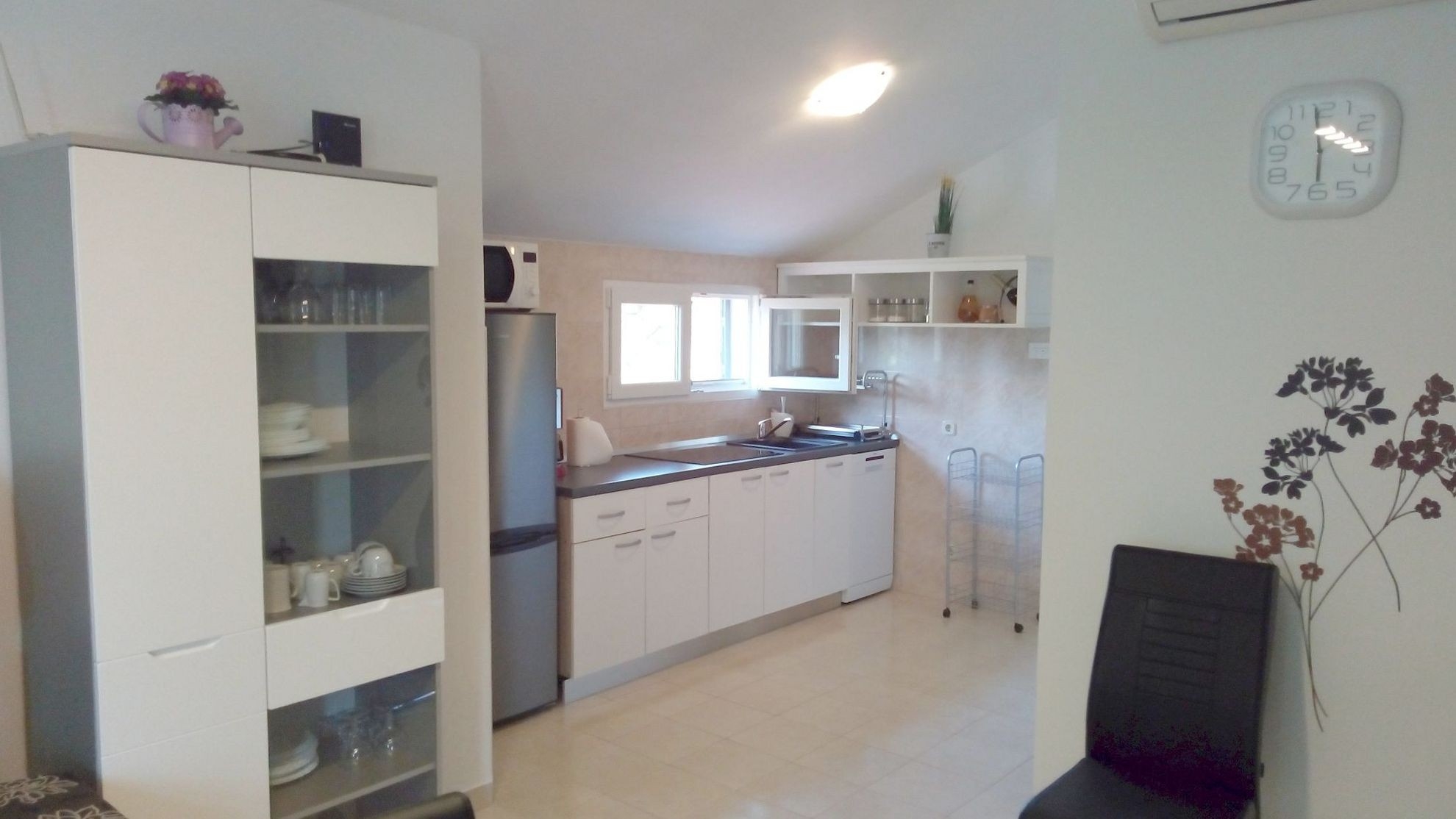 Apartment can accommodate 4 guests. Beds are situated in 1 sleeping rooms, but also in the living room, within 44m2. Guests can use a private terrace to enjoy the warm summer evenings. Food can be prepared using barbecue which is shared with other guests too. INCLUDED IN THE PRICE: tourist tax, final cleaning, air-conditioning, parking, internet, laundry, baby cot, iron, ironing board, hairdryer. The availability of additional services for your chosen dates of stay, as well as their prices (if none are listed) must be checked ahead of time. Any additional services not shown in the price calculation are payable directly to the property owner and only if used by the visitor. Discounts to the base price: free day 14=13 (for reservations of 14 or more days you get one free day for the stay until 31122026).