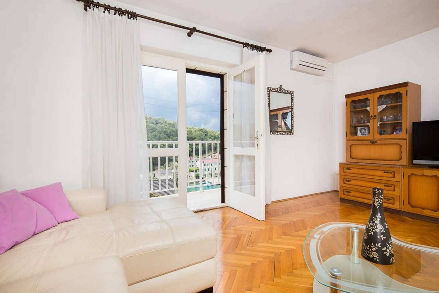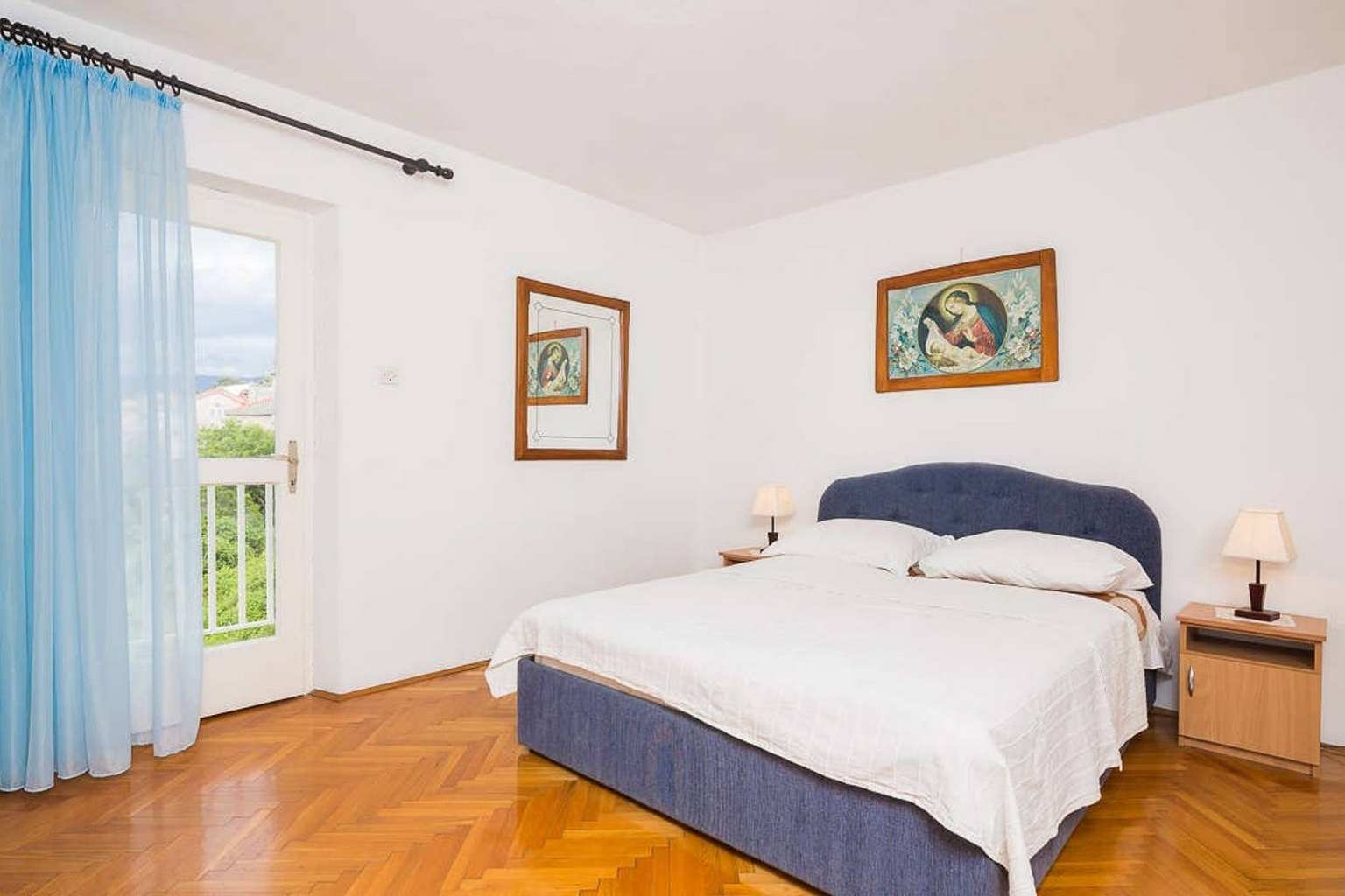 Apartment can accommodate 4 guests. Beds are situated in 2 sleeping rooms, within 67m2. Guests can use a private balcony to enjoy the warm summer evenings. The apartment offers the sea view. Food can be prepared using barbecue which is shared with other guests too. This accommodation unit welcomes pets at an additional charge. INCLUDED IN THE PRICE: tourist tax, final cleaning, air-conditioning, internet, baby cot, iron, ironing board, hairdryer. OPTIONAL ADDITIONAL COSTS: pets (€5.00 per night). The availability of additional services for your chosen dates of stay, as well as their prices (if none are listed) must be checked ahead of time. Any additional services not shown in the price calculation are payable directly to the property owner and only if used by the visitor. Discounts to the base price: free day 14=13 (for reservations of 14 or more days you get one free day for the stay until 31122026).
