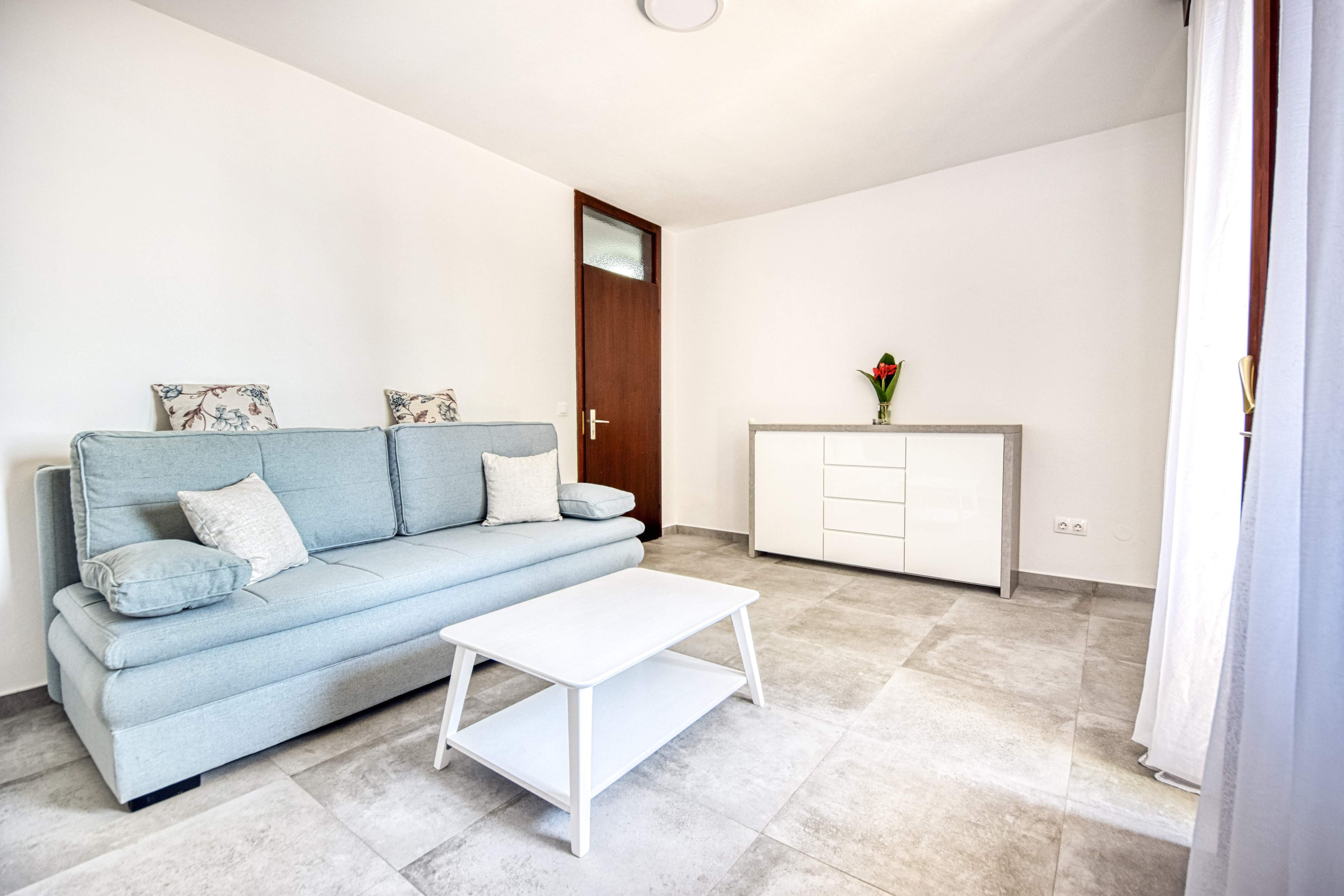 Apartment can accommodate 3 guests. Beds are situated in 1 sleeping rooms, but also in the living room, within 34m2. Guests can use a private terrace to enjoy the warm summer evenings. The apartment offers the sea view. Food can be prepared using barbecue which is shared with other guests too. INCLUDED IN THE PRICE: tourist tax, final cleaning, air-conditioning, parking, internet, boat mooring, iron, ironing board, hairdryer, portable barbecue. OBLIGATORY ADDITIONAL COSTS: short stay fee (surcharge depending on a number of booked nights: 30% - 1, 20% - 2, 10% - 3). OPTIONAL ADDITIONAL COSTS: laundry (€5.00 washing). The availability of additional services for your chosen dates of stay, as well as their prices (if none are listed) must be checked ahead of time. Any additional services not shown in the price calculation are payable directly to the property owner and only if used by the visitor. Discounts to the base price: free day 14=13 (for reservations of 14 or more days you get one free day for the stay until 31122026).