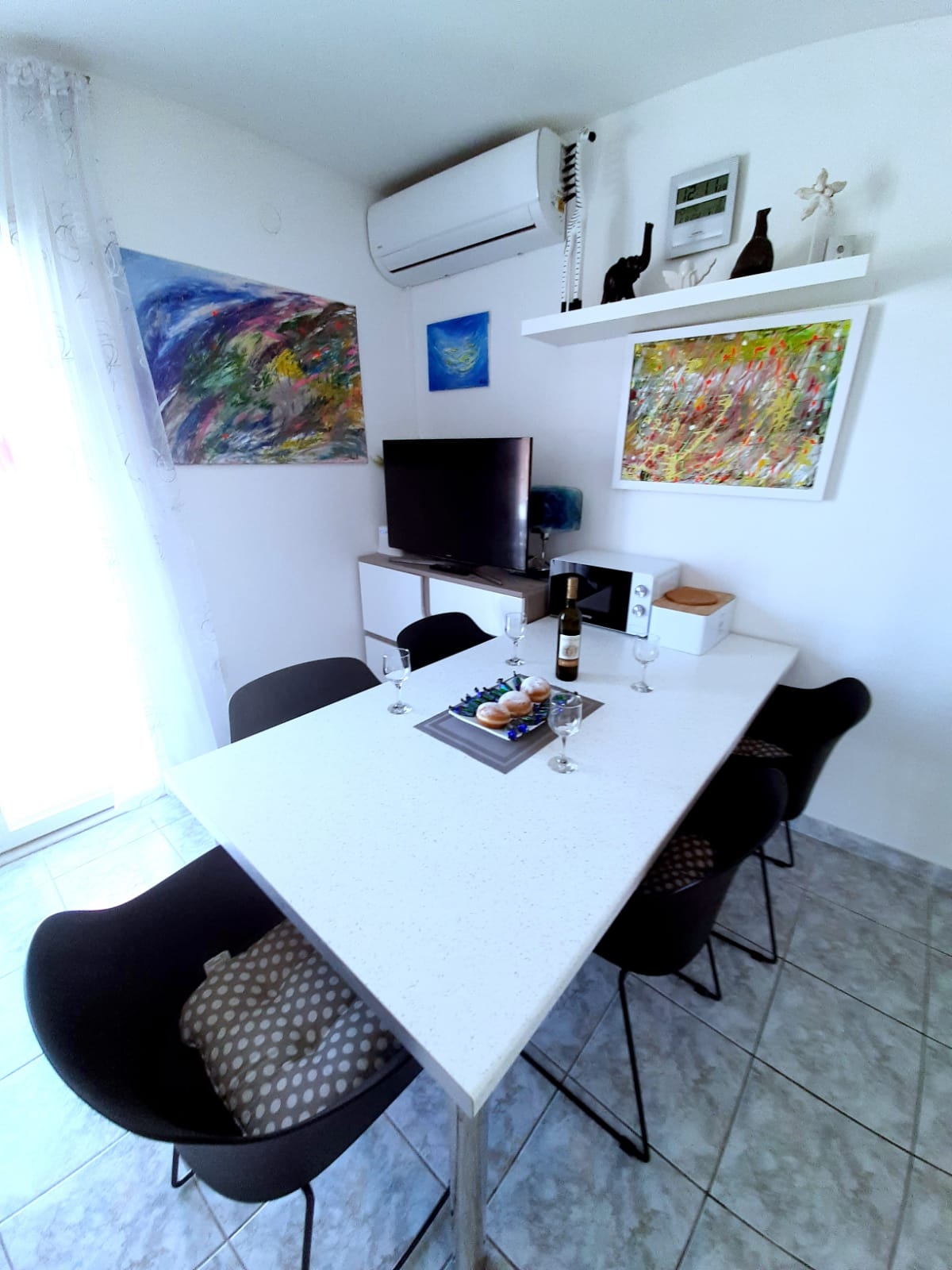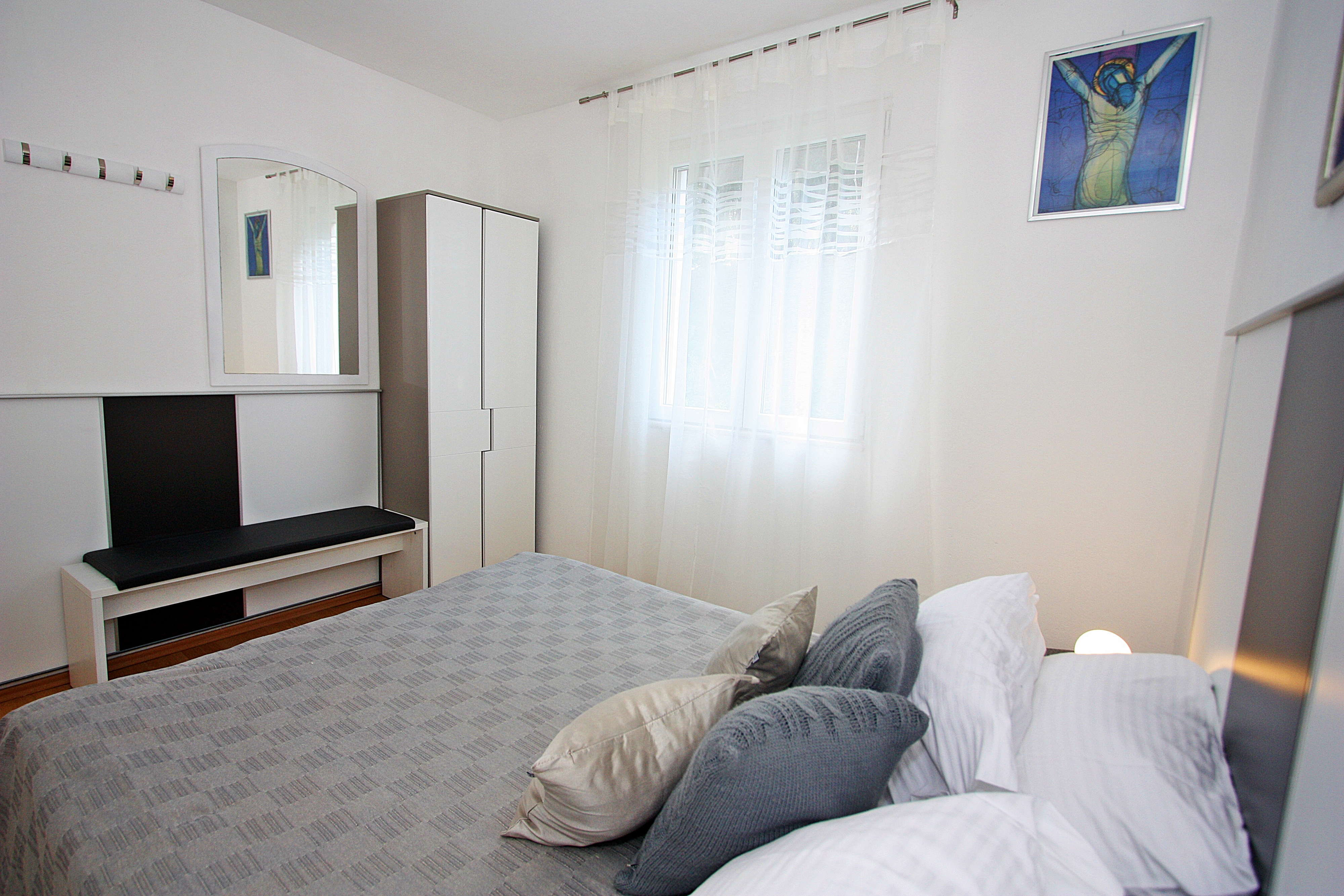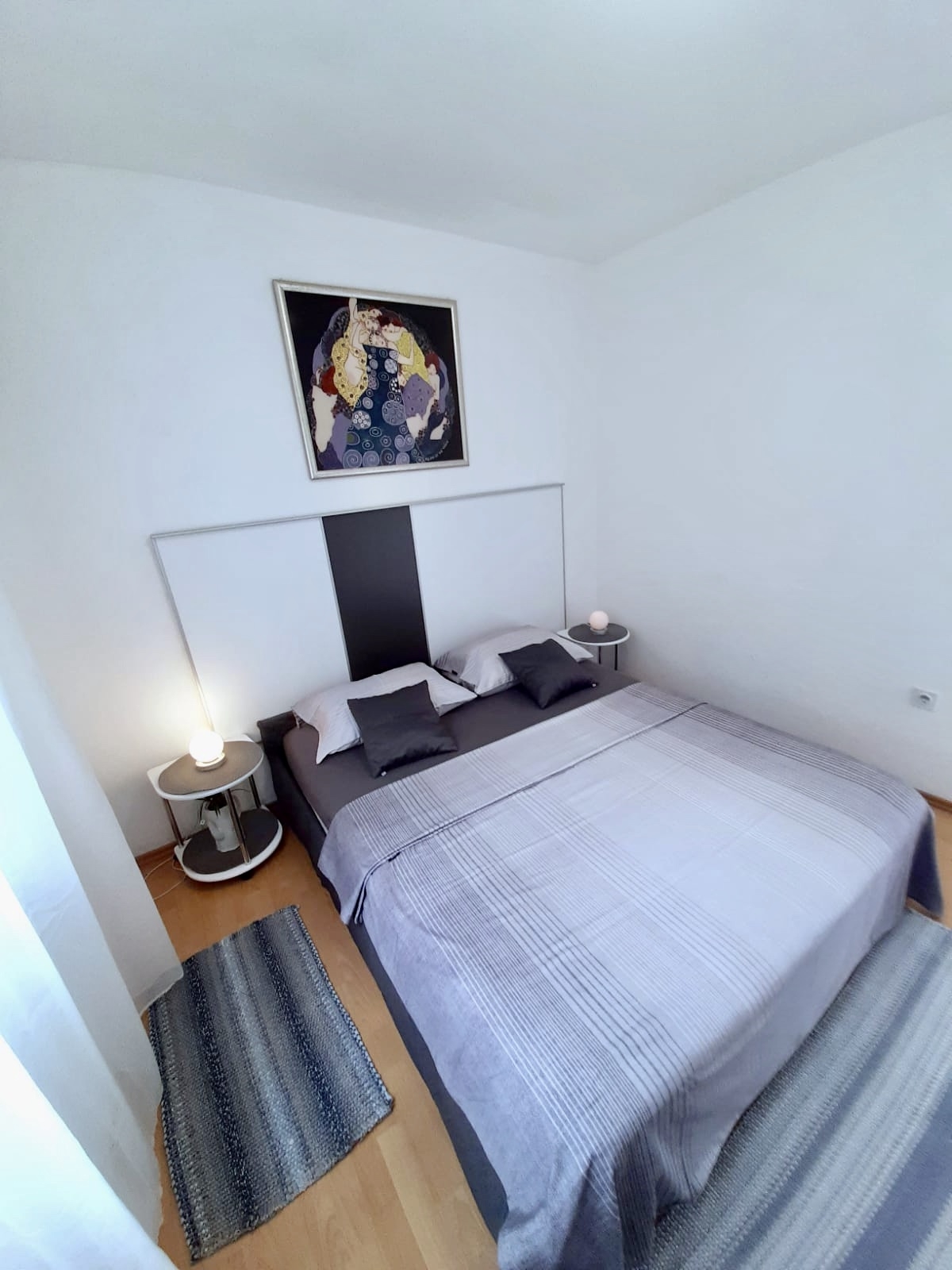 Apartment can accommodate 4 guests. Beds are situated in 2 sleeping rooms, within 50m2. Guests can use a private terrace to enjoy the warm summer evenings. The apartment offers the sea view. Food can be prepared using barbecue which is shared with other guests too. INCLUDED IN THE PRICE: tourist tax, final cleaning, air-conditioning, parking, internet, baby cot, iron, ironing board, hairdryer. OBLIGATORY ADDITIONAL COSTS: short stay fee (surcharge depending on a number of booked nights: 30% - 1, 20% - 2, 10% - 3). The availability of additional services for your chosen dates of stay, as well as their prices (if none are listed) must be checked ahead of time. Any additional services not shown in the price calculation are payable directly to the property owner and only if used by the visitor.