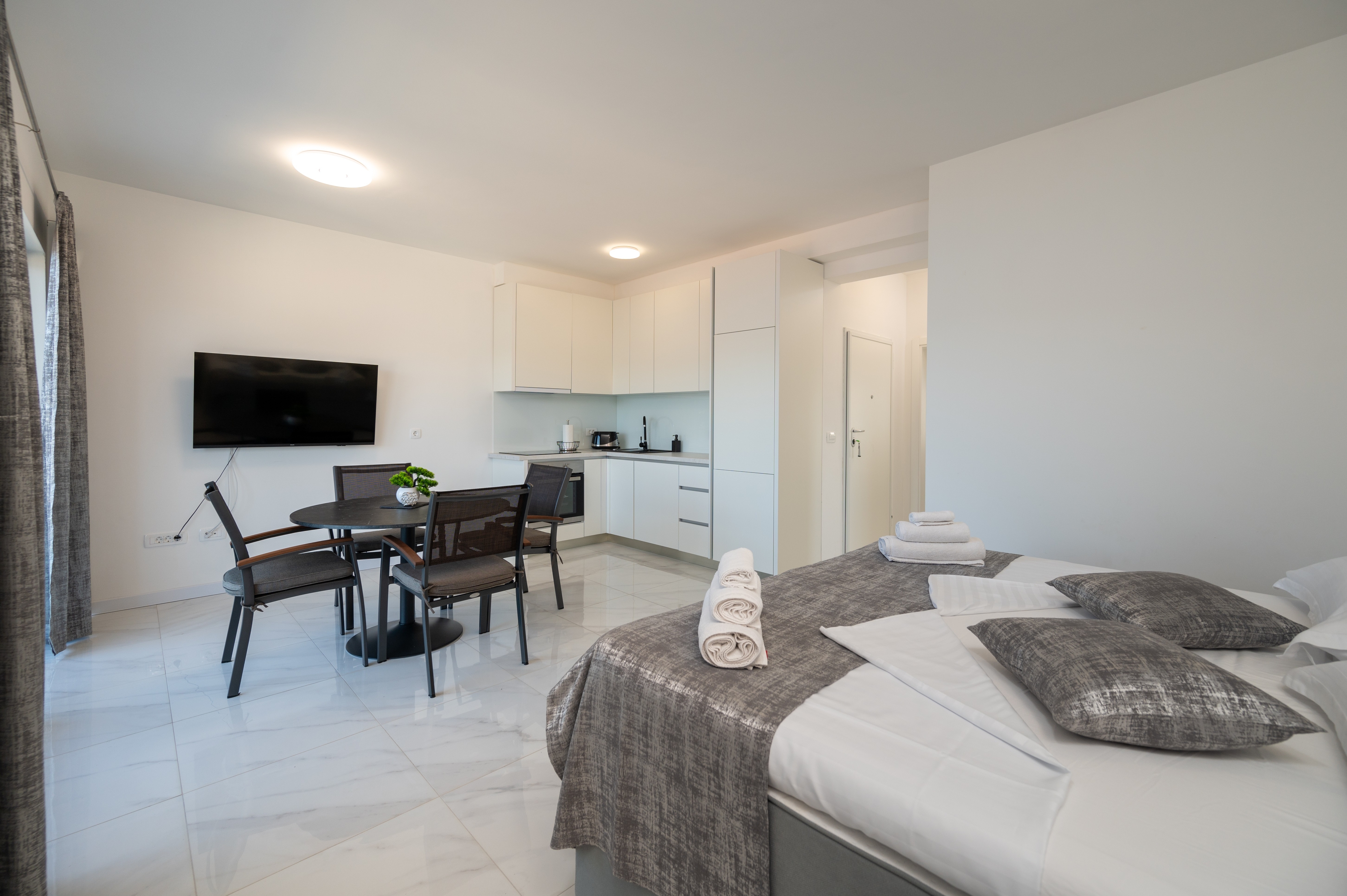 Apartment can accommodate 4 guests. Beds are situated in 1 sleeping rooms, but also in the living room, within 38m2. Guests can use a private balcony to enjoy the warm summer evenings. The apartment offers the sea view. INCLUDED IN THE PRICE: tourist tax, final cleaning, air-conditioning, parking, internet, baby cot, iron, ironing board, hairdryer. The availability of additional services for your chosen dates of stay, as well as their prices (if none are listed) must be checked ahead of time. Any additional services not shown in the price calculation are payable directly to the property owner and only if used by the visitor. Discounts to the base price: free day 21=19 (for reservations of 21 or more days you get 2 free days for the stay until 31122026).