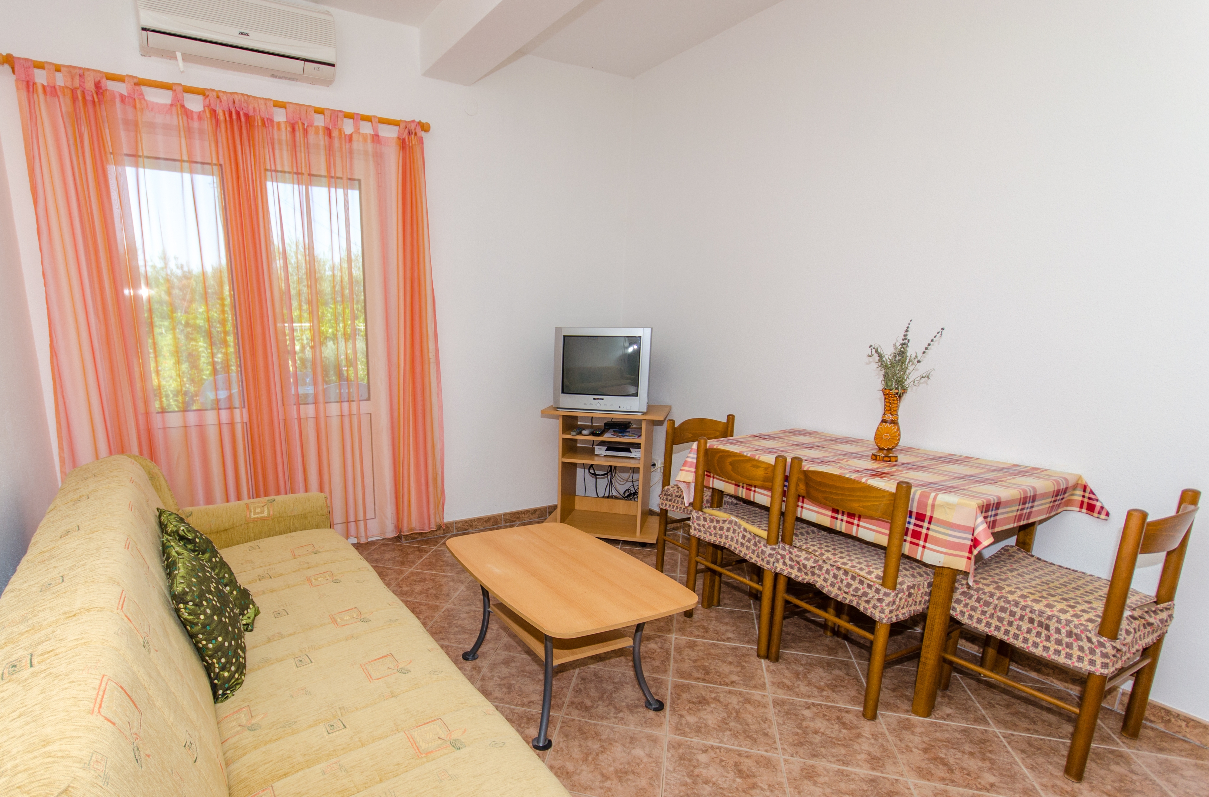 Apartment can accommodate 4 guests. Beds are situated in 1 sleeping rooms, but also in the living room, within 30m2. Guests can use a private terrace to enjoy the warm summer evenings. Food can be prepared using barbecue which is shared with other guests too. INCLUDED IN THE PRICE: tourist tax, final cleaning, air-conditioning, parking, internet, hairdryer. OBLIGATORY ADDITIONAL COSTS: short stay fee (surcharge depending on a number of booked nights: 30% - 1, 20% - 2, 10% - 3). The availability of additional services for your chosen dates of stay, as well as their prices (if none are listed) must be checked ahead of time. Any additional services not shown in the price calculation are payable directly to the property owner and only if used by the visitor.