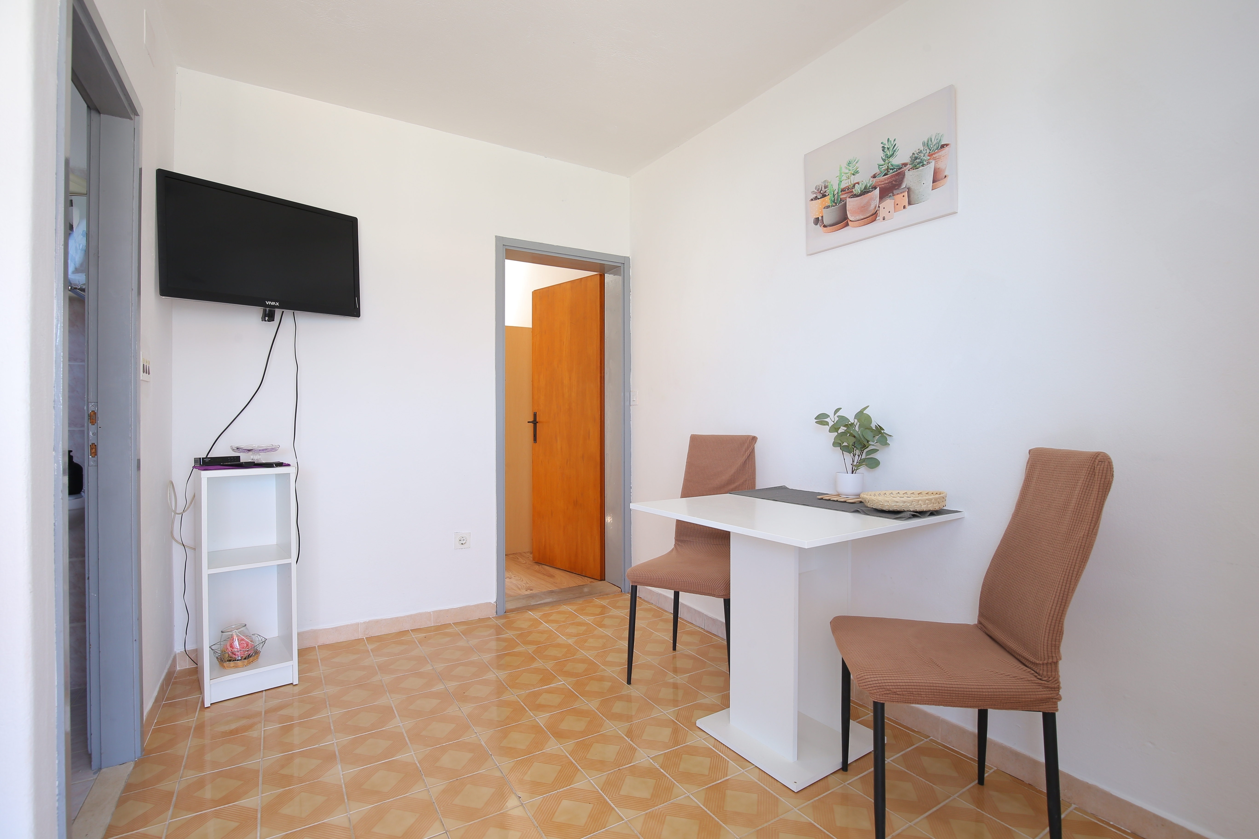 Apartment can accommodate 2 guests. Beds are situated in 1 sleeping rooms, within 22m2. Guests can use a private terrace to enjoy the warm summer evenings. The apartment offers the sea view. Food can be prepared using barbecue which is shared with other guests too. This accommodation unit welcomes pets at an additional charge. Other guests or hosts pass through the terrace of the booked accommodation unit. INCLUDED IN THE PRICE: tourist tax, final cleaning, air-conditioning, parking, internet, laundry, baby cot, iron, ironing board, hairdryer. OPTIONAL ADDITIONAL COSTS: pets (€5.00 per night). The availability of additional services for your chosen dates of stay, as well as their prices (if none are listed) must be checked ahead of time. Any additional services not shown in the price calculation are payable directly to the property owner and only if used by the visitor.