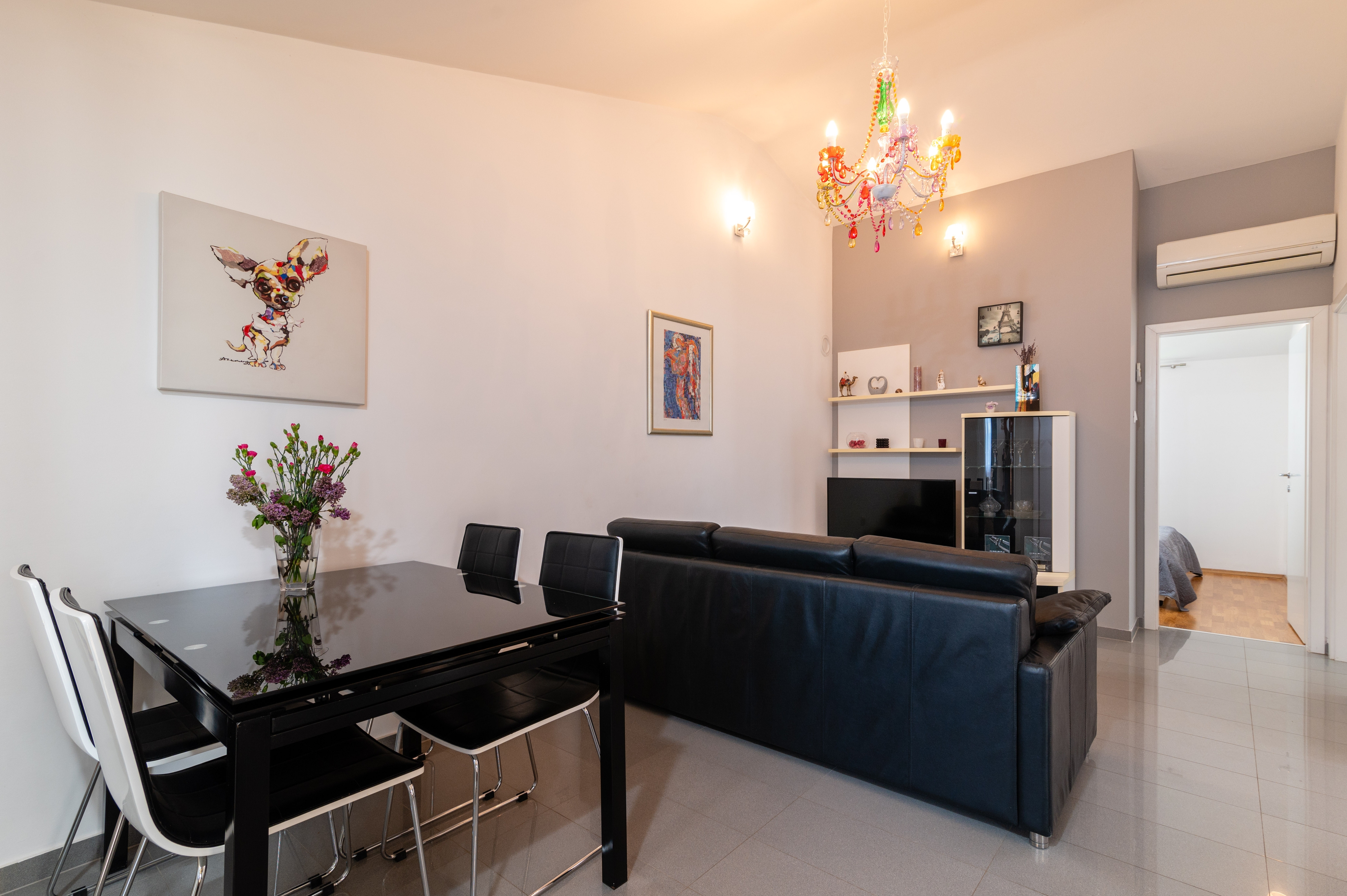 Apartment can accommodate 5 guests. Beds are situated in 2 sleeping rooms, but also in the living room, within 48m2. Guests can use a private terrace to enjoy the warm summer evenings. The apartment offers the sea view. For full enjoyment and relaxation there is a private barbecue for this accommodation guests only. INCLUDED IN THE PRICE: tourist tax, final cleaning, air-conditioning, parking, internet, iron, ironing board, hairdryer, sunshade. The availability of additional services for your chosen dates of stay, as well as their prices (if none are listed) must be checked ahead of time. Any additional services not shown in the price calculation are payable directly to the property owner and only if used by the visitor.