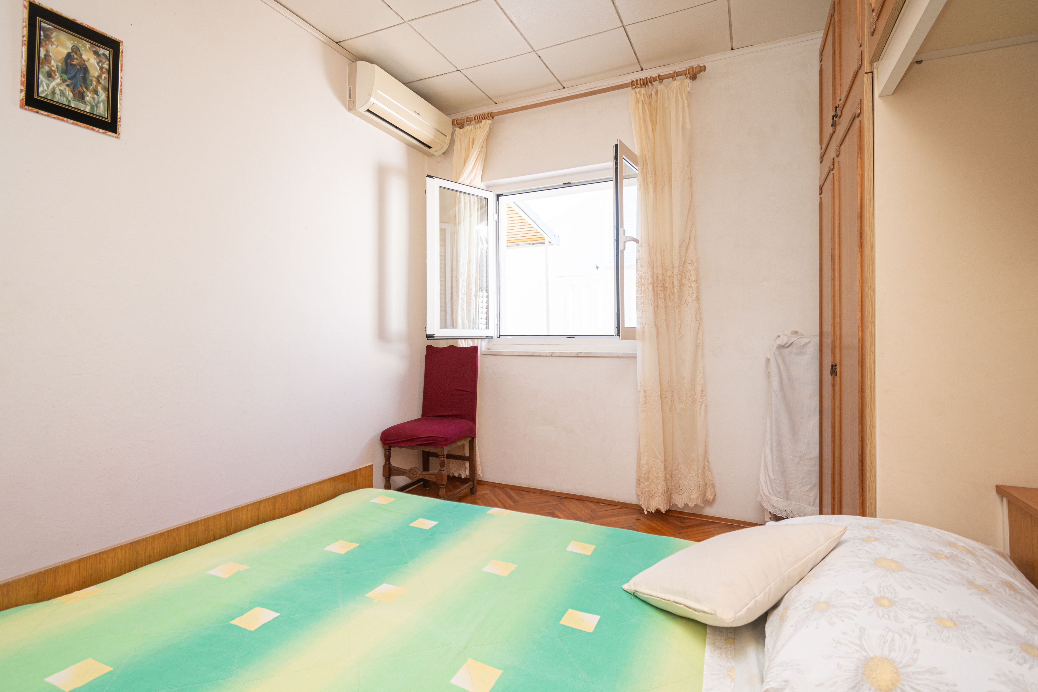 Apartment can accommodate 6 guests. Beds are situated in 3 sleeping rooms, within 70m2. Guests can use a private terrace to enjoy the warm summer evenings. The apartment offers the sea view. Food can be prepared using barbecue which is shared with other guests too. This accommodation unit welcomes pets at an additional charge. INCLUDED IN THE PRICE: tourist tax, final cleaning, parking, internet, boat mooring, hairdryer. OPTIONAL ADDITIONAL COSTS: air-conditioning (€6.00 per night), pets (€6.00 per night). The availability of additional services for your chosen dates of stay, as well as their prices (if none are listed) must be checked ahead of time. Any additional services not shown in the price calculation are payable directly to the property owner and only if used by the visitor.
