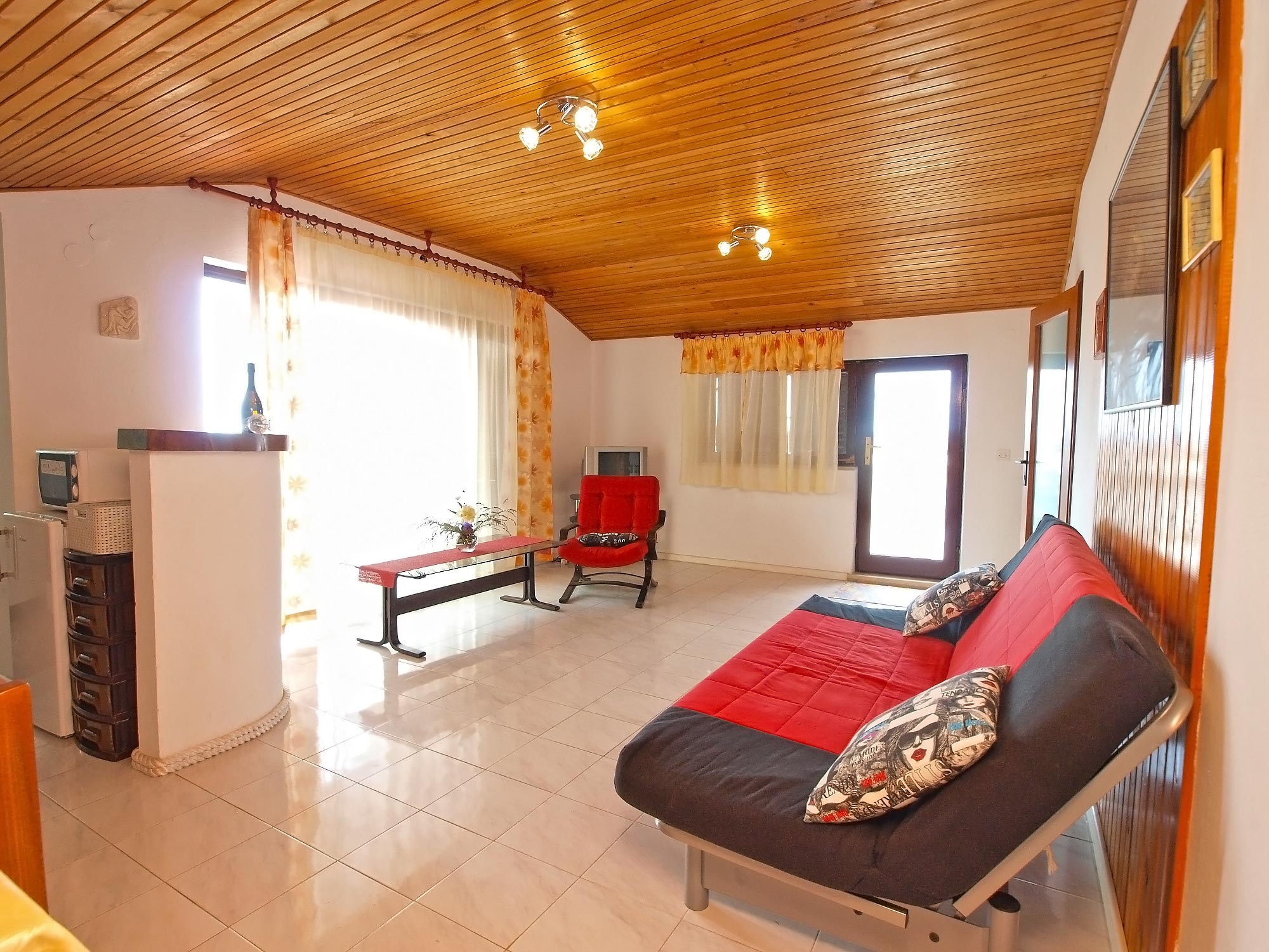 Apartment can accommodate 5 guests. Beds are situated in 2 sleeping rooms, but also in the living room, within 50m2. Guests can use a private terrace to enjoy the warm summer evenings. Food can be prepared using barbecue which is shared with other guests too. INCLUDED IN THE PRICE: tourist tax, final cleaning, air-conditioning, parking, internet, iron, hairdryer. The availability of additional services for your chosen dates of stay, as well as their prices (if none are listed) must be checked ahead of time. Any additional services not shown in the price calculation are payable directly to the property owner and only if used by the visitor.