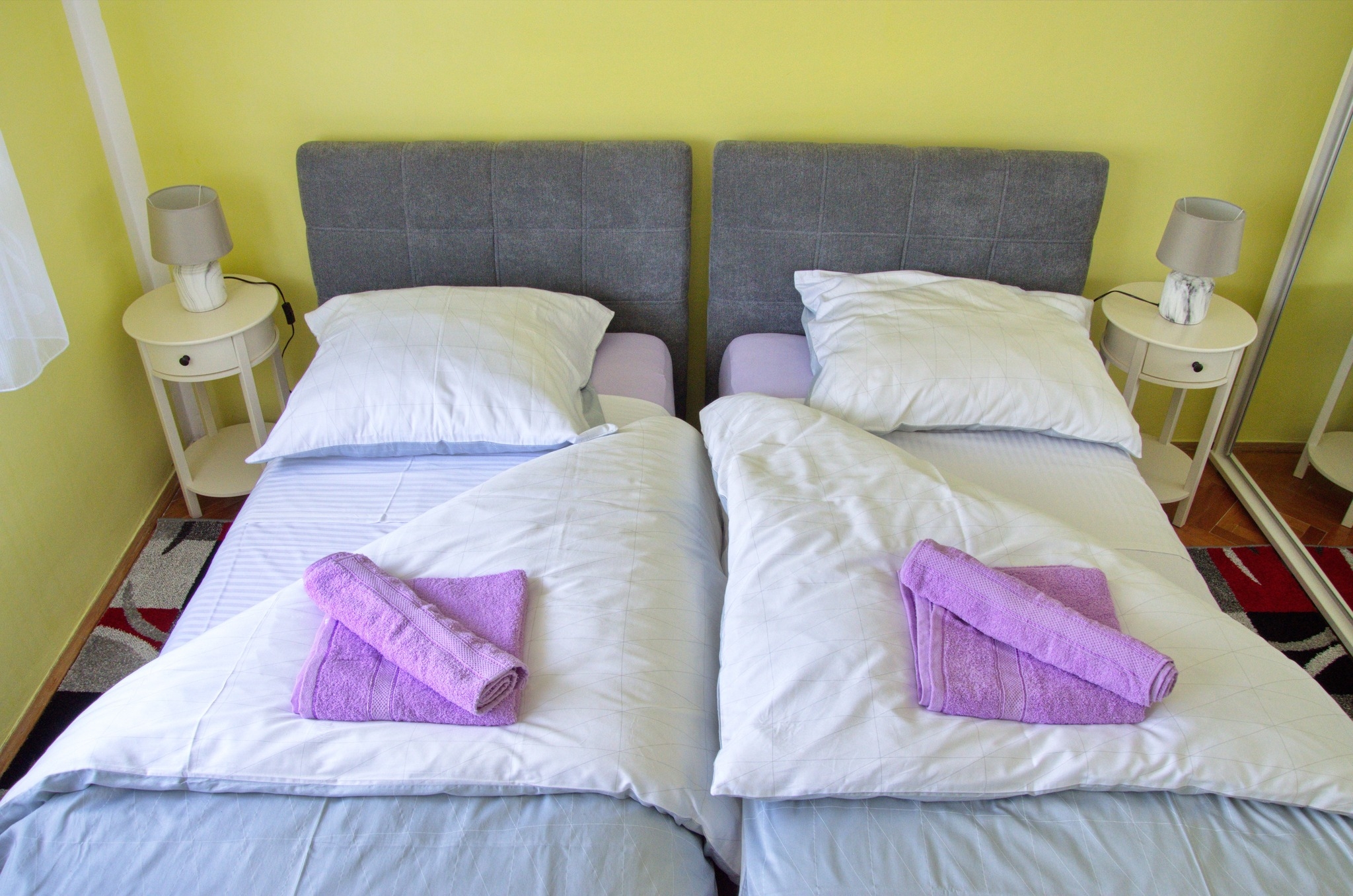 Apartment can accommodate 6 guests. Beds are situated in 2 sleeping rooms, but also in the living room, within 64m2. Guests can use a private balcony to enjoy the warm summer evenings. For full enjoyment and relaxation there is a private barbecue for this accommodation guests only. INCLUDED IN THE PRICE: tourist tax, final cleaning, central heating, parking, internet, baby cot, iron, ironing board, hairdryer. The availability of additional services for your chosen dates of stay, as well as their prices (if none are listed) must be checked ahead of time. Any additional services not shown in the price calculation are payable directly to the property owner and only if used by the visitor. Discounts to the base price: free day 14=13 (for reservations of 14 or more days you get one free day for the stay until 31122026).