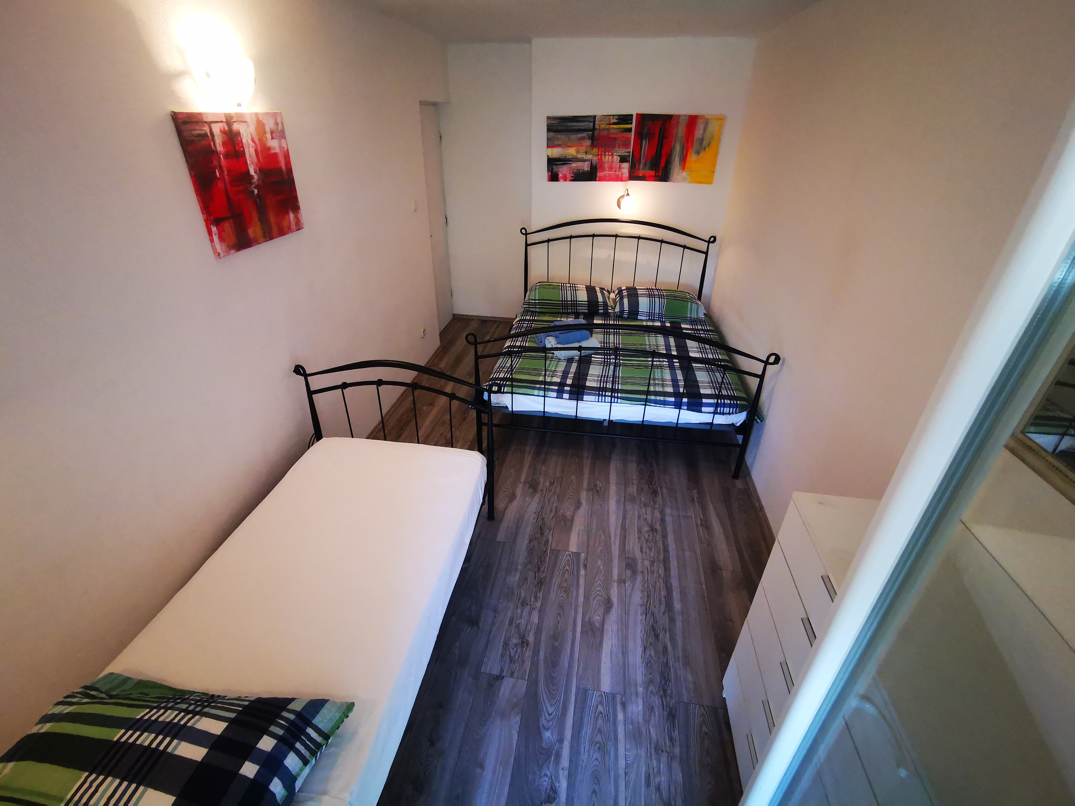 Apartment can accommodate 7 guests. Beds are situated in 2 sleeping rooms, but also in the living room, within 52m2. Guests can use a private terrace to enjoy the warm summer evenings. The apartment offers the sea view. Food can be prepared using barbecue which is shared with other guests too. This accommodation unit welcomes pets at no additional costs. INCLUDED IN THE PRICE: tourist tax, final cleaning, parking, internet, pets, hairdryer. OPTIONAL ADDITIONAL COSTS: air-conditioning (ā¬5.00 per night), additional bed (ā¬20.00 per night). The availability of additional services for your chosen dates of stay, as well as their prices (if none are listed) must be checked ahead of time. Any additional services not shown in the price calculation are payable directly to the property owner and only if used by the visitor.