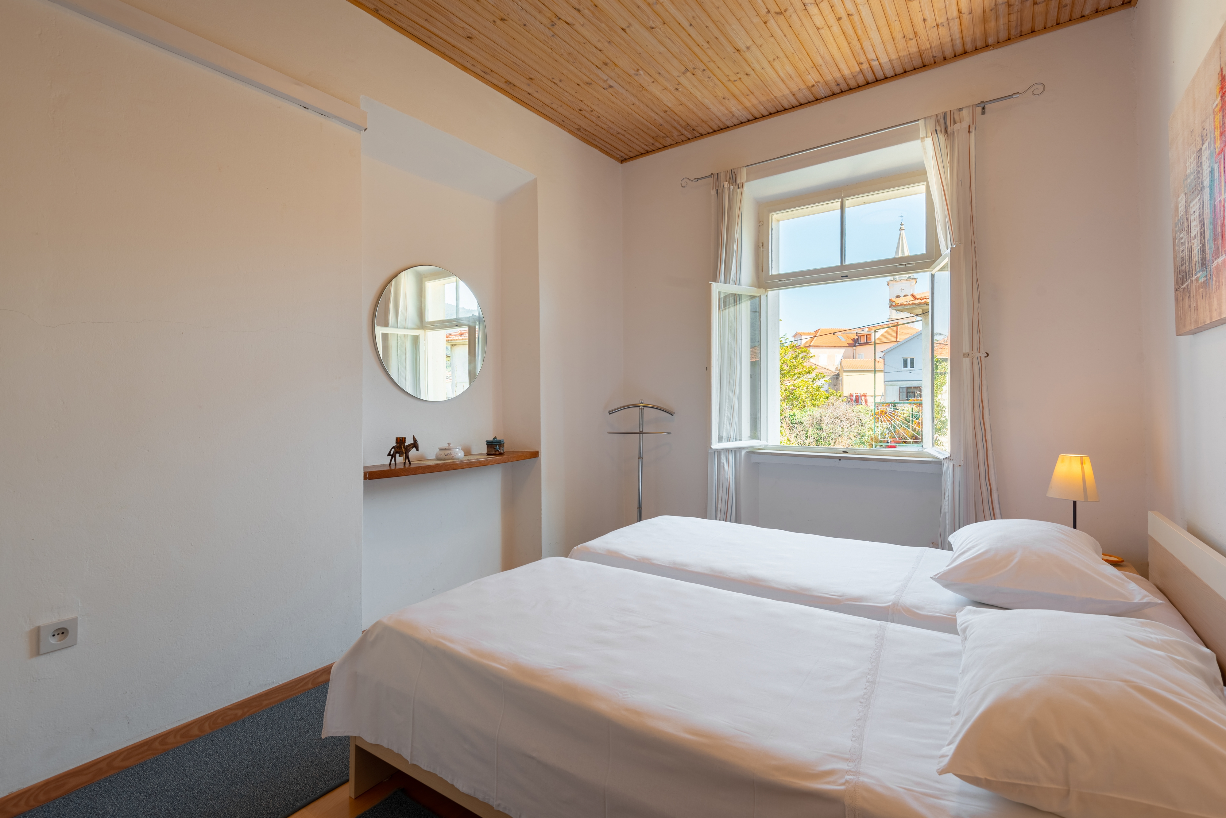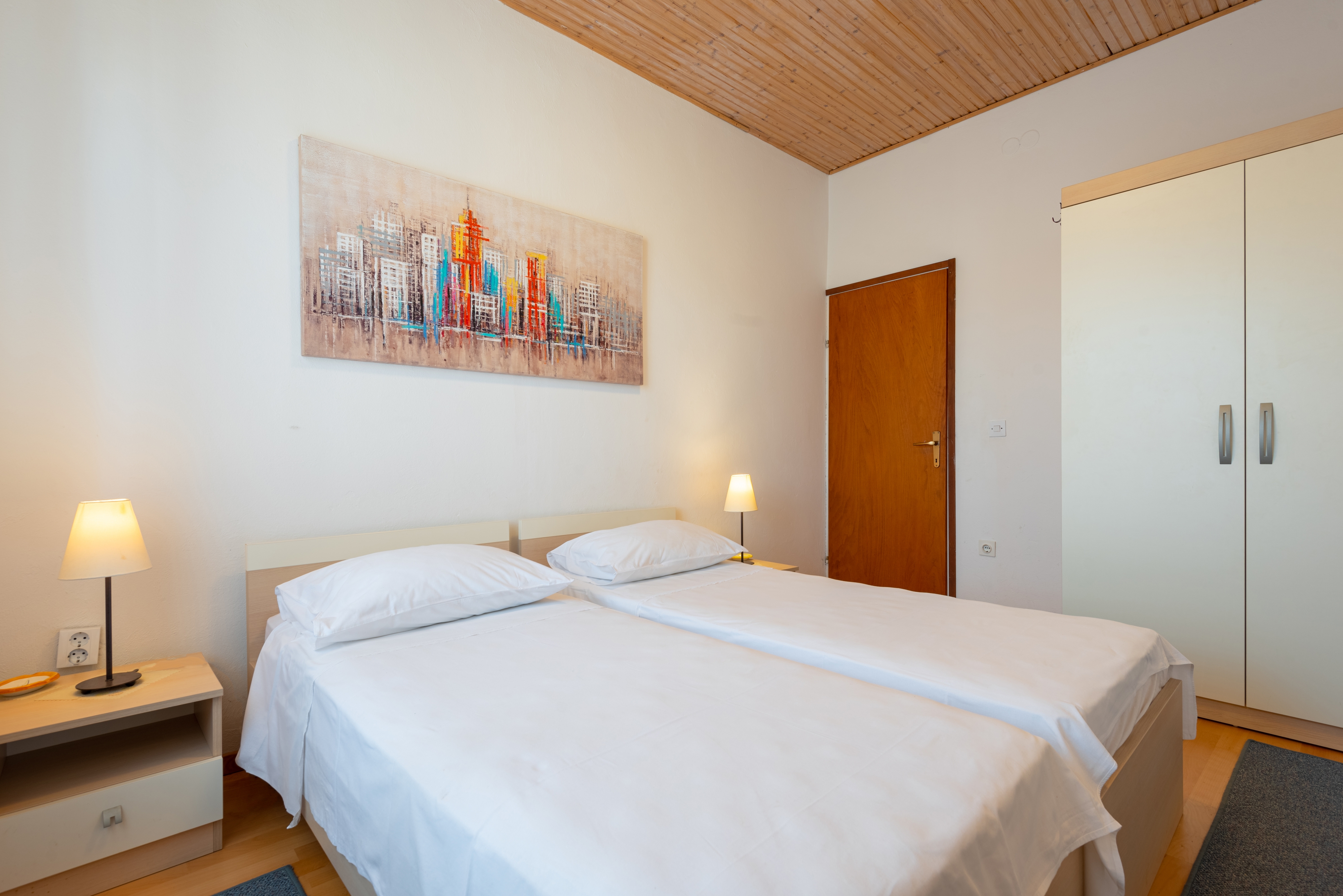 Apartment can accommodate 4 guests. Beds are situated in 2 sleeping rooms, within 41m2. Guests can use a private terrace to enjoy the warm summer evenings. Food can be prepared using barbecue which is shared with other guests too. This accommodation unit welcomes pets at an additional charge. For the booked accommodation unit the deposit is paid directly to the owner upon check-in (deposit amount is displayed on the website) INCLUDED IN THE PRICE: tourist tax, final cleaning, air-conditioning, parking, garage, internet, laundry, baby cot, iron, ironing board, hairdryer, portable barbecue, sunshade, sunchairs. OBLIGATORY ADDITIONAL COSTS: deposit (€100.00 one-time payment), short stay fee (surcharge depending on a number of booked nights: 30% - 1, 20% - 2, 10% - 3). OPTIONAL ADDITIONAL COSTS: pets (€5.00 per night), additional bed (€5.00 per night). The availability of additional services for your chosen dates of stay, as well as their prices (if none are listed) must be checked ahead of time. Any additional services not shown in the price calculation are payable directly to the property owner and only if used by the visitor.