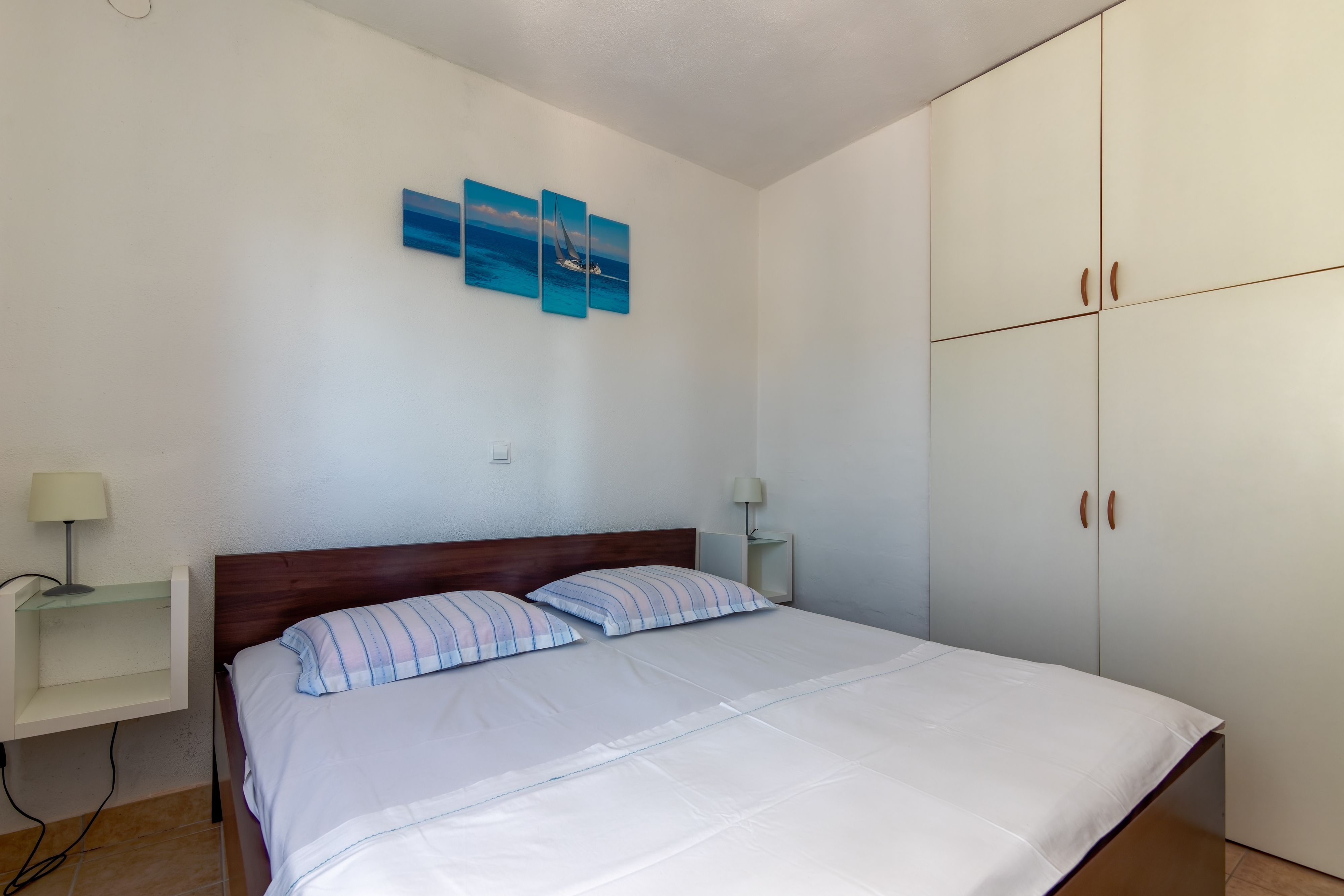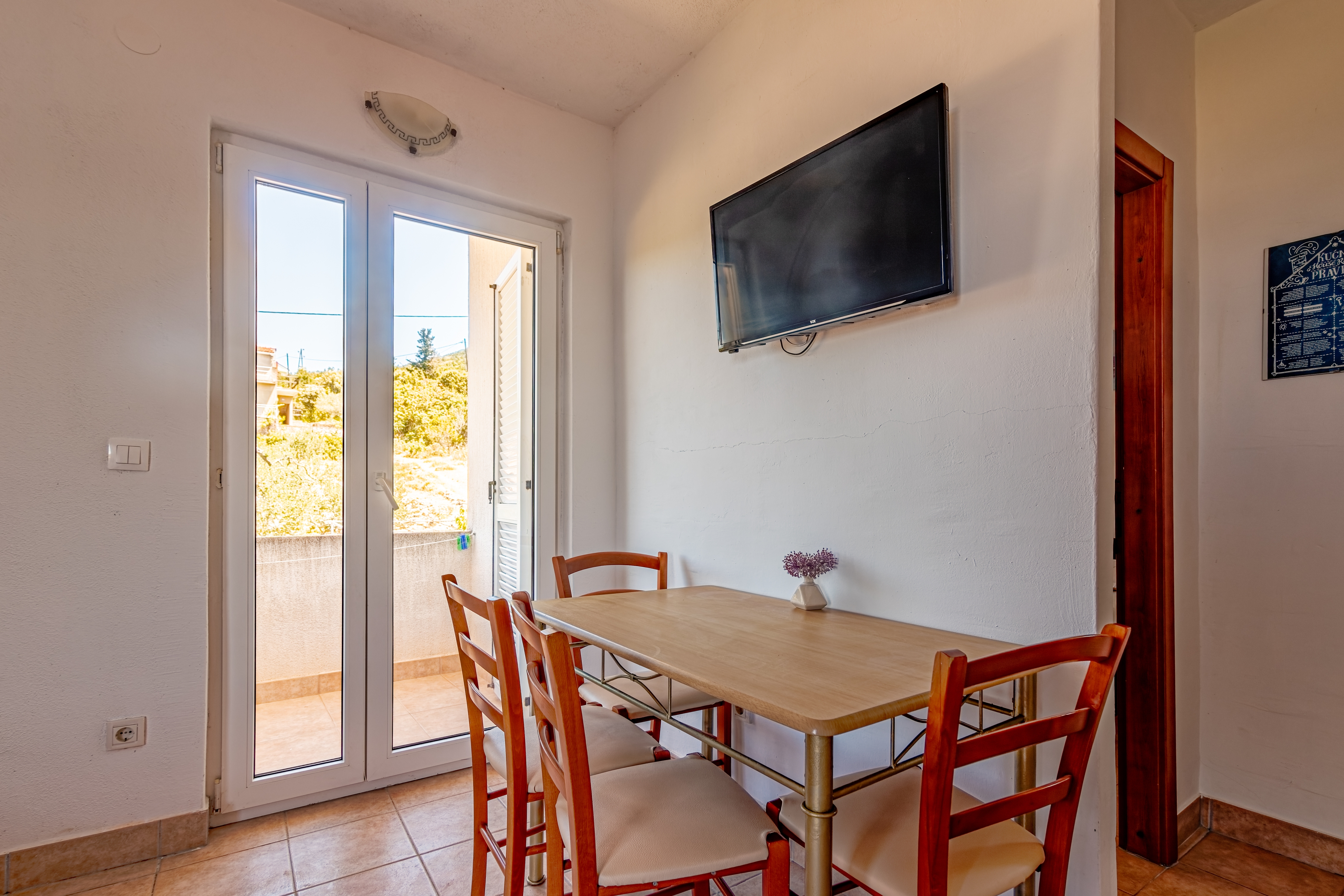 Apartment can accommodate 3 guests. Beds are situated in 1 sleeping rooms, but also in the dining room, within 28m2. Guests can use a private terrace to enjoy the warm summer evenings. The apartment offers the sea view. Food can be prepared using barbecue which is shared with other guests too. Other guests or hosts pass through the terrace of the booked accommodation unit. INCLUDED IN THE PRICE: tourist tax, final cleaning, air-conditioning, parking, internet, boat mooring, iron, ironing board, hairdryer. The availability of additional services for your chosen dates of stay, as well as their prices (if none are listed) must be checked ahead of time. Any additional services not shown in the price calculation are payable directly to the property owner and only if used by the visitor.