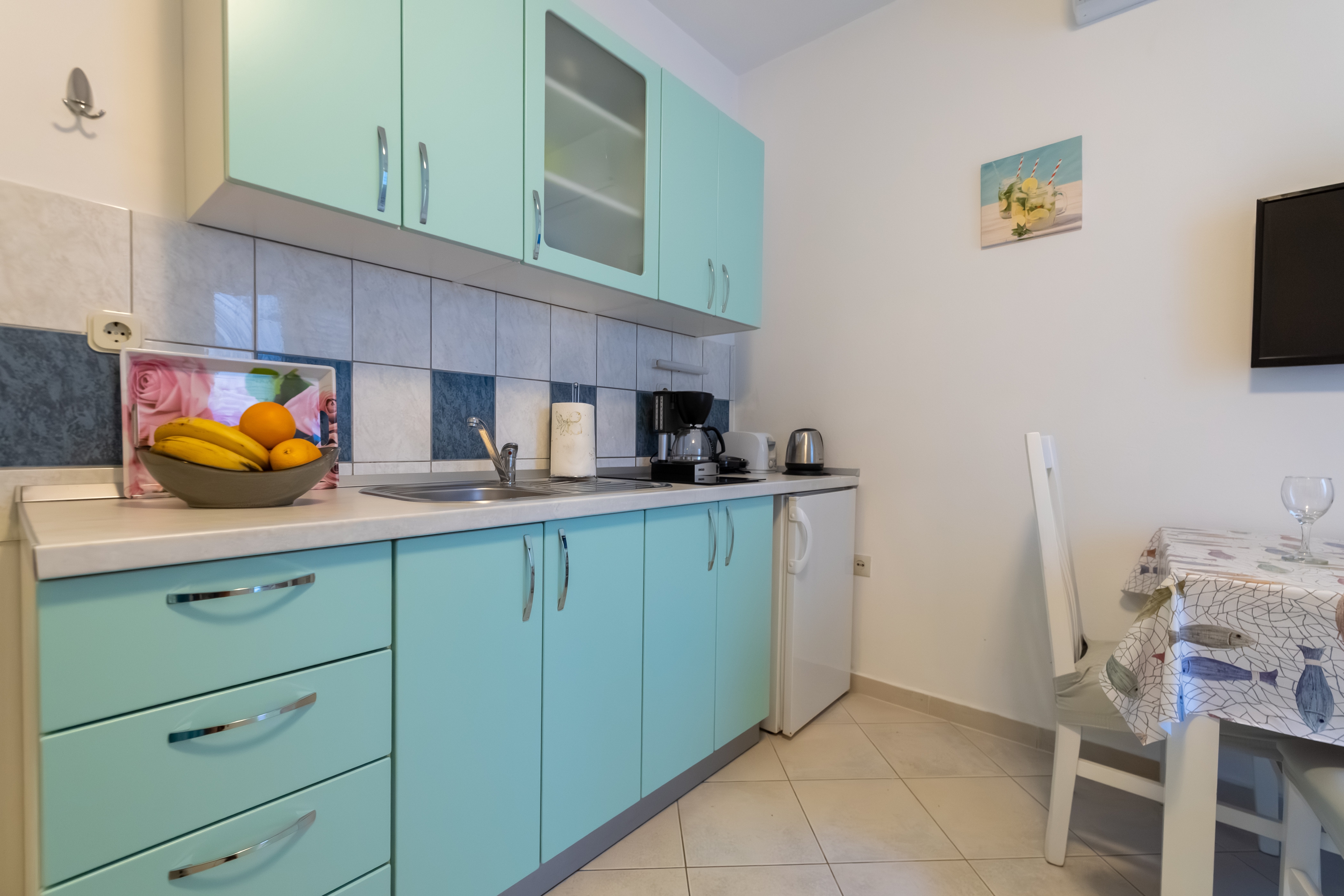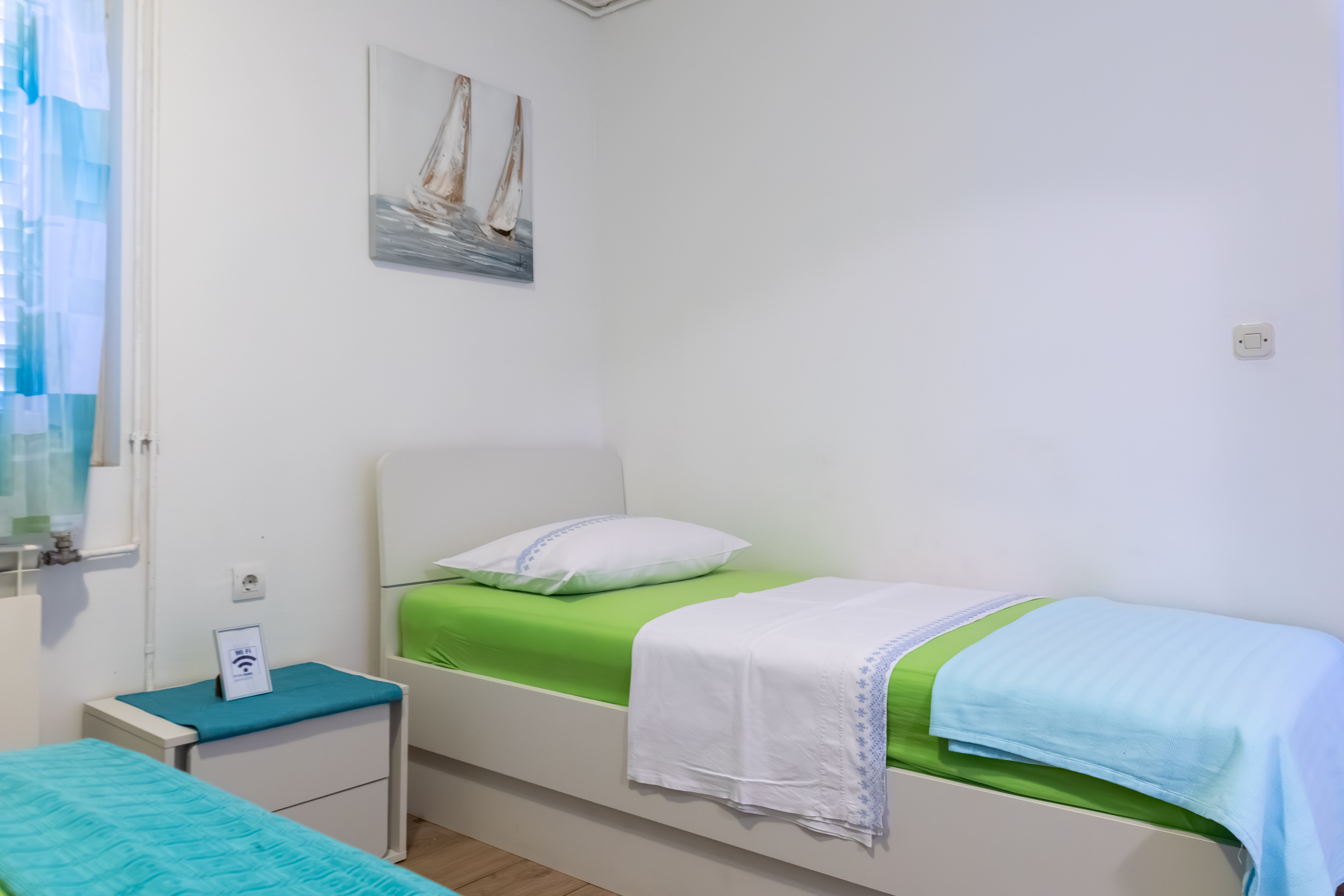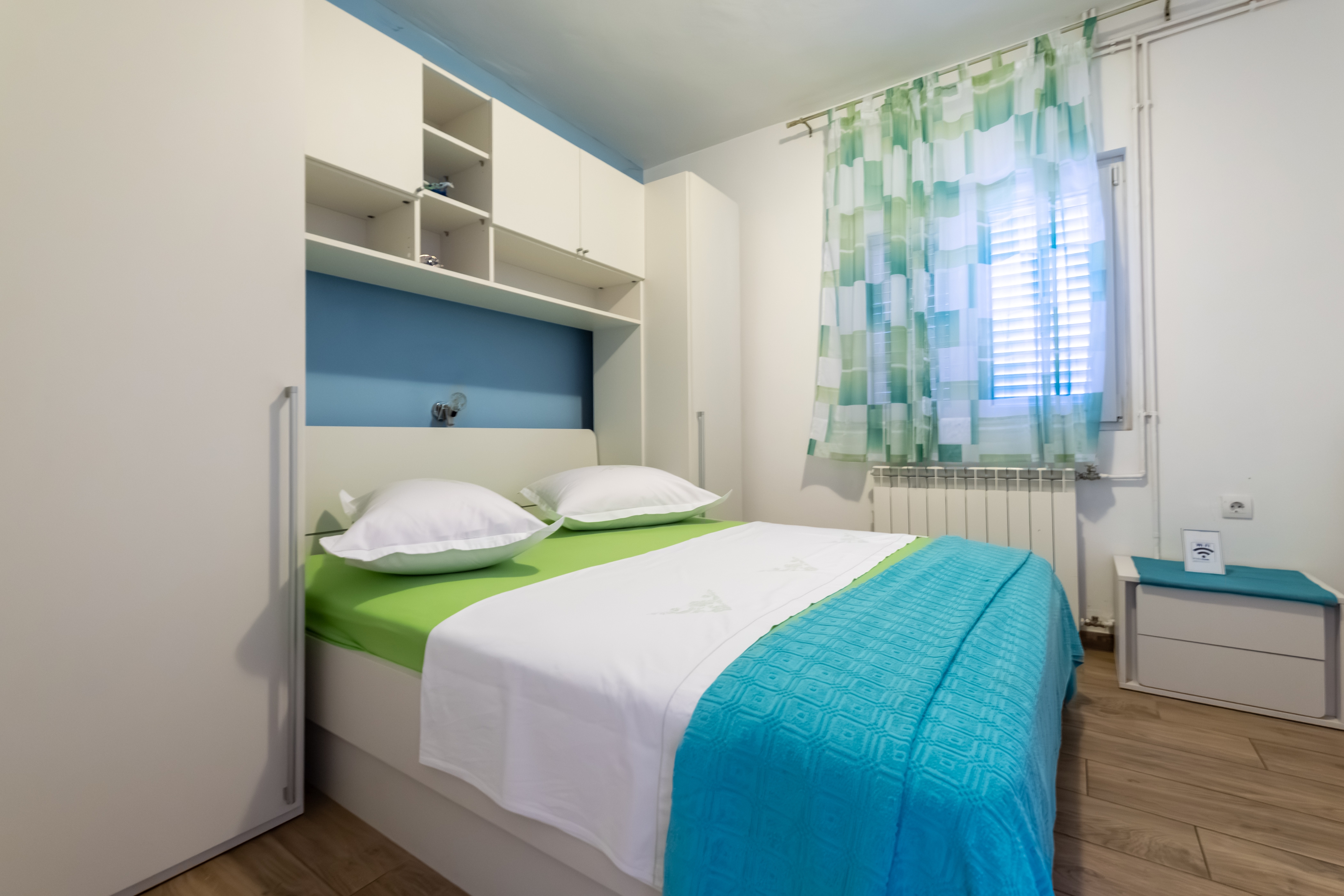 Studio flat can accommodate 3 guests. Beds are situated in 1 sleeping rooms, within 26m2. Guests can use a private terrace to enjoy the warm summer evenings. Food can be prepared using barbecue which is shared with other guests too. INCLUDED IN THE PRICE: tourist tax, final cleaning, air-conditioning, parking, internet, baby cot, iron, ironing board, hairdryer. OBLIGATORY ADDITIONAL COSTS: short stay fee (surcharge depending on a number of booked nights: 30% - 1, 20% - 2, 10% - 3). OPTIONAL ADDITIONAL COSTS: laundry (€5.00 washing). The availability of additional services for your chosen dates of stay, as well as their prices (if none are listed) must be checked ahead of time. Any additional services not shown in the price calculation are payable directly to the property owner and only if used by the visitor.