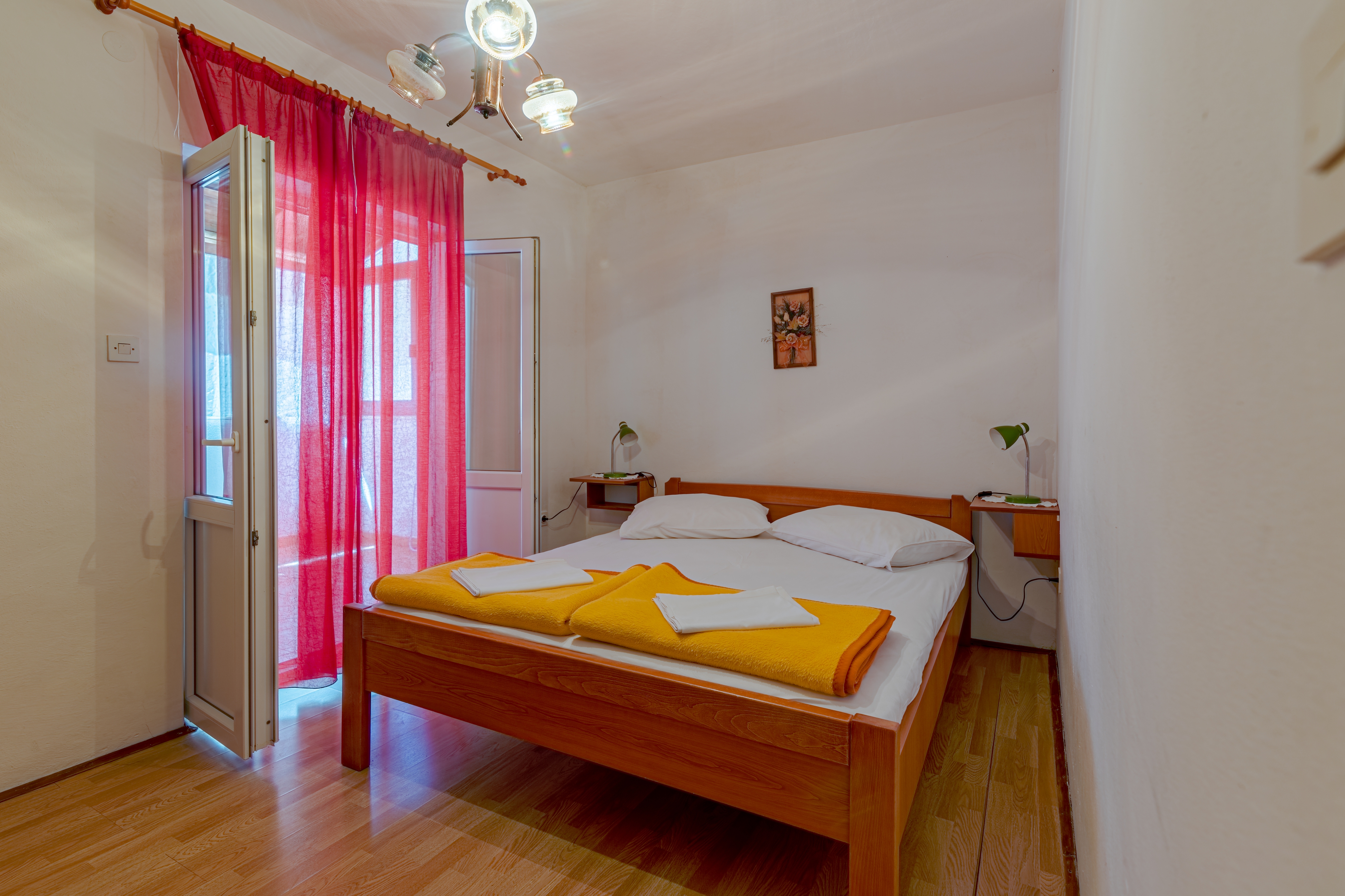 Studio flat can accommodate 2 guests. Beds are situated in 1 sleeping rooms, within 19m2. Guests can use a private terrace to enjoy the warm summer evenings. Food can be prepared using barbecue which is shared with other guests too. INCLUDED IN THE PRICE: tourist tax, final cleaning, air-conditioning, parking, internet, laundry, hairdryer. OBLIGATORY ADDITIONAL COSTS: short stay fee (surcharge depending on a number of booked nights: 30% - 1, 20% - 2, 10% - 3). The availability of additional services for your chosen dates of stay, as well as their prices (if none are listed) must be checked ahead of time. Any additional services not shown in the price calculation are payable directly to the property owner and only if used by the visitor.