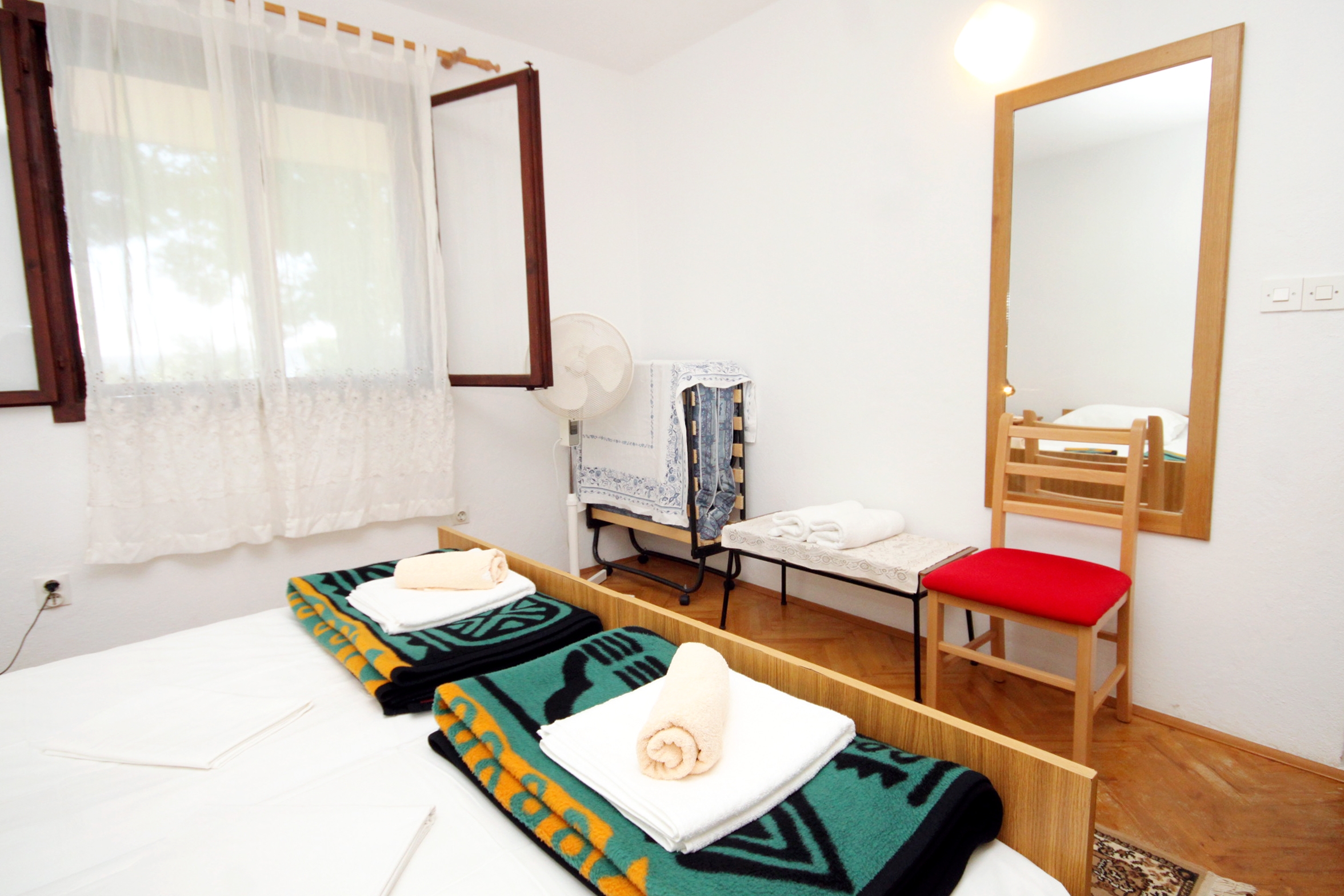 Apartment can accommodate 5 guests. Beds are situated in 2 sleeping rooms, within 46m2. Guests can use a private terrace to enjoy the warm summer evenings. The apartment offers the sea view. Food can be prepared using barbecue which is shared with other guests too. This accommodation unit welcomes pets at no additional costs. INCLUDED IN THE PRICE: tourist tax, final cleaning, air-conditioning, parking, internet, pets, iron, ironing board, hairdryer. The availability of additional services for your chosen dates of stay, as well as their prices (if none are listed) must be checked ahead of time. Any additional services not shown in the price calculation are payable directly to the property owner and only if used by the visitor. Discounts to the base price: free day 14=13 (for reservations of 14 or more days you get one free day for the stay until 31122026).