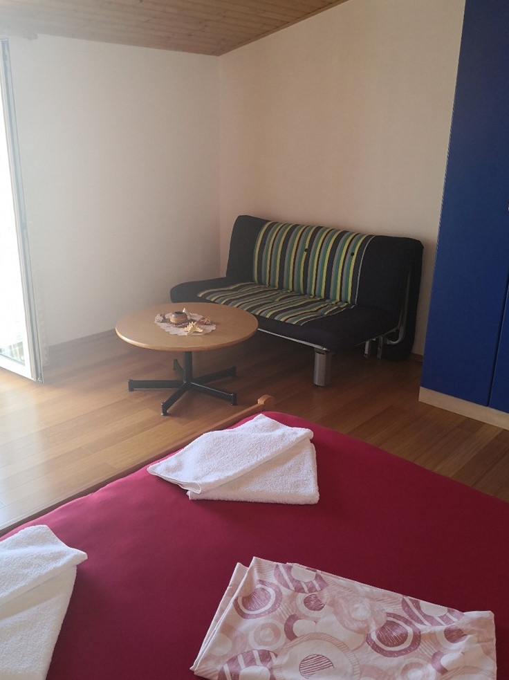 Apartment can accommodate 3 guests. Beds are situated in 1 sleeping rooms, within 33m2. Guests can use a private terrace to enjoy the warm summer evenings. The apartment offers the sea view. INCLUDED IN THE PRICE: tourist tax, final cleaning, air-conditioning, internet, baby cot, iron, ironing board, hairdryer. OBLIGATORY ADDITIONAL COSTS: short stay fee (surcharge depending on a number of booked nights: 30% - 1, 20% - 2, 10% - 3). OPTIONAL ADDITIONAL COSTS: laundry (€14.00 washing), additional bed (€30.00 per night). The availability of additional services for your chosen dates of stay, as well as their prices (if none are listed) must be checked ahead of time. Any additional services not shown in the price calculation are payable directly to the property owner and only if used by the visitor.