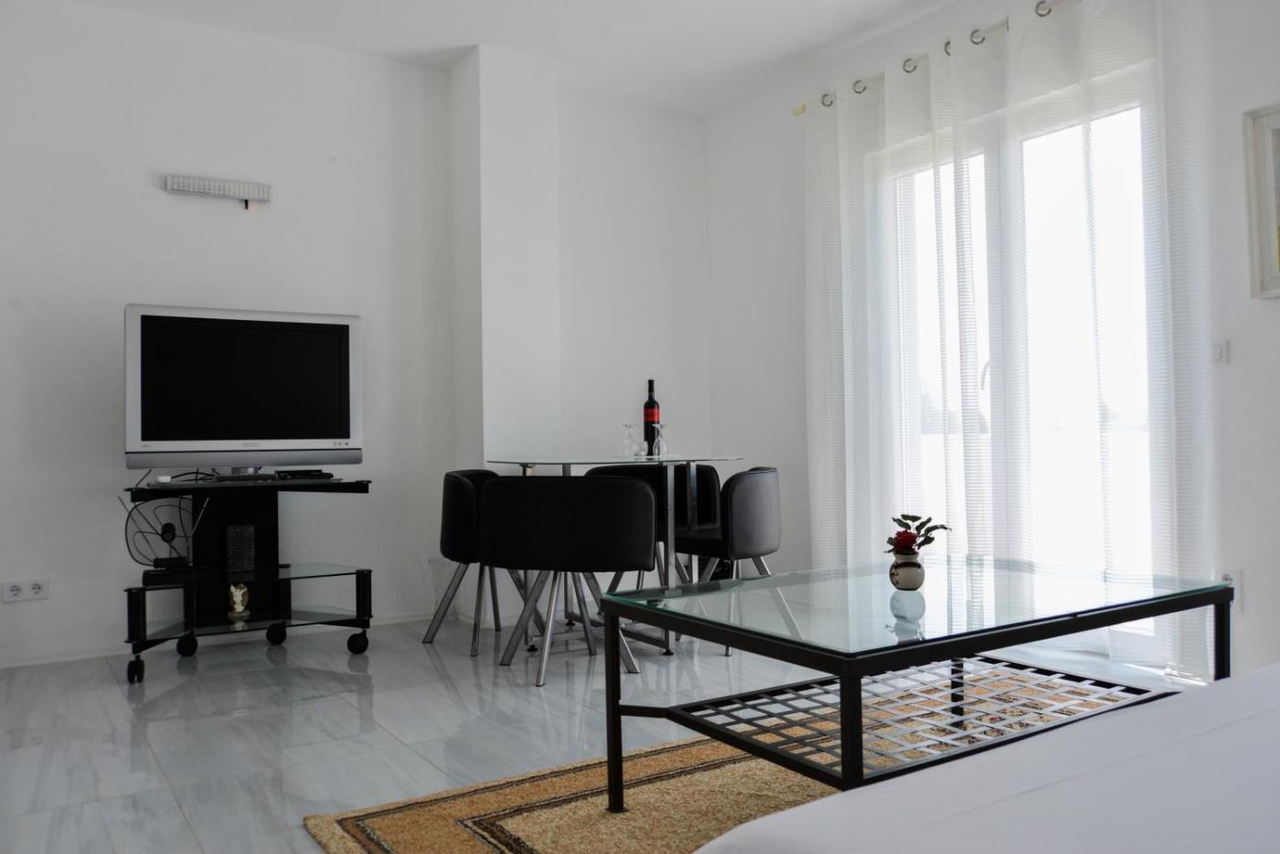 One-Bedroom Apartment. This spacious apartment includes 1 living room, 1 separate bedroom and 1 bathroom with a shower and free toiletries. Guests will find a stovetop, a refrigerator, kitchenware and an oven in the well-equipped kitchen. The apartment also features a barbecue. The air-conditioned apartment offers a flat-screen TV with cable channels, soundproof walls, a tea and coffee maker, a seating area as well as sea views. The unit has 2 beds.
