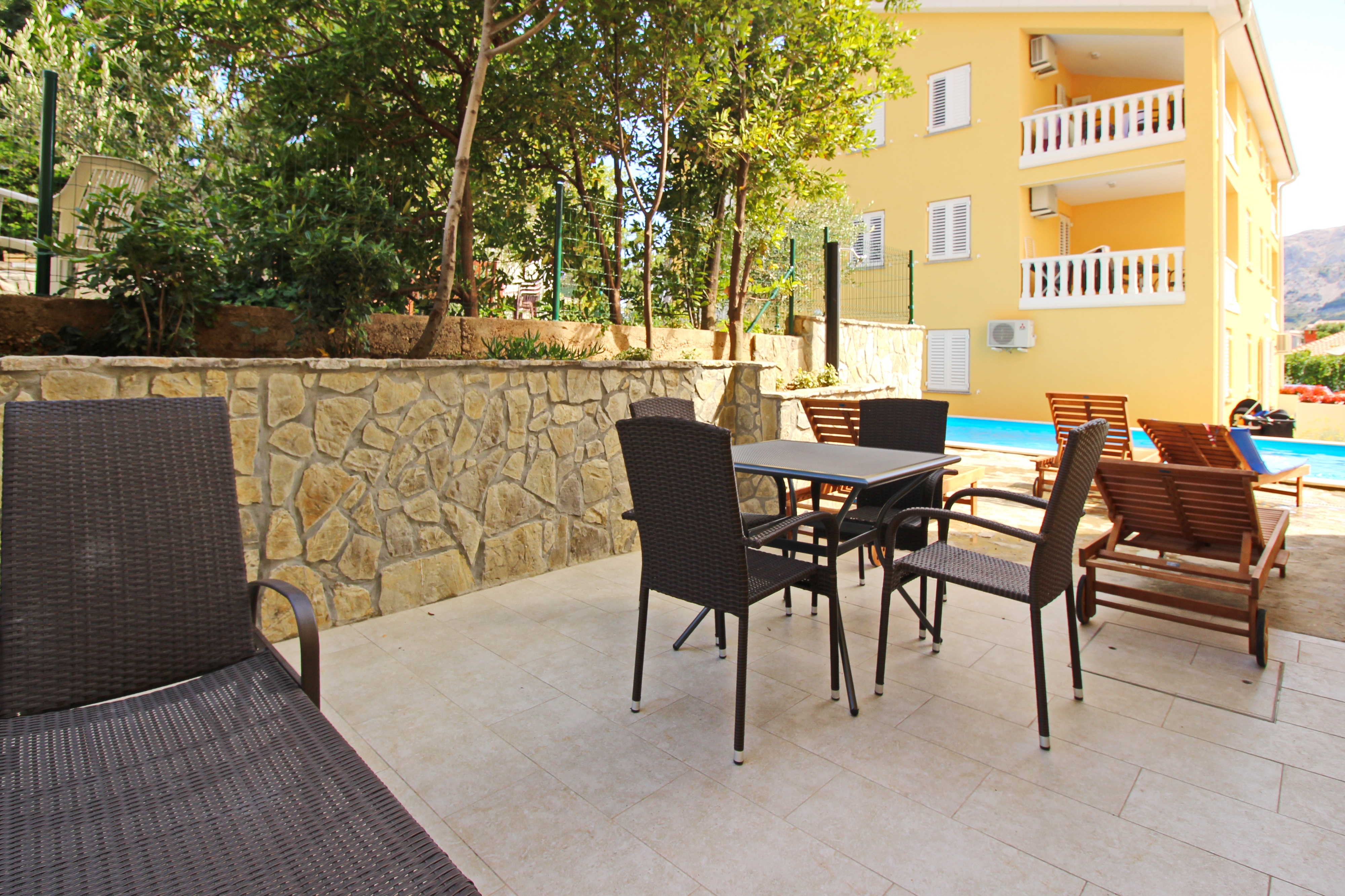Studio flat can accommodate 2 guests. Beds are situated in 1 sleeping rooms, within 30m2. Food can be prepared using barbecue which is shared with other guests too. Shared pool is on disposal during stay. There is no balcony or terrace in the reserved accommodation unit. INCLUDED IN THE PRICE: final cleaning, air-conditioning, pool, parking, internet. OBLIGATORY ADDITIONAL COSTS: tourist tax (adults €0.93 - €2.20 nightperson, discount for children aged 12 - 17), short stay fee (surcharge depending on a number of booked nights: 30% - 1, 20% - 2, 10% - 3). The availability of additional services for your chosen dates of stay, as well as their prices (if none are listed) must be checked ahead of time. Any additional services not shown in the price calculation are payable directly to the property owner and only if used by the visitor.