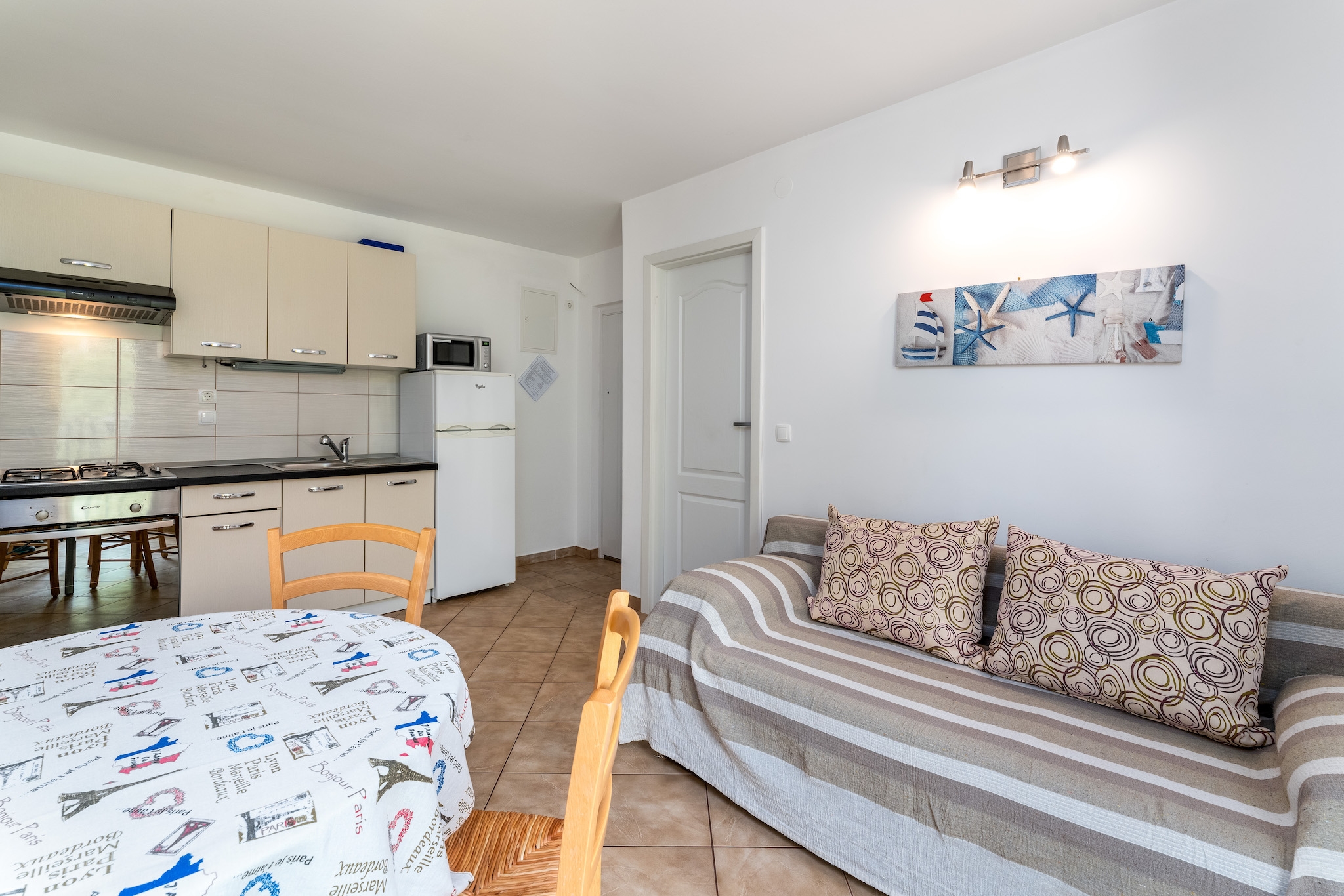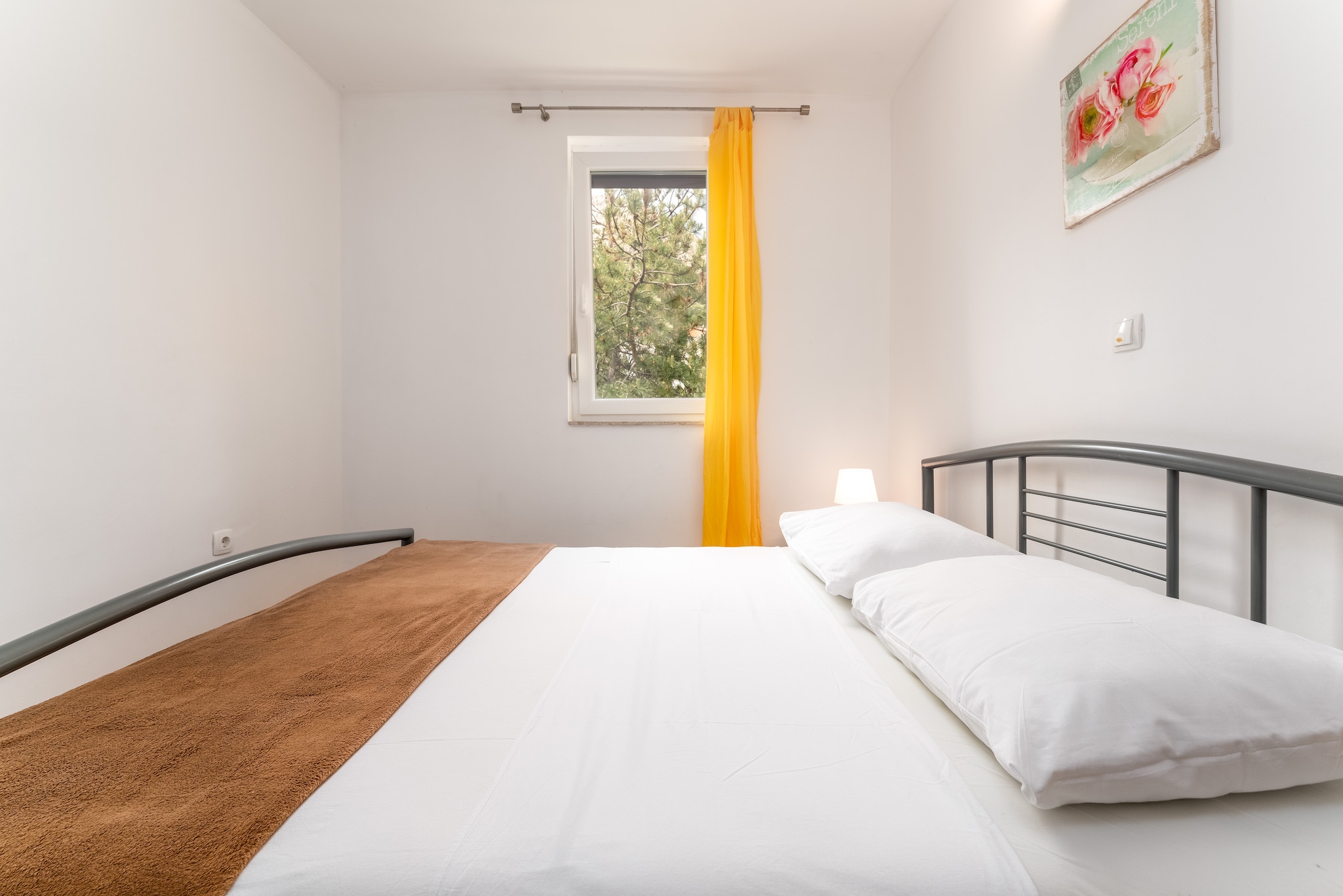 Apartment can accommodate 4 guests. Beds are situated in 2 sleeping rooms, within 36m2. Guests can use a private terrace to enjoy the warm summer evenings. Food can be prepared using barbecue which is shared with other guests too. Other guests or hosts pass through the terrace of the booked accommodation unit. INCLUDED IN THE PRICE: tourist tax, final cleaning, air-conditioning, parking, internet, baby cot, sunshade. OBLIGATORY ADDITIONAL COSTS: short stay fee (surcharge depending on a number of booked nights: 30% - 1, 20% - 2, 10% - 3). The availability of additional services for your chosen dates of stay, as well as their prices (if none are listed) must be checked ahead of time. Any additional services not shown in the price calculation are payable directly to the property owner and only if used by the visitor. Discounts to the base price: free day 14=13 (for reservations of 14 or more days you get one free day for the stay until 31122026).
