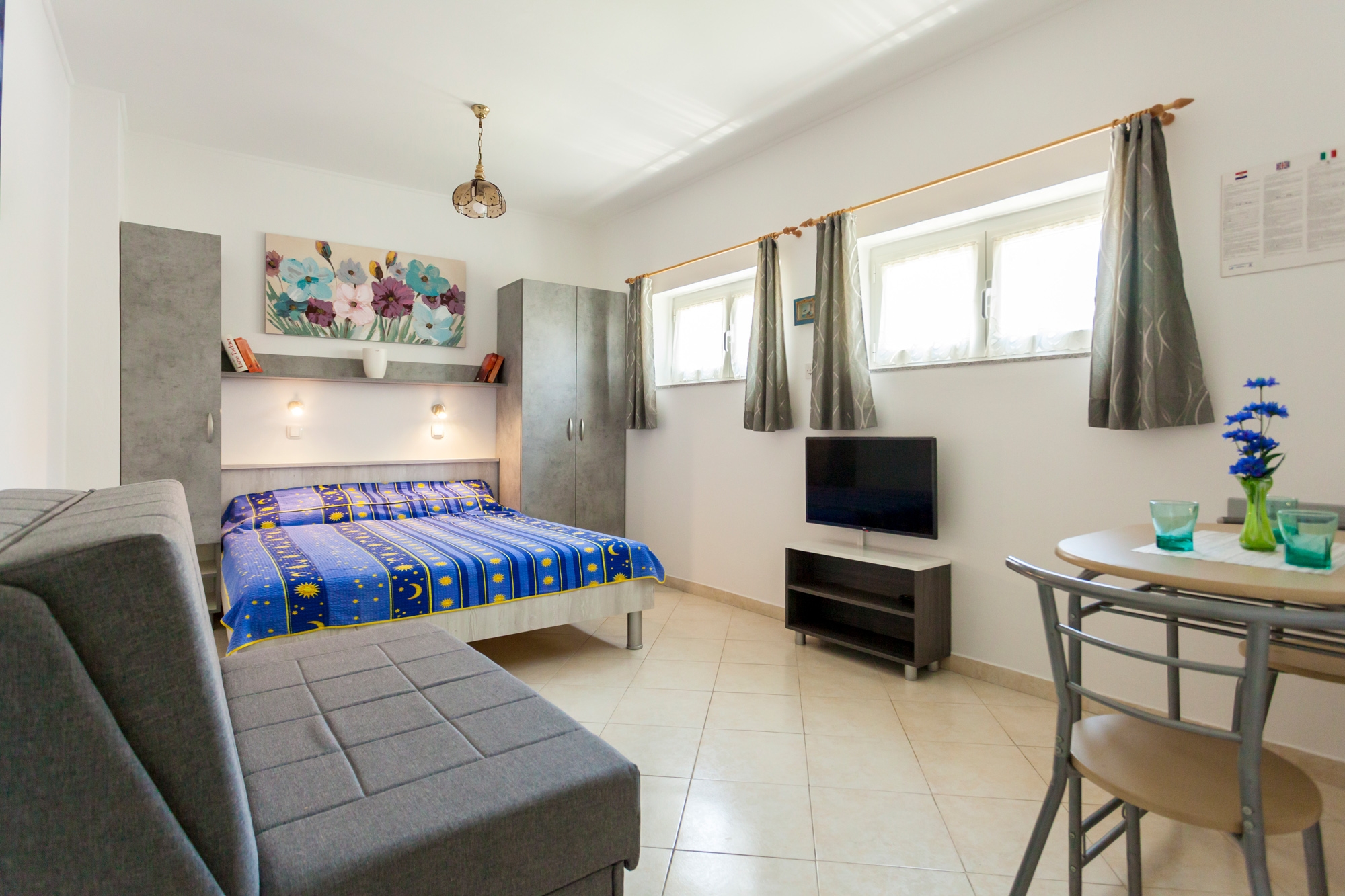 Studio flat can accommodate 2 guests. Beds are situated in 1 sleeping rooms, within 21m2. Guests can use a private terrace to enjoy the warm summer evenings. Food can be prepared using barbecue which is shared with other guests too. INCLUDED IN THE PRICE: tourist tax, final cleaning, air-conditioning, parking, internet. The availability of additional services for your chosen dates of stay, as well as their prices (if none are listed) must be checked ahead of time. Any additional services not shown in the price calculation are payable directly to the property owner and only if used by the visitor.
