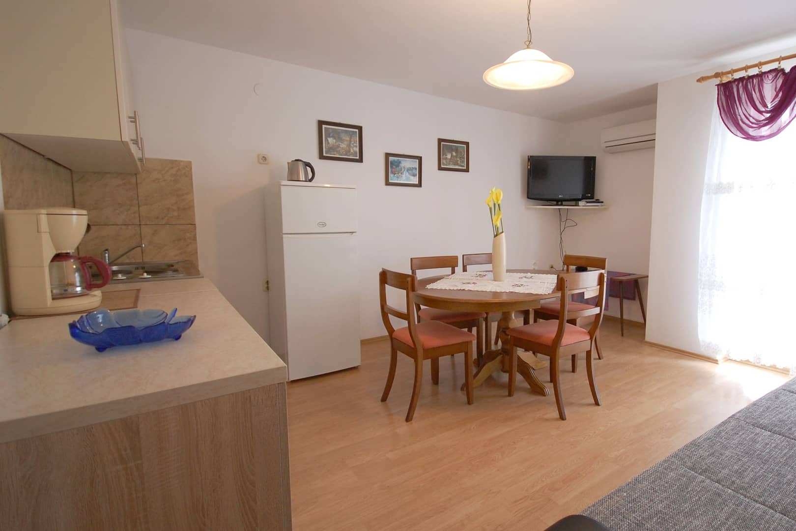 Apartment can accommodate 4 guests. Beds are situated in 2 sleeping rooms, within 44m2. Guests can use a private balcony to enjoy the warm summer evenings. Food can be prepared using barbecue which is shared with other guests too. INCLUDED IN THE PRICE: tourist tax, final cleaning, air-conditioning, parking. The availability of additional services for your chosen dates of stay, as well as their prices (if none are listed) must be checked ahead of time. Any additional services not shown in the price calculation are payable directly to the property owner and only if used by the visitor.