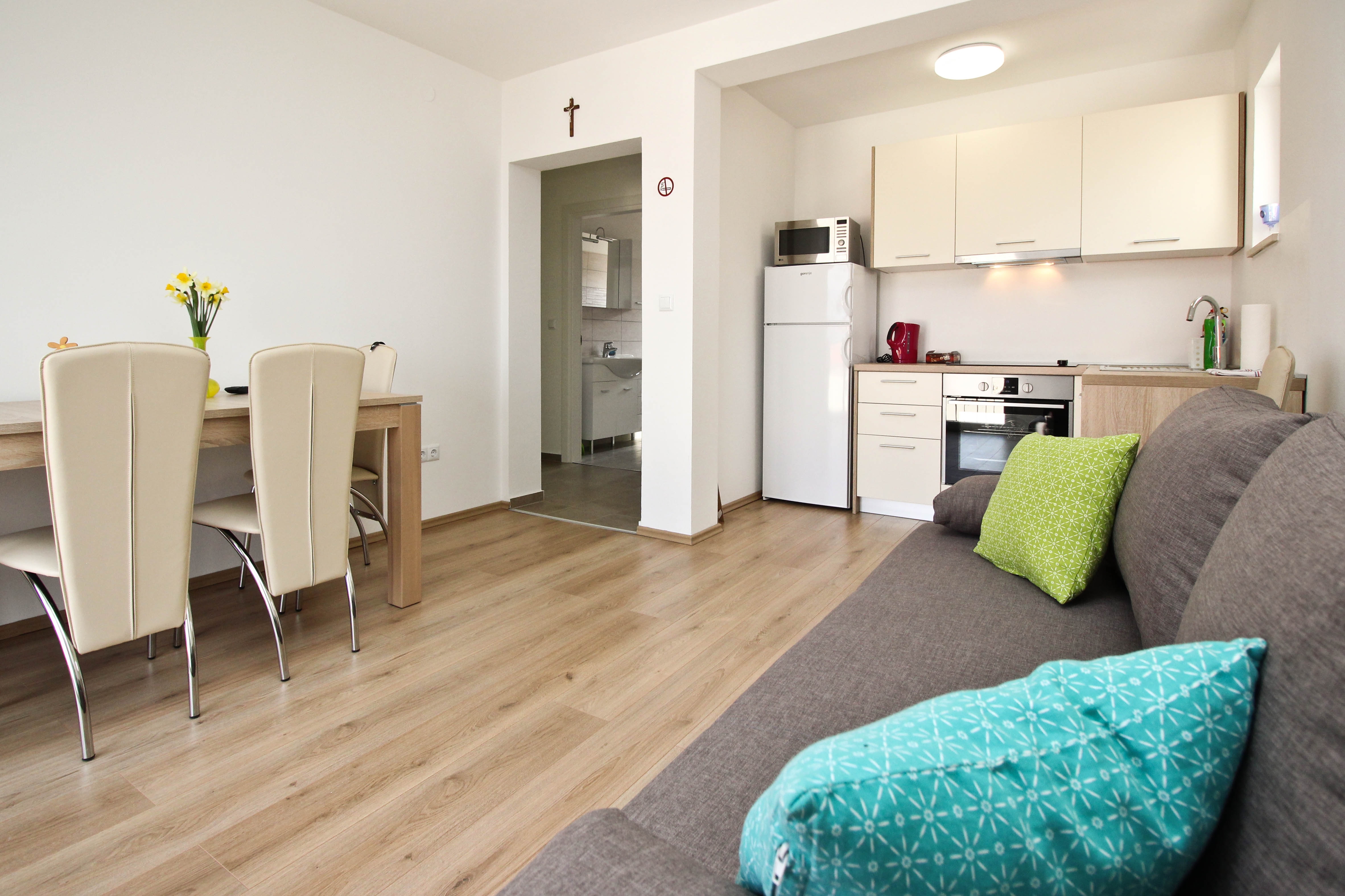 Apartment can accommodate 6 guests. Beds are situated in 2 sleeping rooms, but also in the living room, within 47m2. Guests can use a private balcony to enjoy the warm summer evenings. The apartment offers the sea view. Food can be prepared using barbecue which is shared with other guests too. INCLUDED IN THE PRICE: tourist tax, final cleaning, air-conditioning, parking, internet. The availability of additional services for your chosen dates of stay, as well as their prices (if none are listed) must be checked ahead of time. Any additional services not shown in the price calculation are payable directly to the property owner and only if used by the visitor.