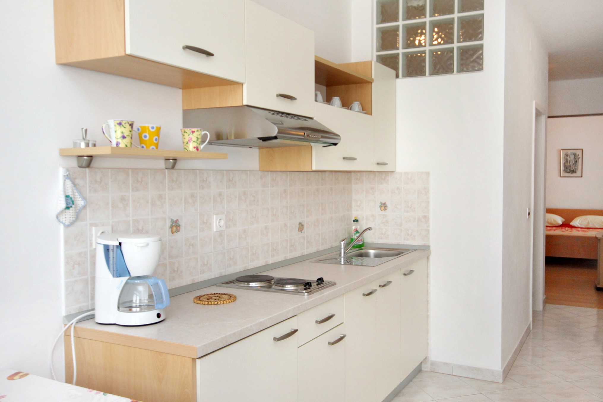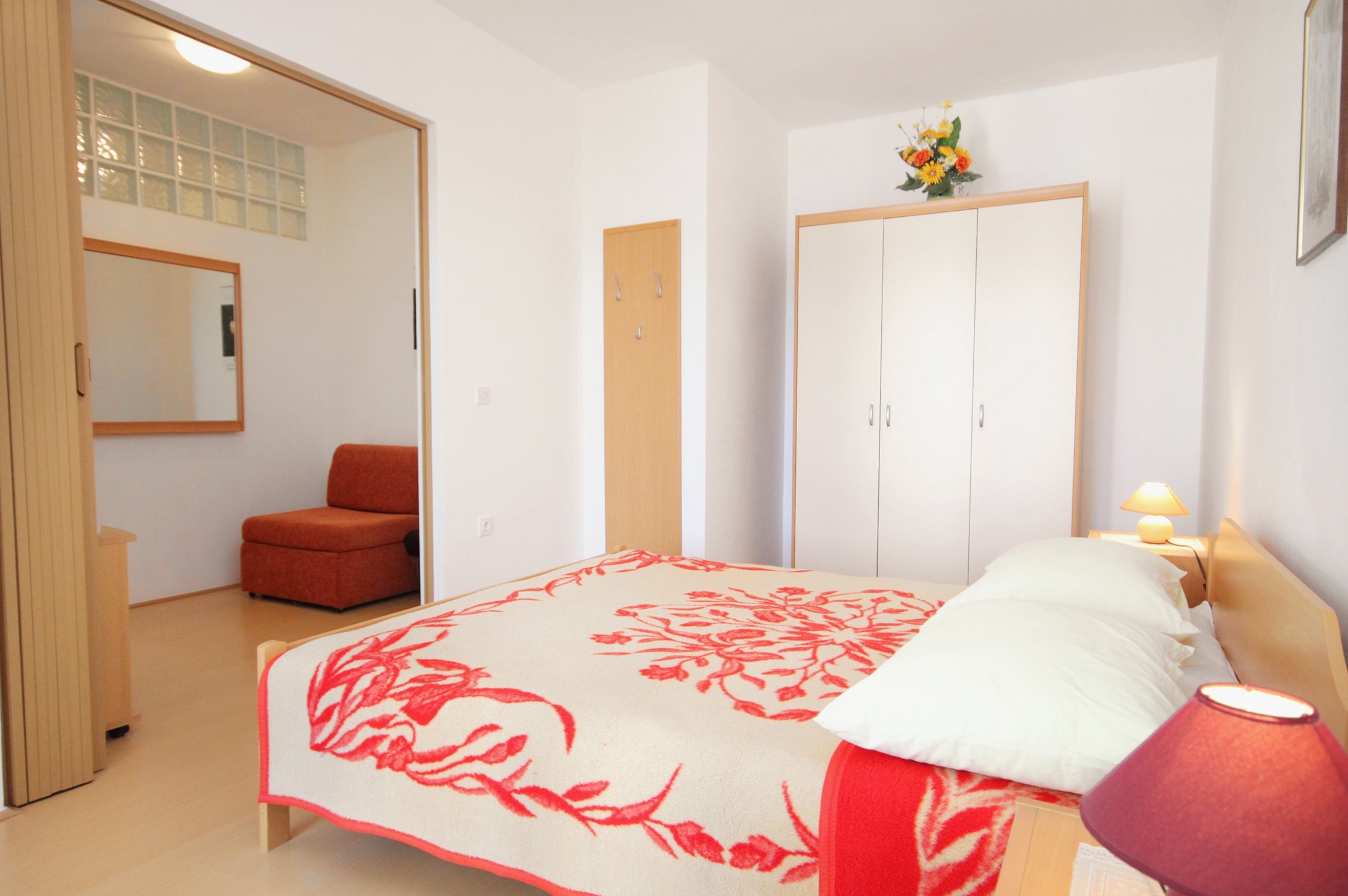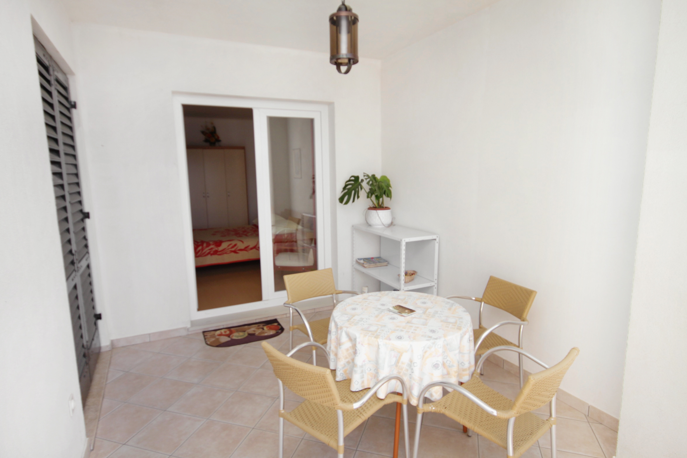 Apartment can accommodate 2 guests. Beds are situated in 1 sleeping rooms, within 32m2. Guests can use a private terrace to enjoy the warm summer evenings. The apartment offers the sea view. Food can be prepared using barbecue which is shared with other guests too. Other guests or hosts pass through the terrace of the booked accommodation unit. INCLUDED IN THE PRICE: tourist tax, final cleaning, parking, garage, internet, baby cot, iron, portable barbecue, 1 bed for children (included in the price). OBLIGATORY ADDITIONAL COSTS: short stay fee (surcharge depending on a number of booked nights: 30% - 1, 20% - 2, 10% - 3). OPTIONAL ADDITIONAL COSTS: air-conditioning (€7.00 per night), central heating (€5.00 per night). The availability of additional services for your chosen dates of stay, as well as their prices (if none are listed) must be checked ahead of time. Any additional services not shown in the price calculation are payable directly to the property owner and only if used by the visitor.
