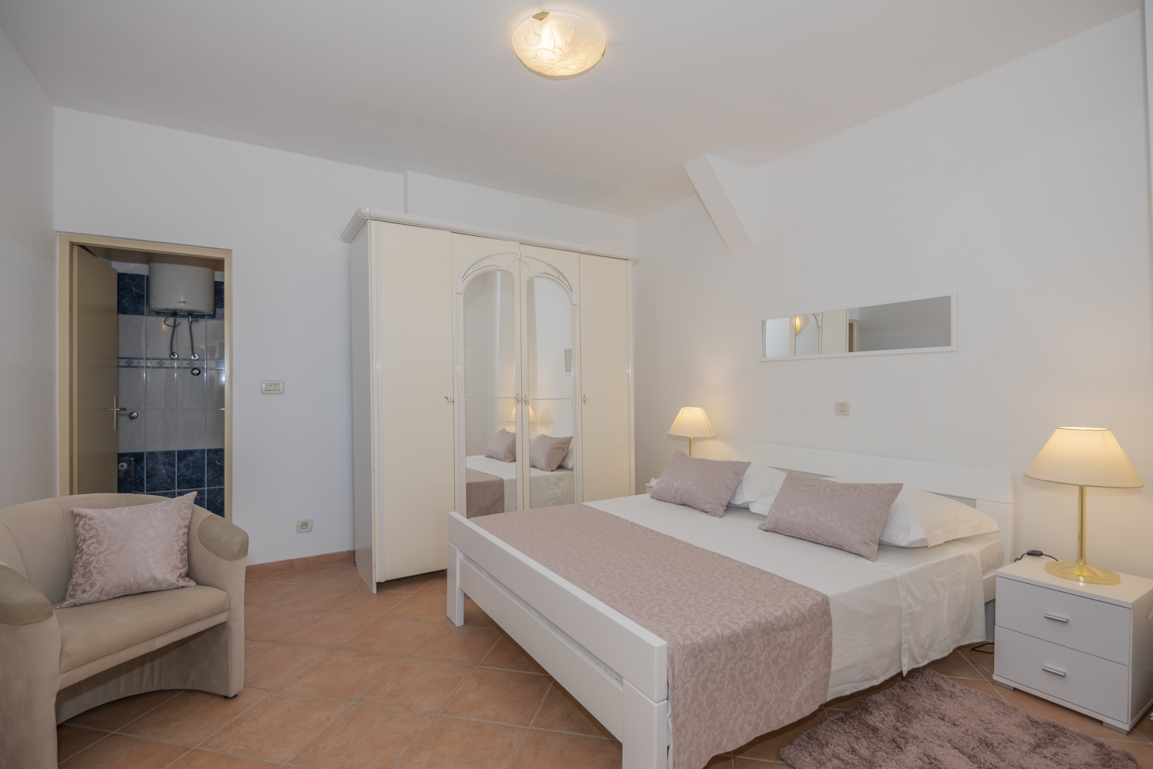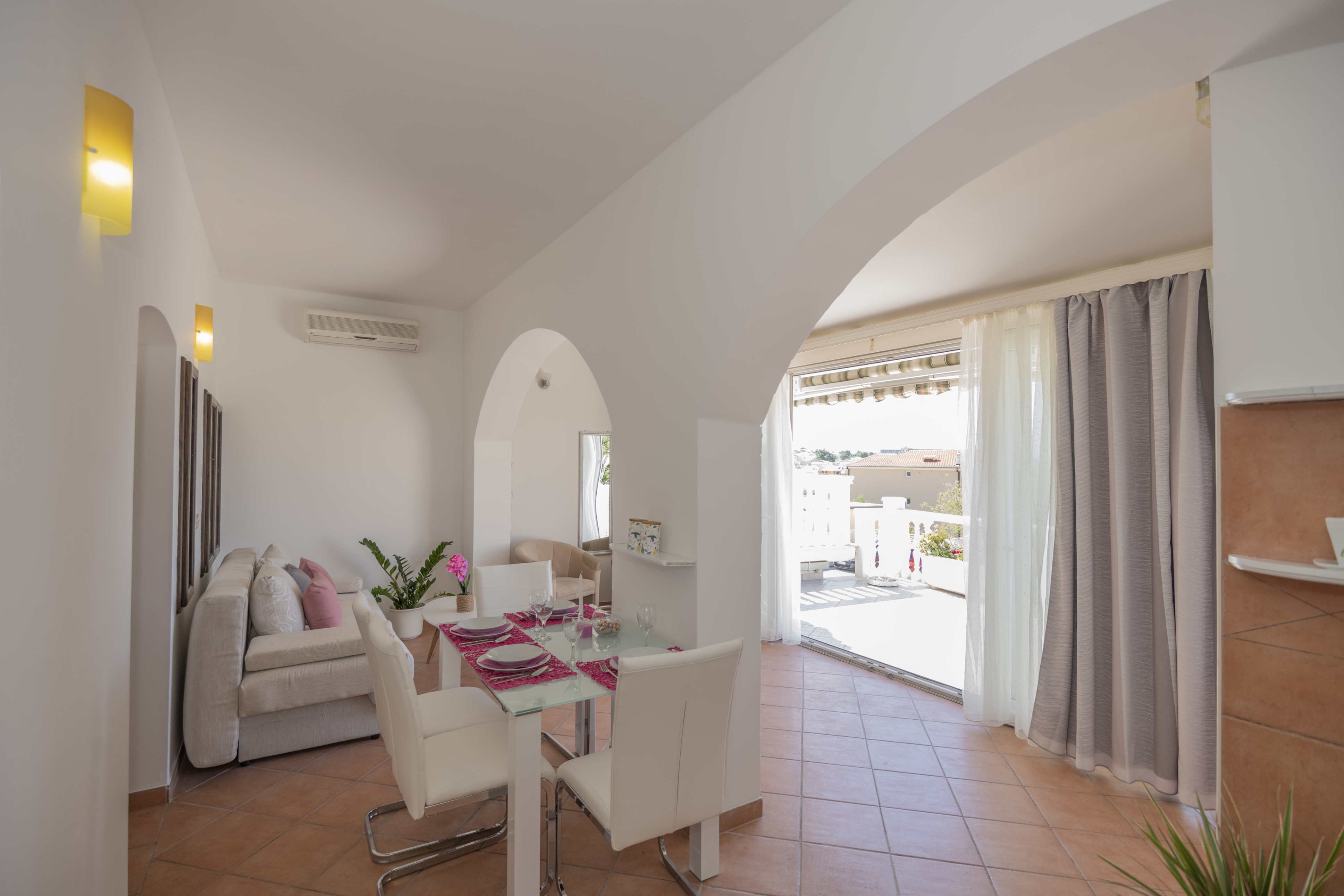 Apartment can accommodate 4 guests. Beds are situated in 2 sleeping rooms, within 59m2. Guests can use a private terrace to enjoy the warm summer evenings. The apartment offers the sea view. This accommodation unit welcomes pets at an additional charge. INCLUDED IN THE PRICE: tourist tax, final cleaning, air-conditioning, garage, internet, baby cot, iron, ironing board, hairdryer. OBLIGATORY ADDITIONAL COSTS: short stay fee (surcharge depending on a number of booked nights: 30% - 1, 20% - 2, 10% - 3). OPTIONAL ADDITIONAL COSTS: pets (€10.00 per night). The availability of additional services for your chosen dates of stay, as well as their prices (if none are listed) must be checked ahead of time. Any additional services not shown in the price calculation are payable directly to the property owner and only if used by the visitor.