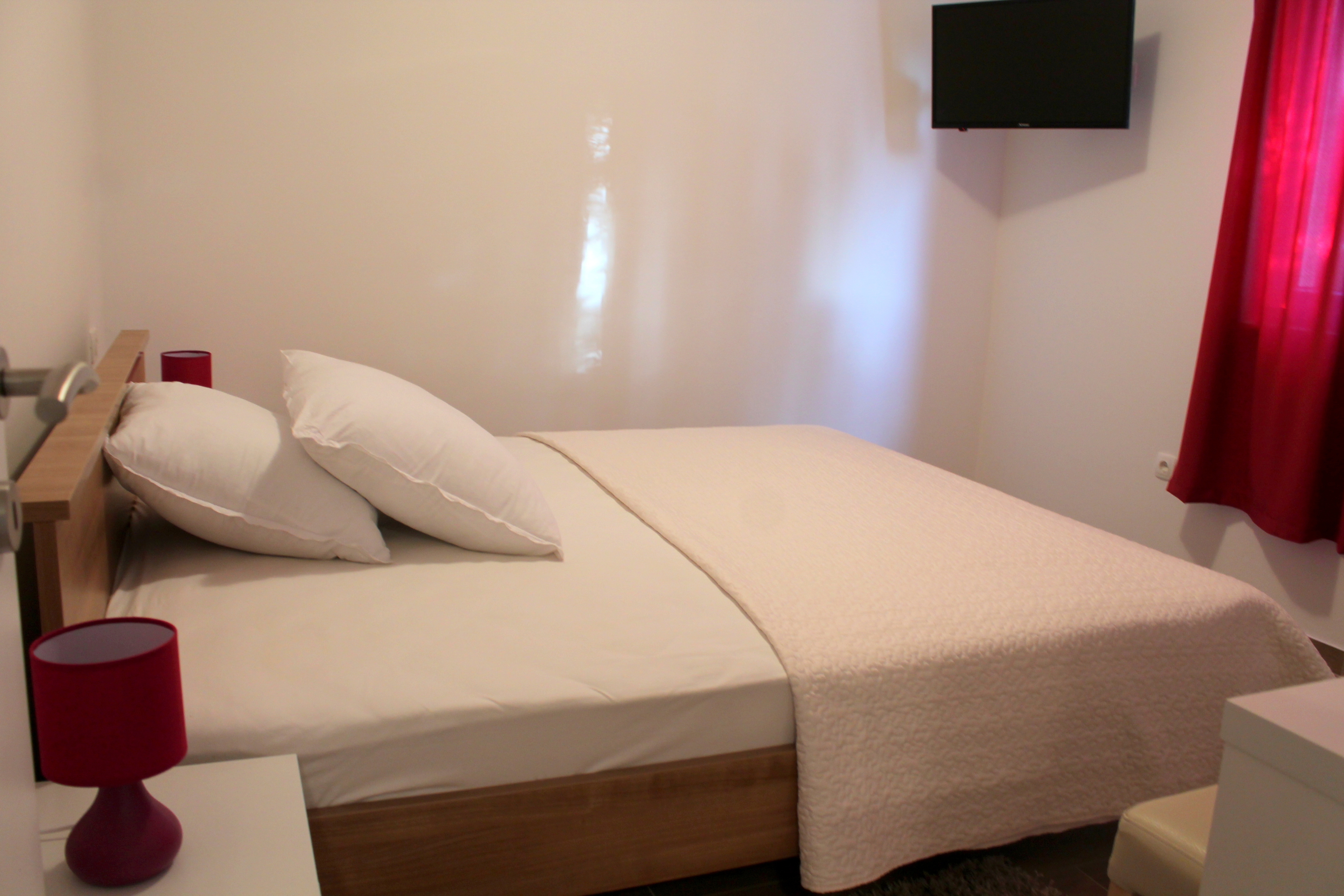 Apartment can accommodate 4 guests. Beds are situated in 1 sleeping rooms, but also in the living room, within 45m2. Guests can use a private balcony to enjoy the warm summer evenings. Food can be prepared using barbecue which is shared with other guests too. INCLUDED IN THE PRICE: tourist tax, final cleaning, air-conditioning, parking, internet, baby cot, hairdryer. The availability of additional services for your chosen dates of stay, as well as their prices (if none are listed) must be checked ahead of time. Any additional services not shown in the price calculation are payable directly to the property owner and only if used by the visitor.