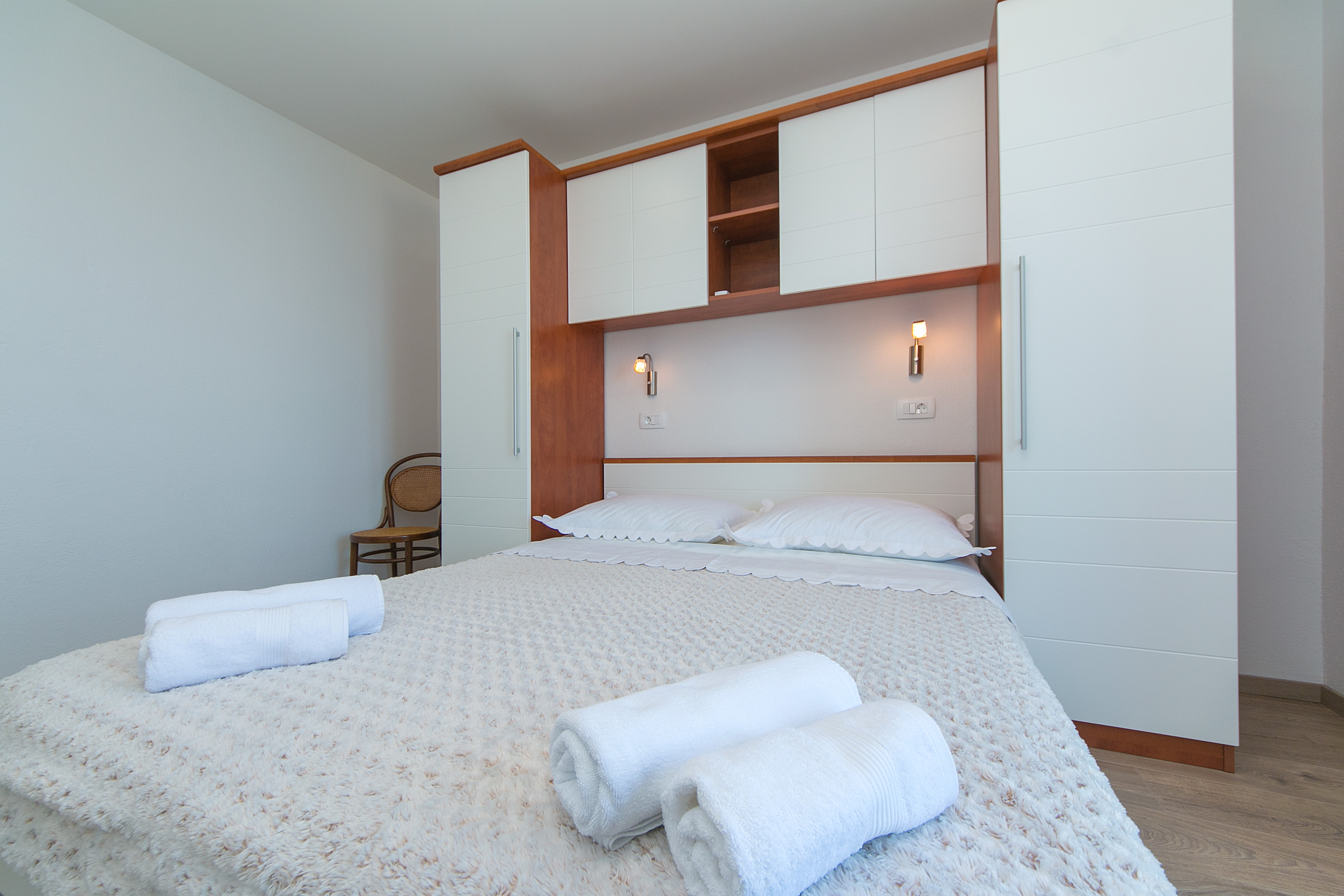 Apartment can accommodate 4 guests. Beds are situated in 1 sleeping rooms, but also in the living room, within 33m2. Guests can use a private balcony to enjoy the warm summer evenings. The apartment offers the sea view. Food can be prepared using barbecue which is shared with other guests too. INCLUDED IN THE PRICE: tourist tax, final cleaning, air-conditioning, parking, internet, laundry, baby cot, iron, hairdryer. The availability of additional services for your chosen dates of stay, as well as their prices (if none are listed) must be checked ahead of time. Any additional services not shown in the price calculation are payable directly to the property owner and only if used by the visitor.