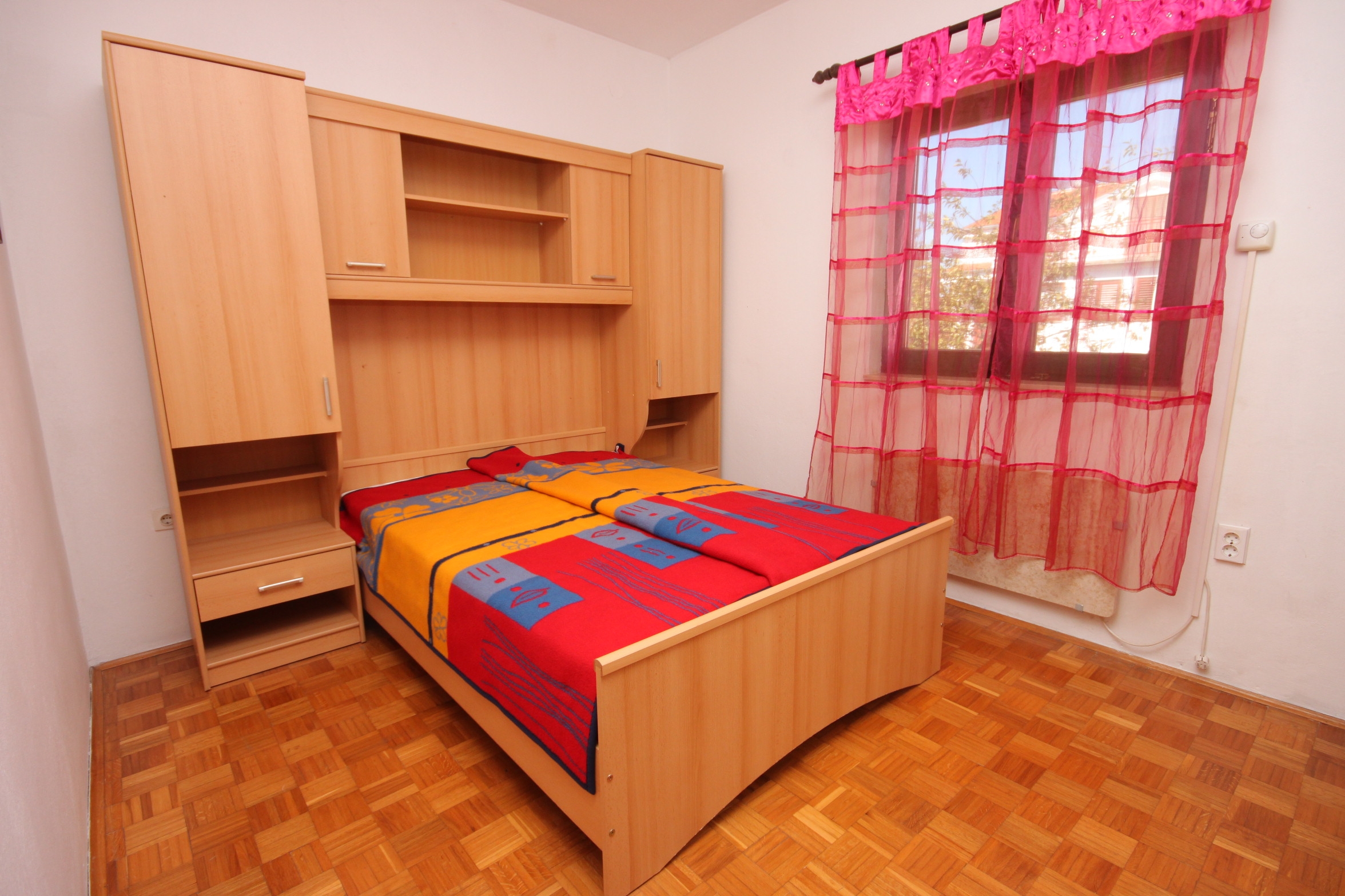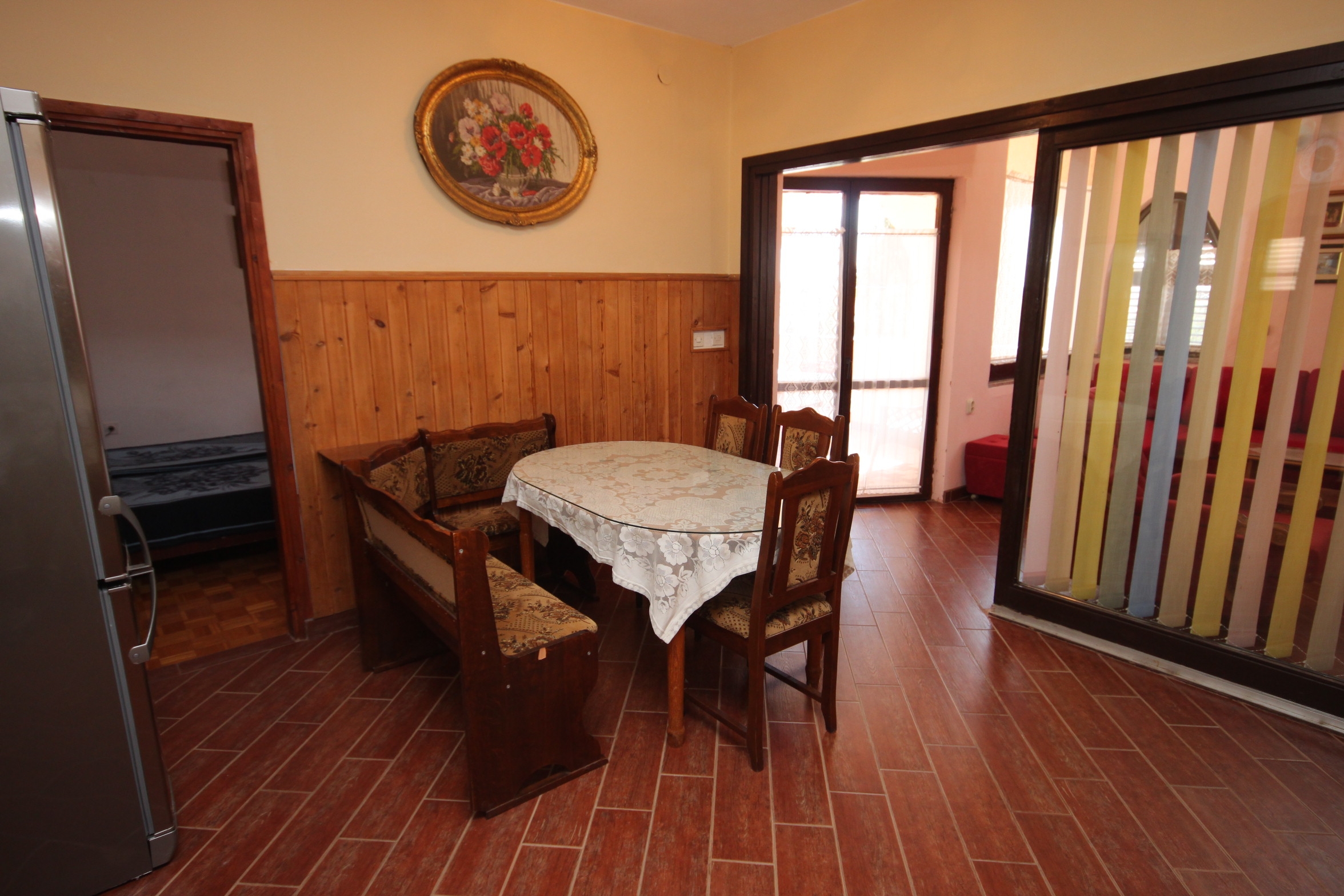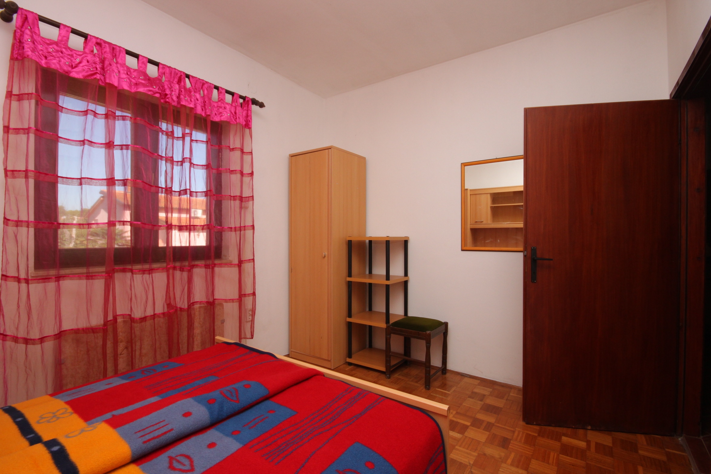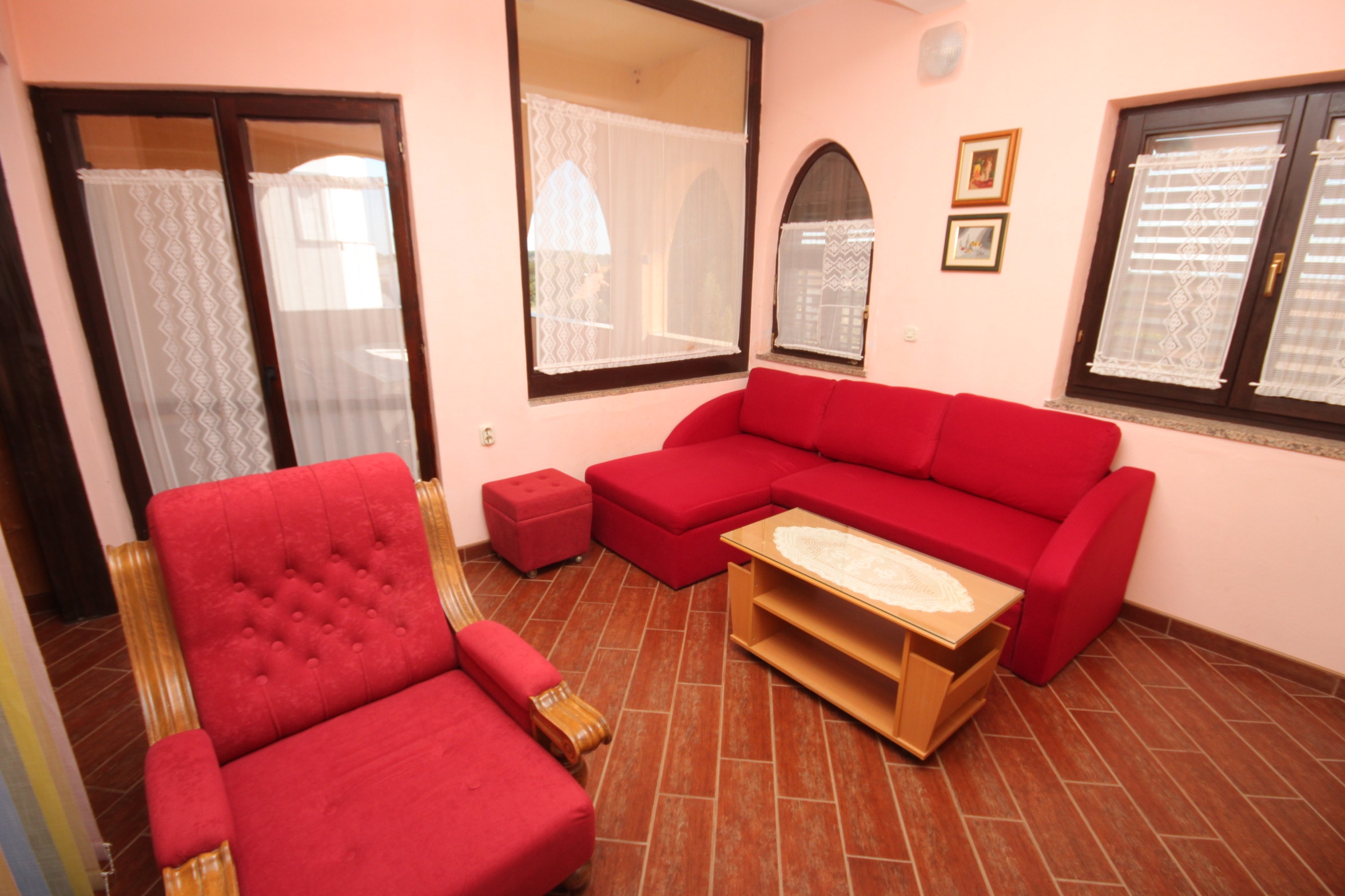 Apartment can accommodate 8 guests. Beds are situated in 3 sleeping rooms, but also in the living room, within 77m2. Guests can use a private terrace to enjoy the warm summer evenings. Food can be prepared using barbecue which is shared with other guests too. INCLUDED IN THE PRICE: tourist tax, final cleaning, parking, internet, iron, ironing board, hairdryer, portable barbecue. OBLIGATORY ADDITIONAL COSTS: short stay fee (surcharge depending on a number of booked nights: 30% - 1, 20% - 2, 10% - 3). OPTIONAL ADDITIONAL COSTS: air-conditioning (€6.00 per night), laundry (€5.00 washing), additional bed (€10.00 per night). The availability of additional services for your chosen dates of stay, as well as their prices (if none are listed) must be checked ahead of time. Any additional services not shown in the price calculation are payable directly to the property owner and only if used by the visitor.