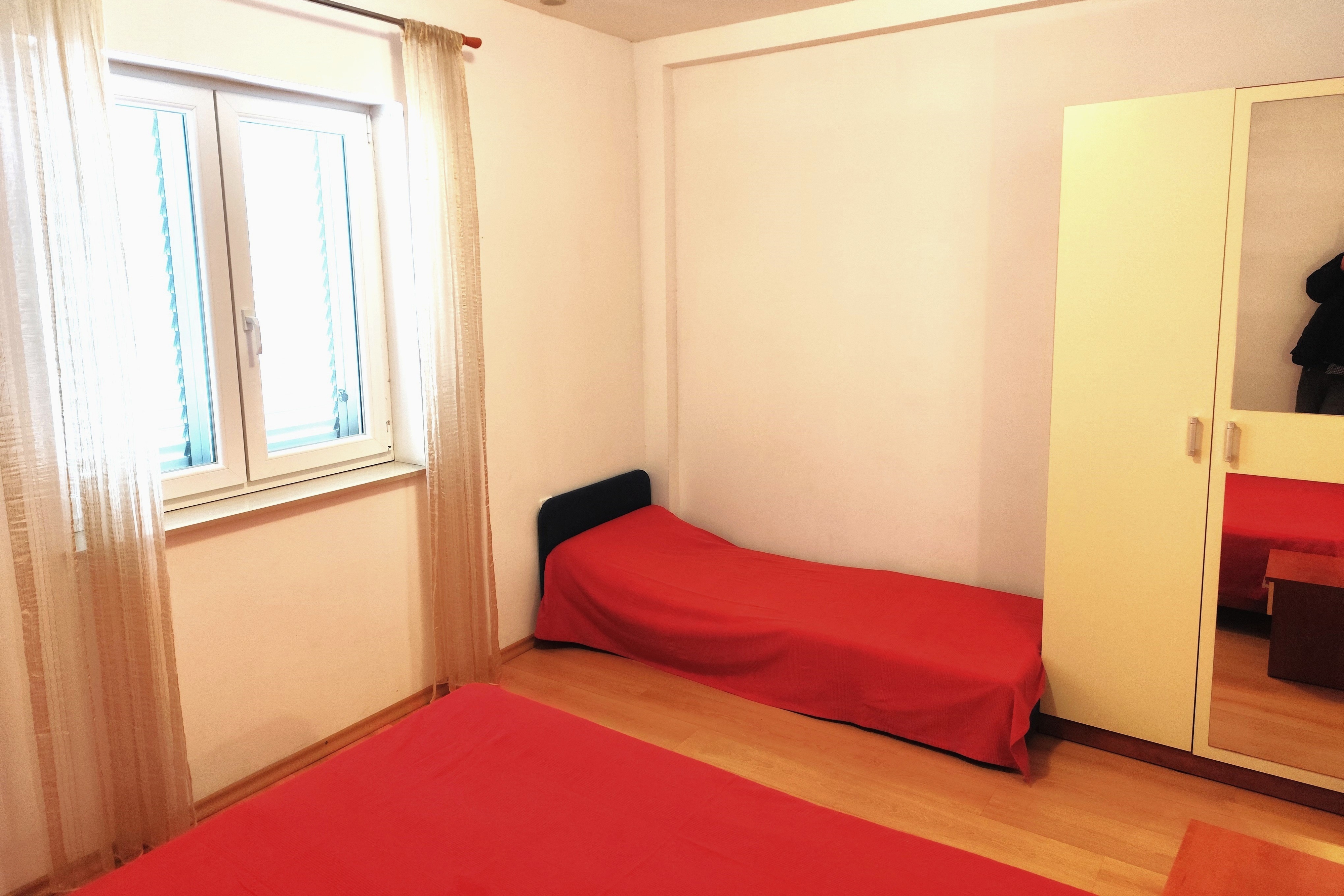 Apartment can accommodate 5 guests. Beds are situated in 1 sleeping rooms, but also in the living room, within 37m2. Guests can use a private terrace to enjoy the warm summer evenings. Food can be prepared using barbecue which is shared with other guests too. For the booked accommodation unit the deposit is paid directly to the owner upon check-in (deposit amount is displayed on the website) INCLUDED IN THE PRICE: tourist tax, final cleaning, parking, internet, iron, ironing board, hairdryer. OBLIGATORY ADDITIONAL COSTS: deposit (€100.00 one-time payment), short stay fee (surcharge depending on a number of booked nights: 30% - 1, 20% - 2, 10% - 3). OPTIONAL ADDITIONAL COSTS: air-conditioning (€6.00 per night), laundry (€5.00 washing). The availability of additional services for your chosen dates of stay, as well as their prices (if none are listed) must be checked ahead of time. Any additional services not shown in the price calculation are payable directly to the property owner and only if used by the visitor.
