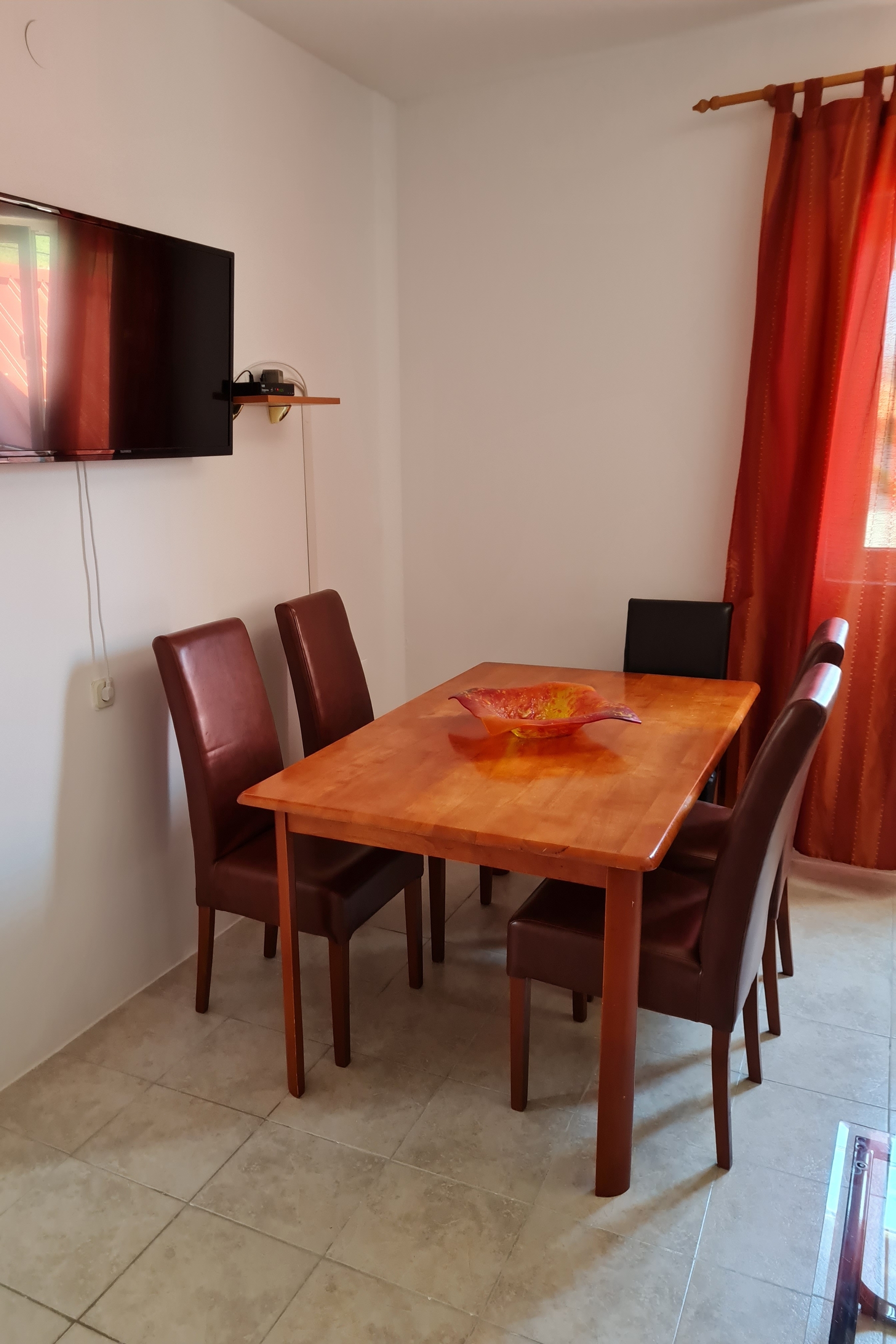 Apartment can accommodate 5 guests. Beds are situated in 1 sleeping rooms, but also in the living room, within 38m2. Guests can use a private balcony to enjoy the warm summer evenings. Food can be prepared using barbecue which is shared with other guests too. This accommodation unit welcomes pets at an additional charge. INCLUDED IN THE PRICE: tourist tax, final cleaning, air-conditioning, parking, internet, portable barbecue. OBLIGATORY ADDITIONAL COSTS: short stay fee (surcharge depending on a number of booked nights: 30% - 1, 20% - 2, 10% - 3). OPTIONAL ADDITIONAL COSTS: pets (€20.00 per night). The availability of additional services for your chosen dates of stay, as well as their prices (if none are listed) must be checked ahead of time. Any additional services not shown in the price calculation are payable directly to the property owner and only if used by the visitor.