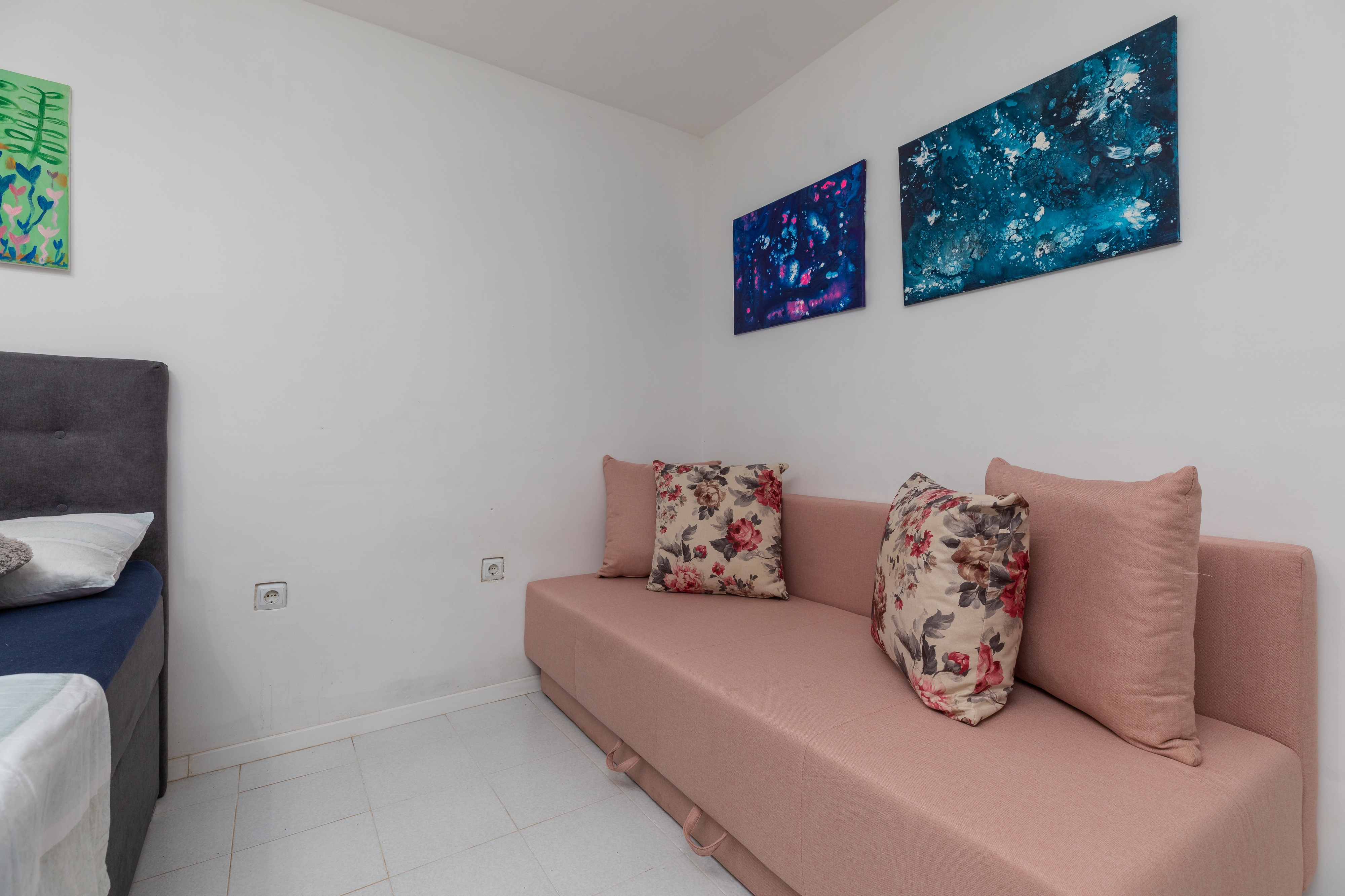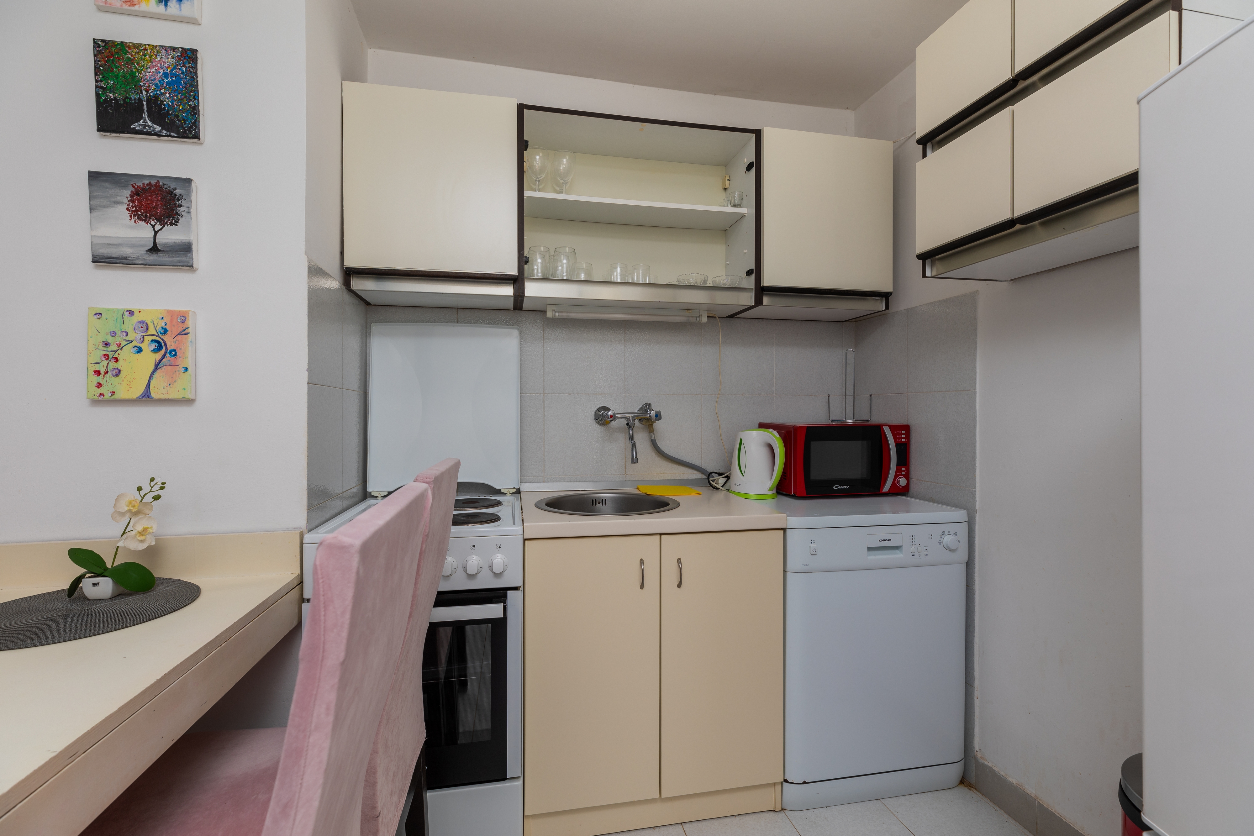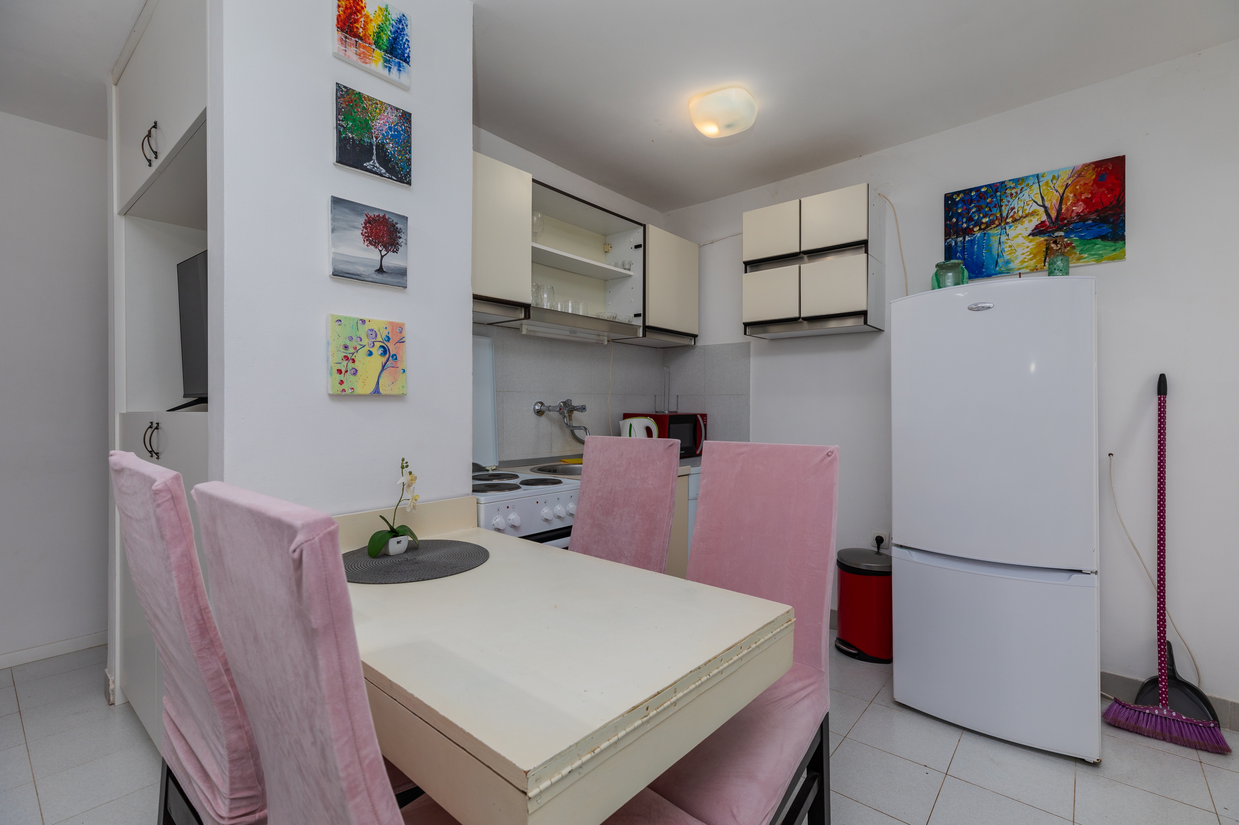 Studio flat can accommodate 4 guests. Beds are situated in 1 sleeping rooms, within 20m2. Guests can use a private terrace to enjoy the warm summer evenings. For full enjoyment and relaxation there is a private barbecue for this accommodation guests only. This accommodation unit welcomes pets at an additional charge. INCLUDED IN THE PRICE: tourist tax, final cleaning, air-conditioning, parking, internet, hairdryer. OBLIGATORY ADDITIONAL COSTS: short stay fee (surcharge depending on a number of booked nights: 30% - 1, 20% - 2, 10% - 3). OPTIONAL ADDITIONAL COSTS: pets (€15.00 per night). The availability of additional services for your chosen dates of stay, as well as their prices (if none are listed) must be checked ahead of time. Any additional services not shown in the price calculation are payable directly to the property owner and only if used by the visitor.