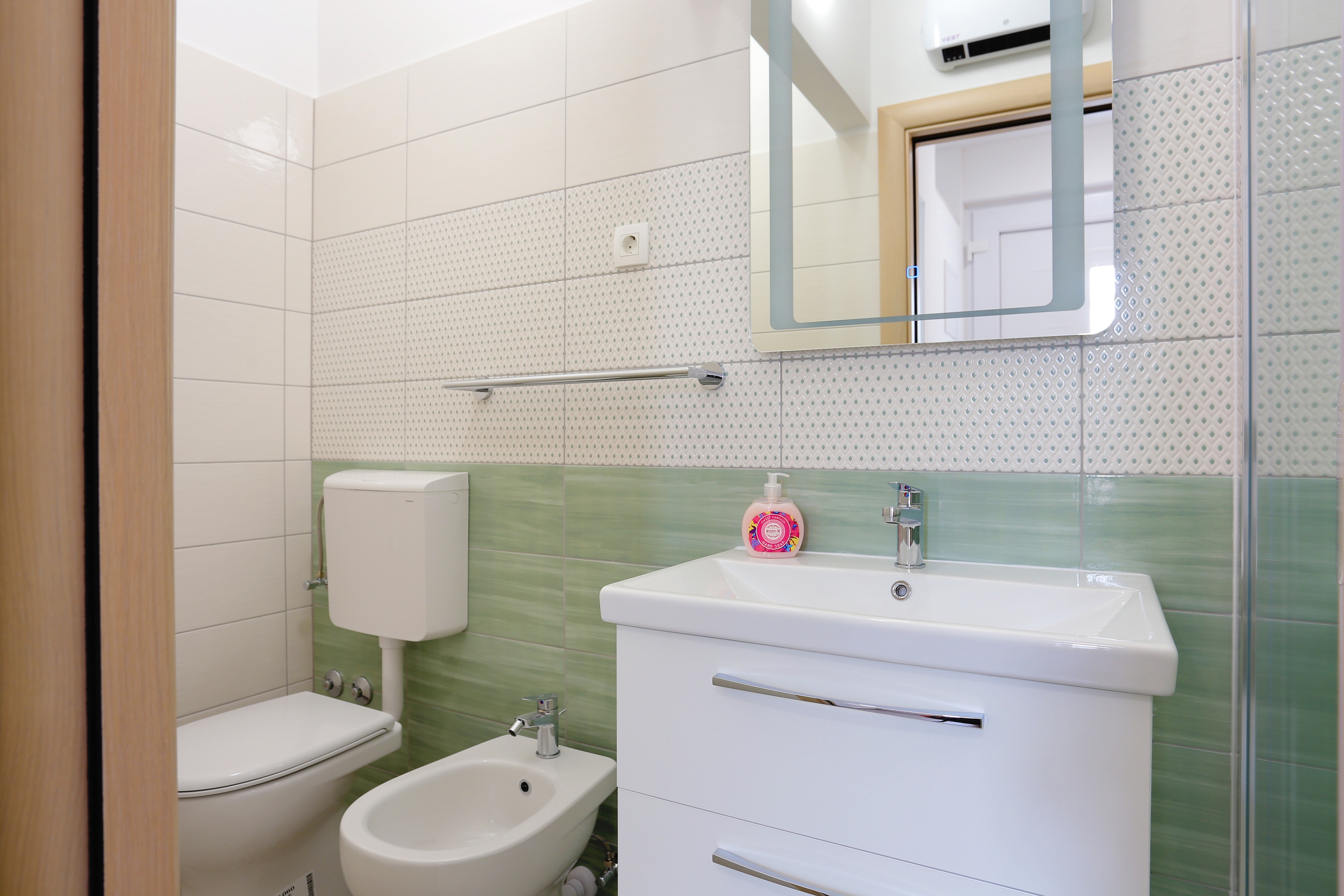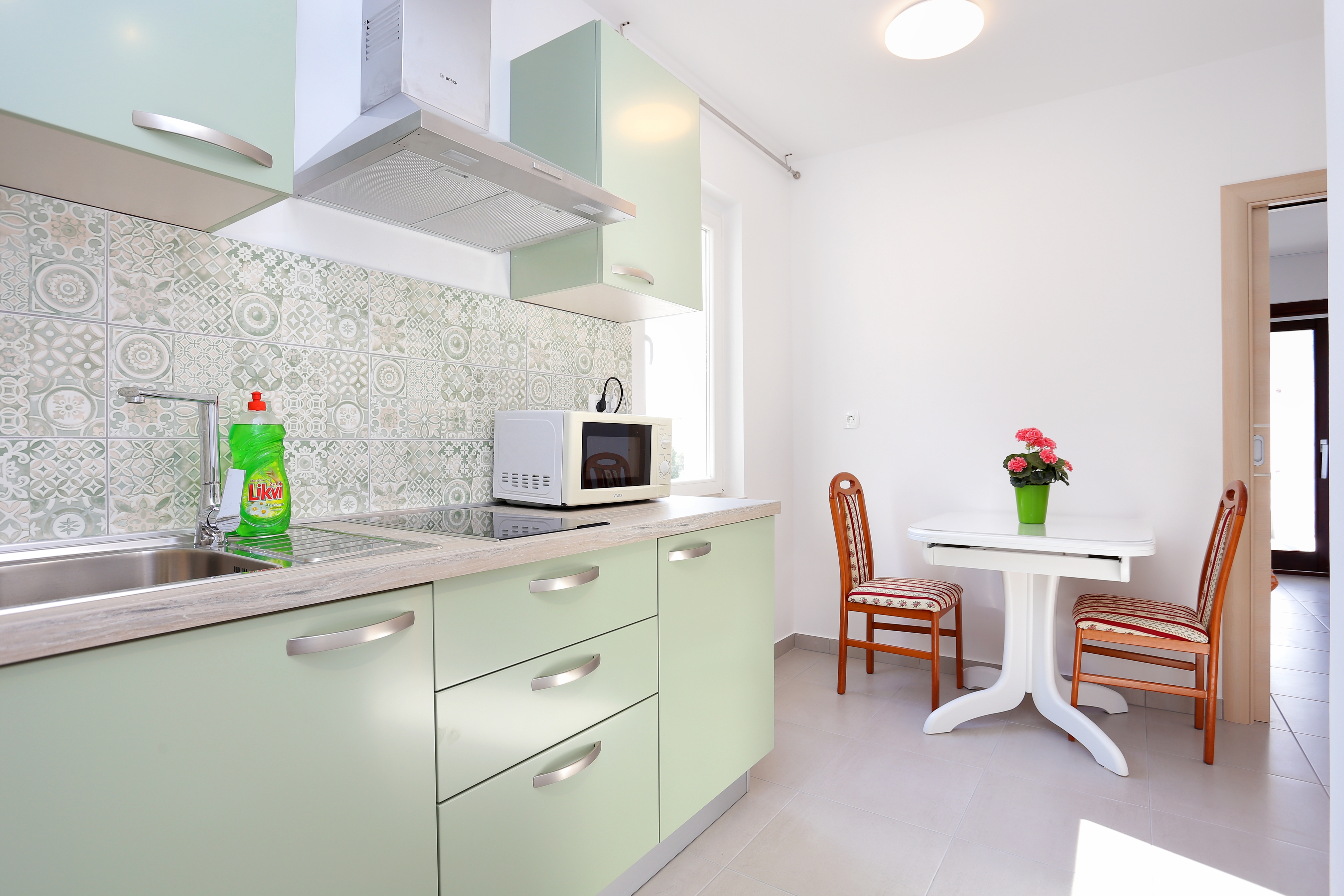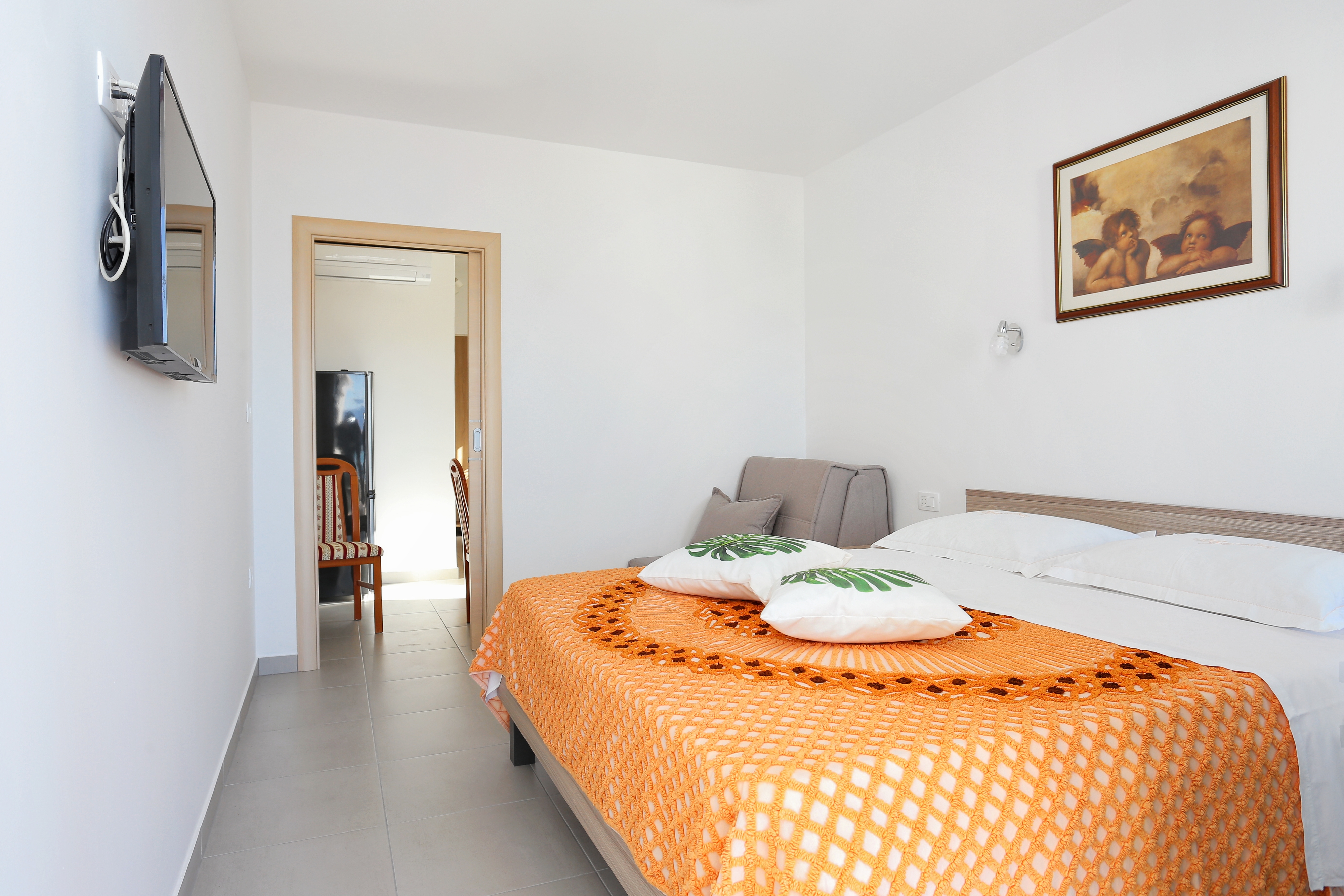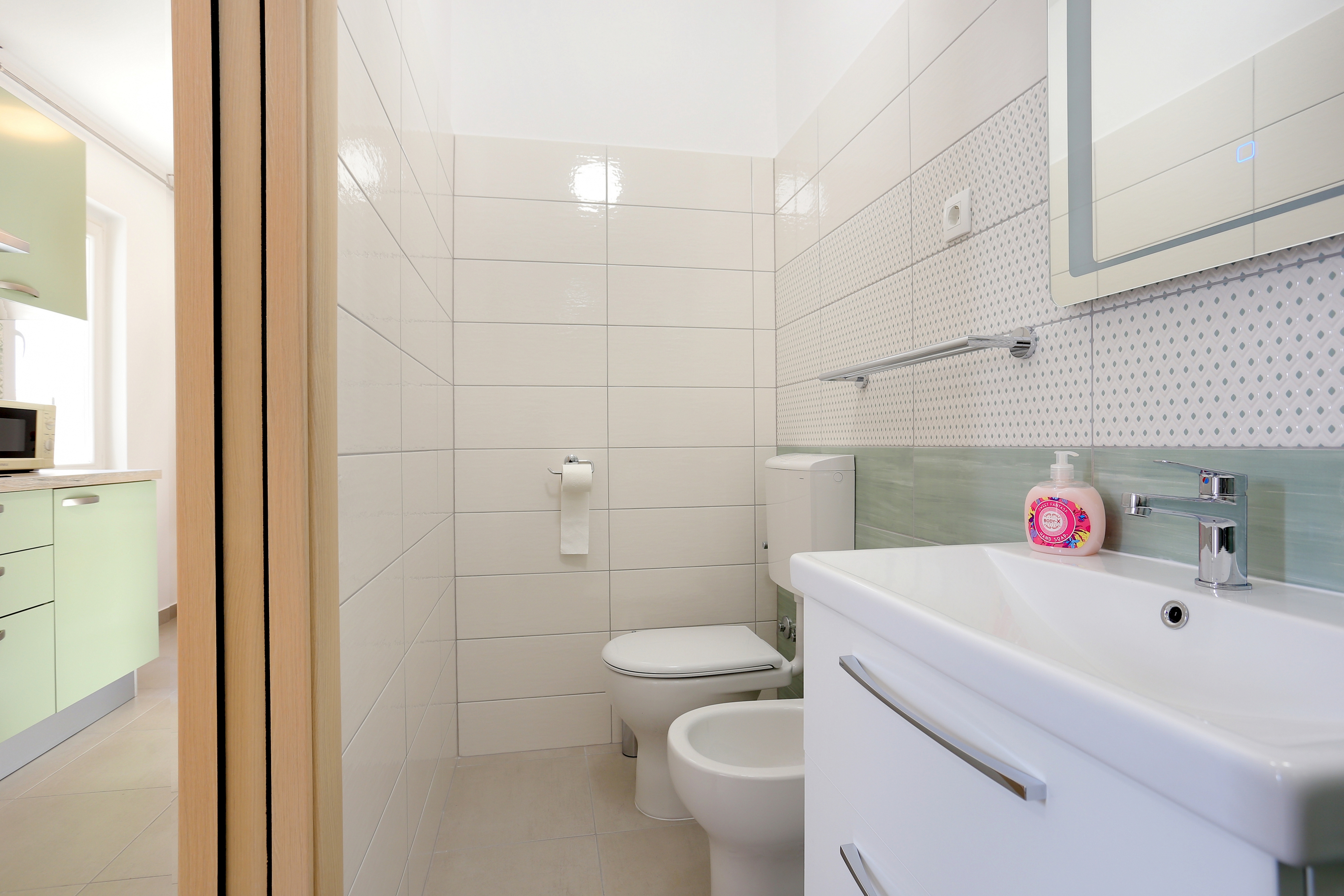 Apartment can accommodate 3 guests. Beds are situated in 1 sleeping rooms, within 26m2. Guests can use a private terrace to enjoy the warm summer evenings. The apartment offers the sea view. Food can be prepared using barbecue which is shared with other guests too. INCLUDED IN THE PRICE: tourist tax, final cleaning, air-conditioning, parking, garage, internet, iron, ironing board, hairdryer, portable barbecue. OBLIGATORY ADDITIONAL COSTS: short stay fee (surcharge depending on a number of booked nights: 30% - 1, 20% - 2, 10% - 3). OPTIONAL ADDITIONAL COSTS: laundry (€3.00 washing). The availability of additional services for your chosen dates of stay, as well as their prices (if none are listed) must be checked ahead of time. Any additional services not shown in the price calculation are payable directly to the property owner and only if used by the visitor.