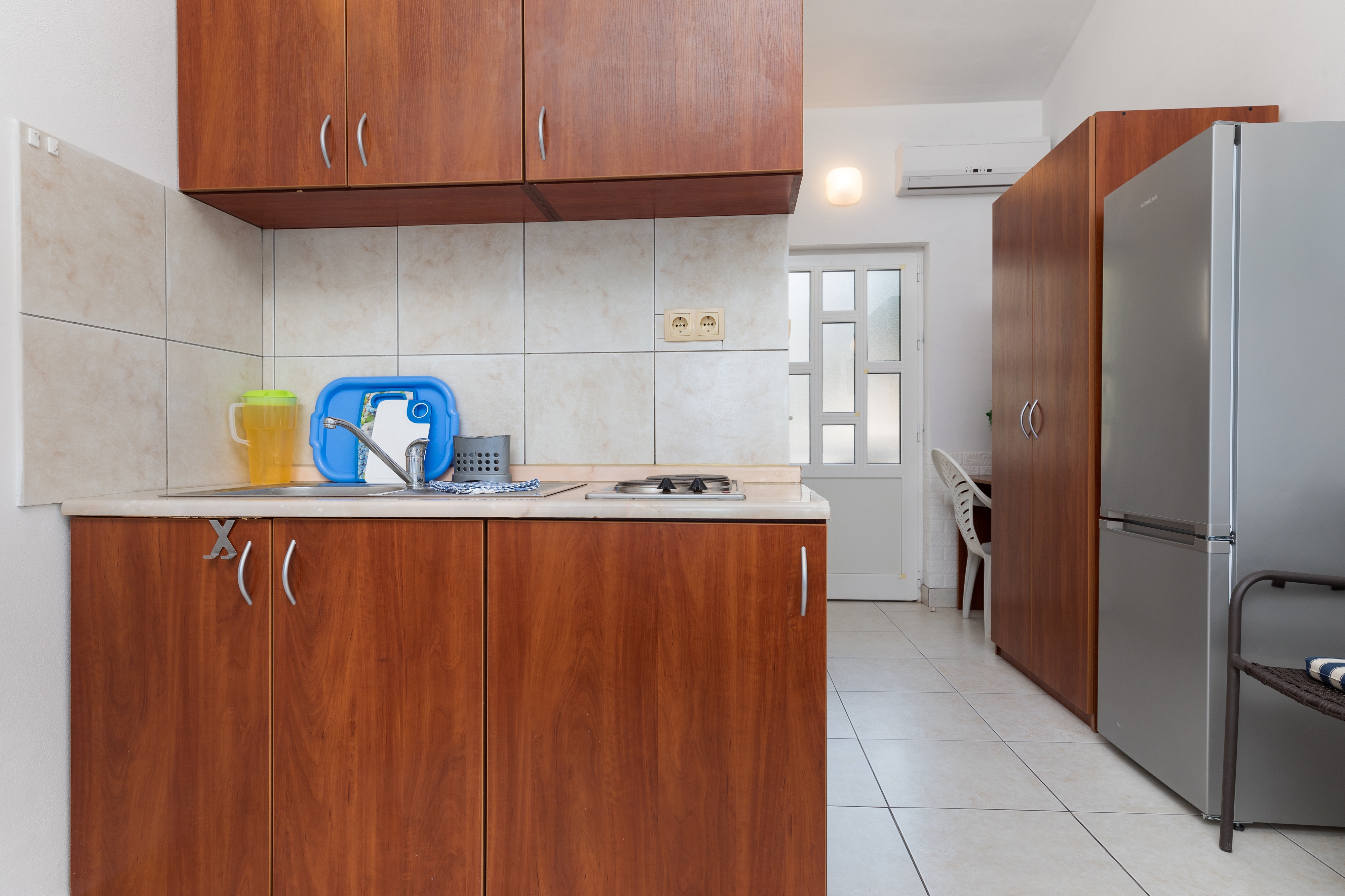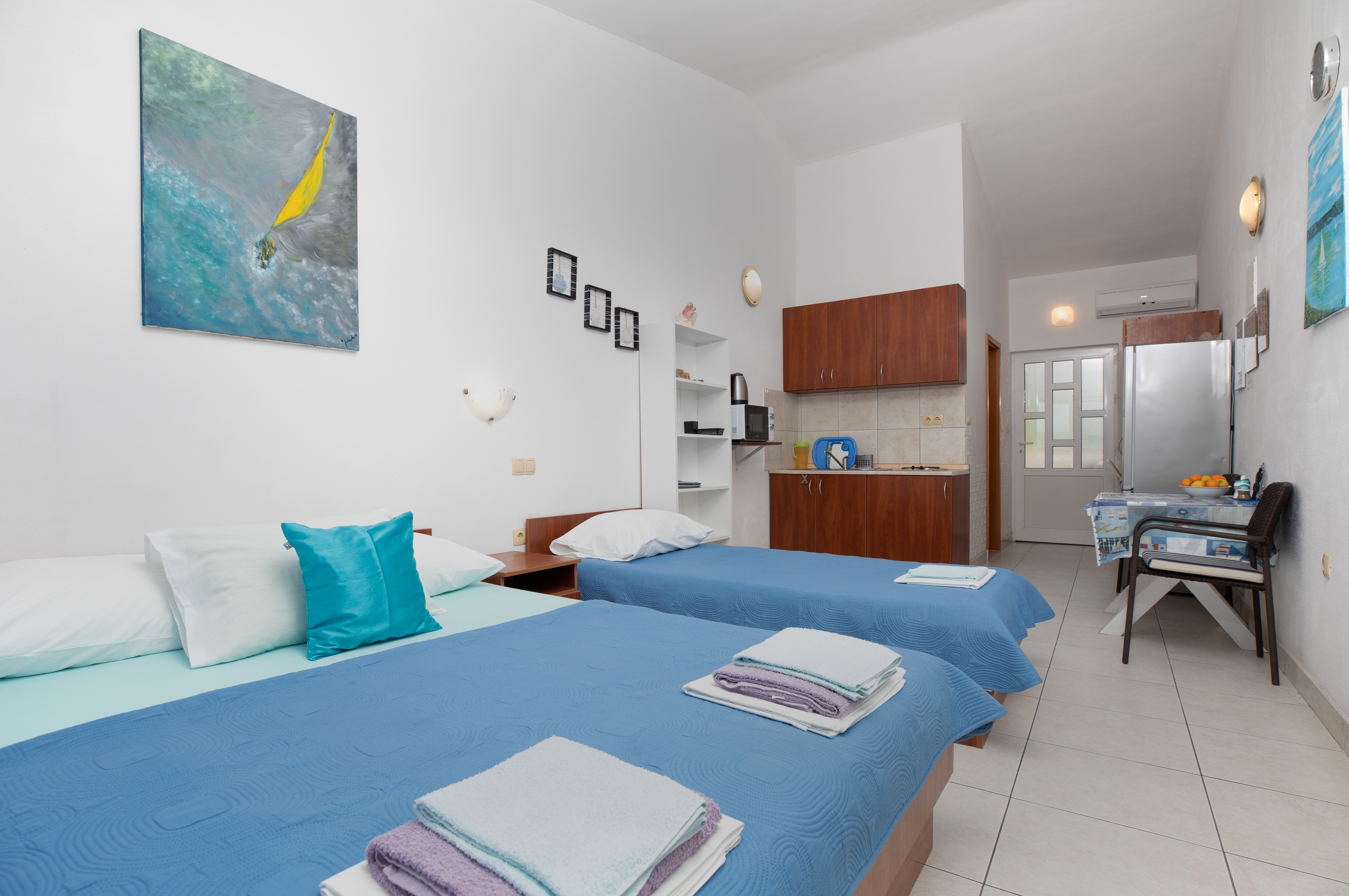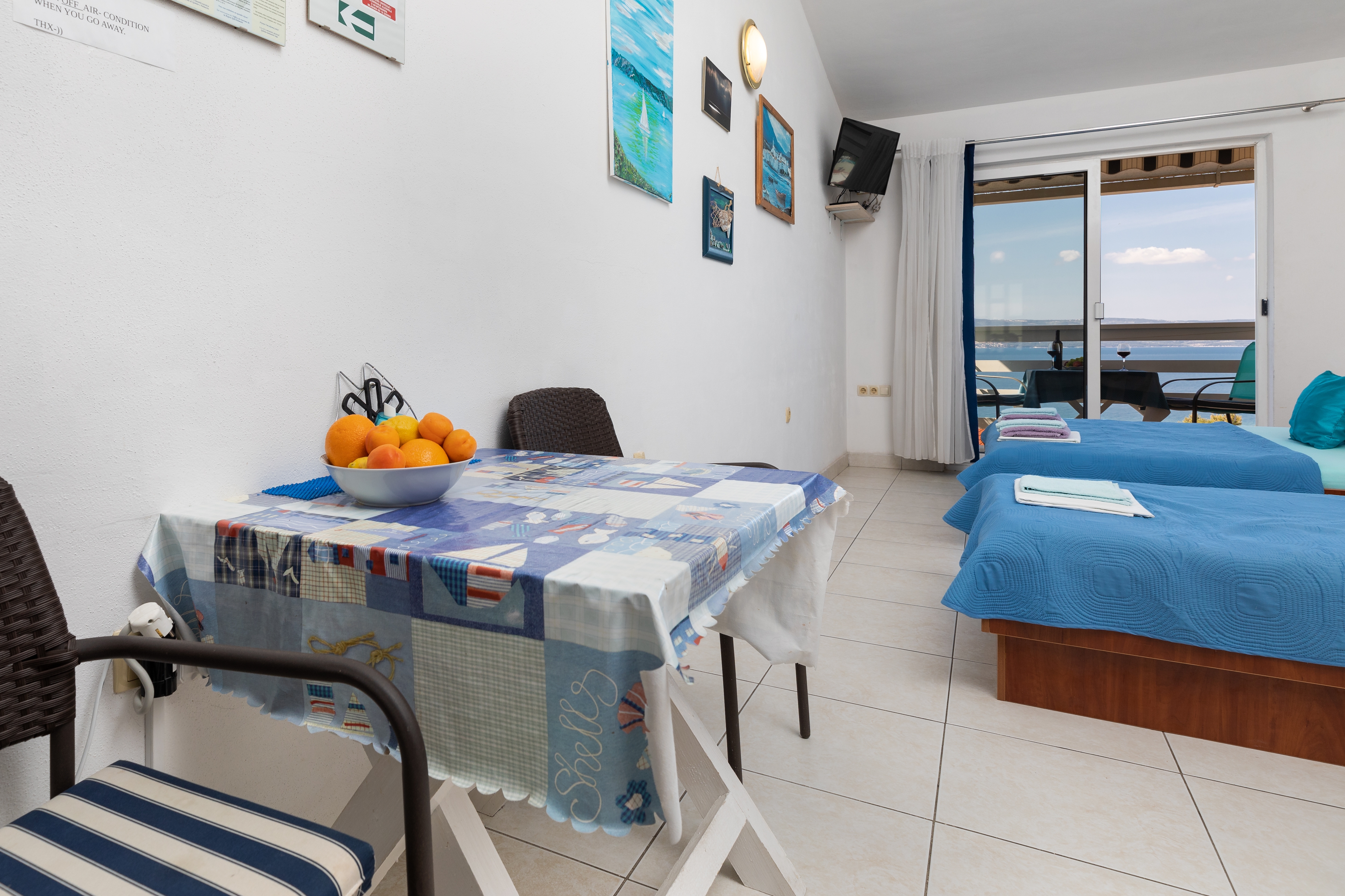 Studio flat can accommodate 3 guests. Beds are situated in 1 sleeping rooms, within 23m2. Guests can use a private balcony to enjoy the warm summer evenings. The studio offers the sea view. Food can be prepared using barbecue which is shared with other guests too. INCLUDED IN THE PRICE: tourist tax, final cleaning, air-conditioning, parking, internet, ironing board, hairdryer. OBLIGATORY ADDITIONAL COSTS: short stay fee (surcharge depending on a number of booked nights: 30% - 1, 20% - 2, 10% - 3). OPTIONAL ADDITIONAL COSTS: additional bed (€10.00 per night). The availability of additional services for your chosen dates of stay, as well as their prices (if none are listed) must be checked ahead of time. Any additional services not shown in the price calculation are payable directly to the property owner and only if used by the visitor. Discounts to the base price: free day 14=13 (for reservations of 14 or more days you get one free day for the stay until 31122026).