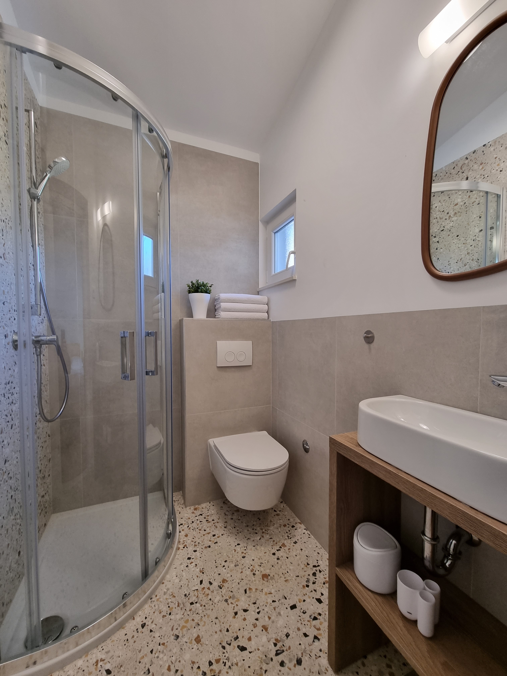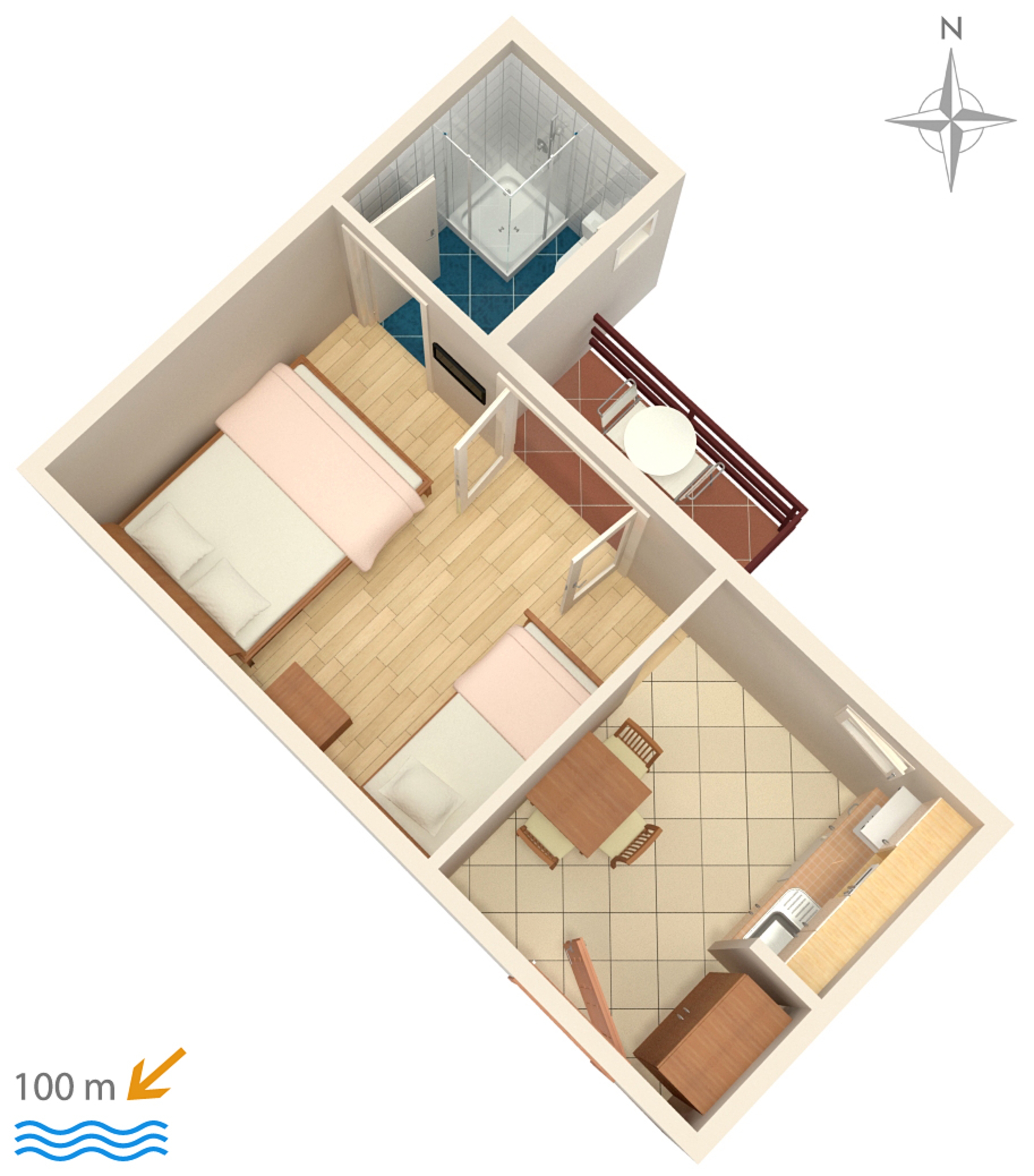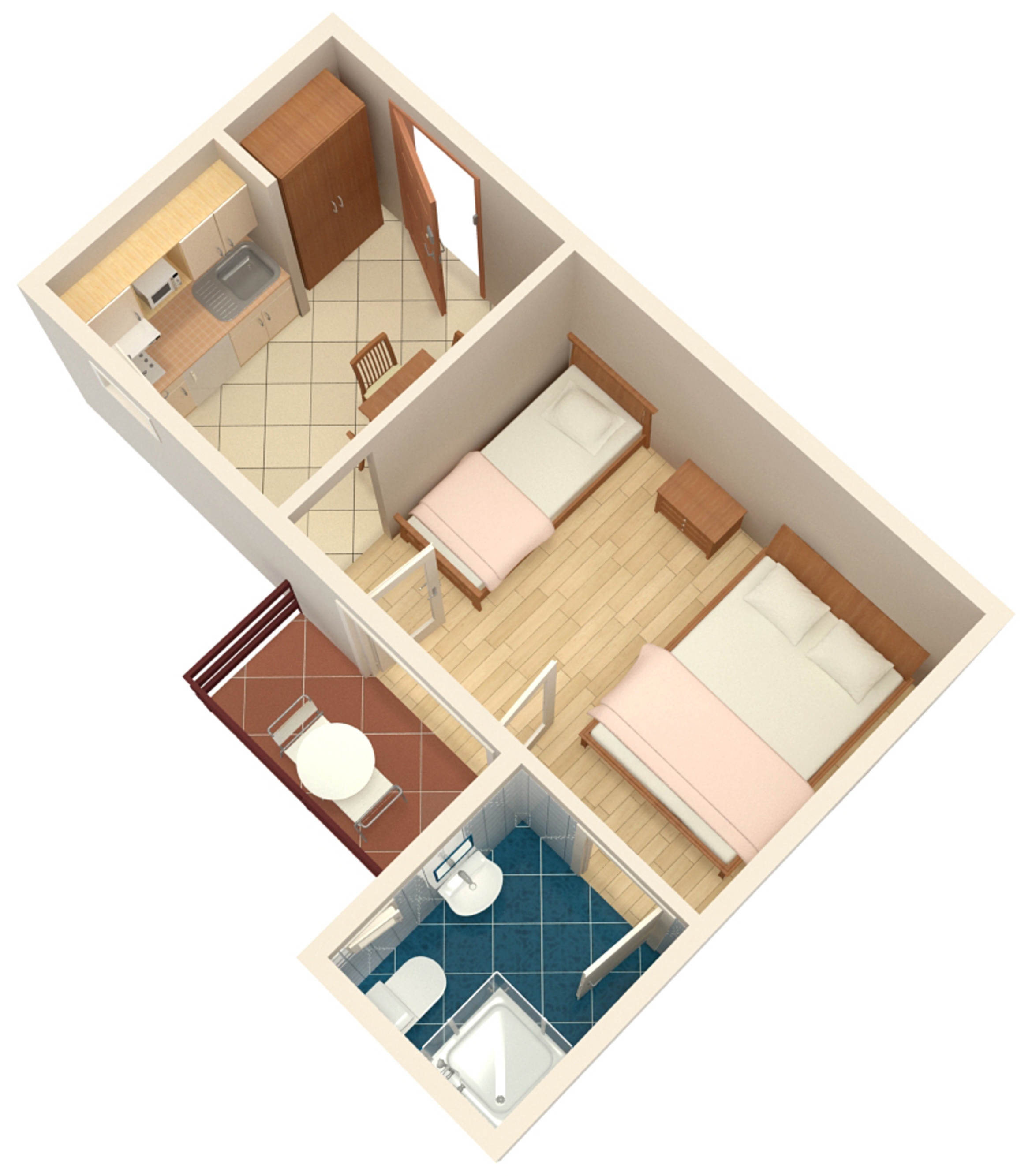 Studio flat can accommodate 3 guests. Beds are situated in 1 sleeping rooms, within 21m2. Guests can use a private balcony to enjoy the warm summer evenings. Food can be prepared using barbecue which is shared with other guests too. INCLUDED IN THE PRICE: tourist tax, final cleaning, air-conditioning, parking, internet. OBLIGATORY ADDITIONAL COSTS: short stay fee (surcharge depending on a number of booked nights: 30% - 1, 20% - 2, 10% - 3). The availability of additional services for your chosen dates of stay, as well as their prices (if none are listed) must be checked ahead of time. Any additional services not shown in the price calculation are payable directly to the property owner and only if used by the visitor.