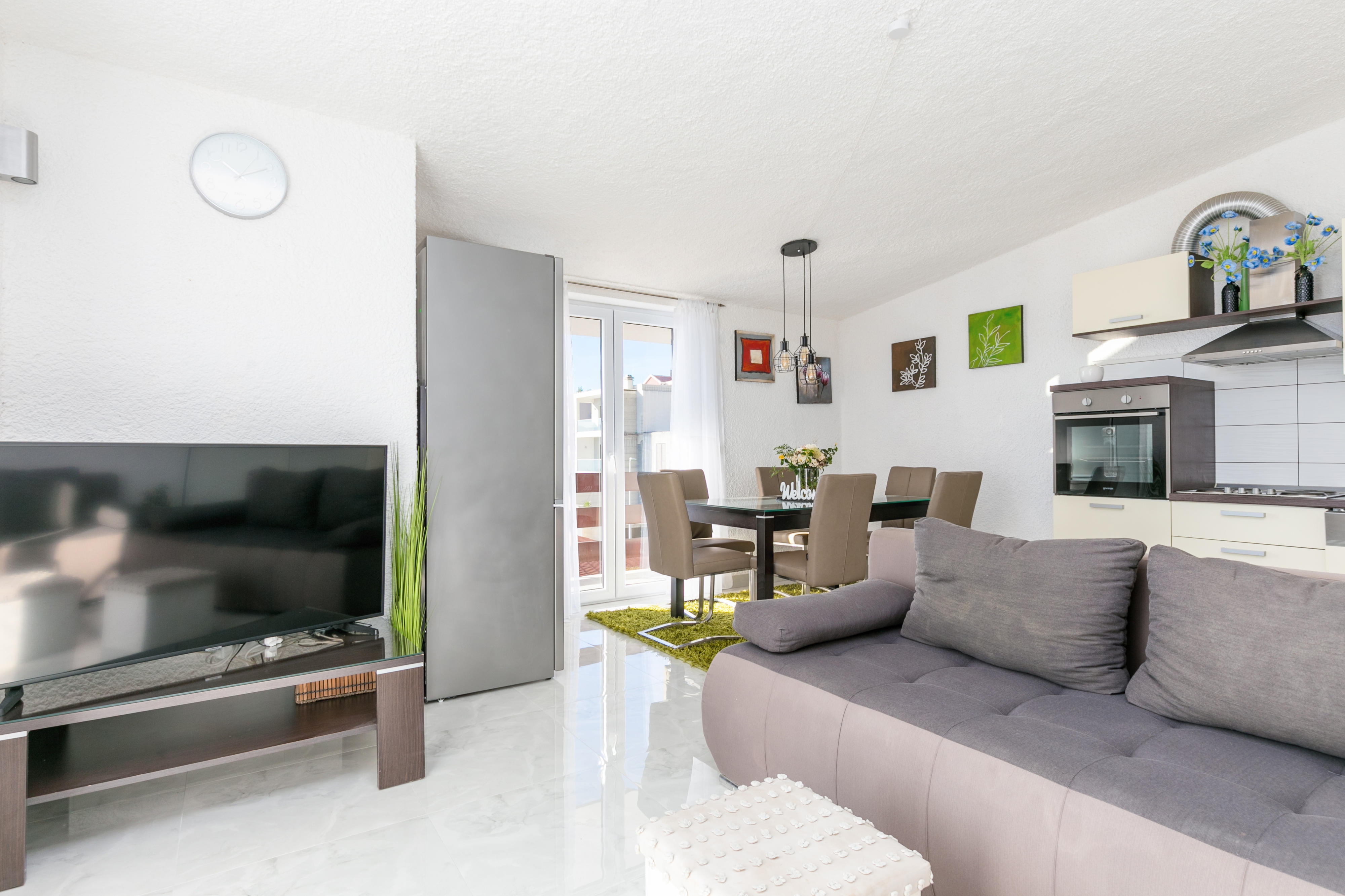 Apartment can accommodate 6 guests. Beds are situated in 2 sleeping rooms, but also in the living room, within 63m2. Guests can use a private terrace to enjoy the warm summer evenings. The apartment offers the sea view. Food can be prepared using barbecue which is shared with other guests too. This accommodation unit welcomes pets at no additional costs. INCLUDED IN THE PRICE: tourist tax, final cleaning, air-conditioning, parking, internet, pets, baby cot, iron, ironing board, hairdryer. The availability of additional services for your chosen dates of stay, as well as their prices (if none are listed) must be checked ahead of time. Any additional services not shown in the price calculation are payable directly to the property owner and only if used by the visitor. Discounts to the base price: free day 14=13 (for reservations of 14 or more days you get one free day for the stay until 31122026).