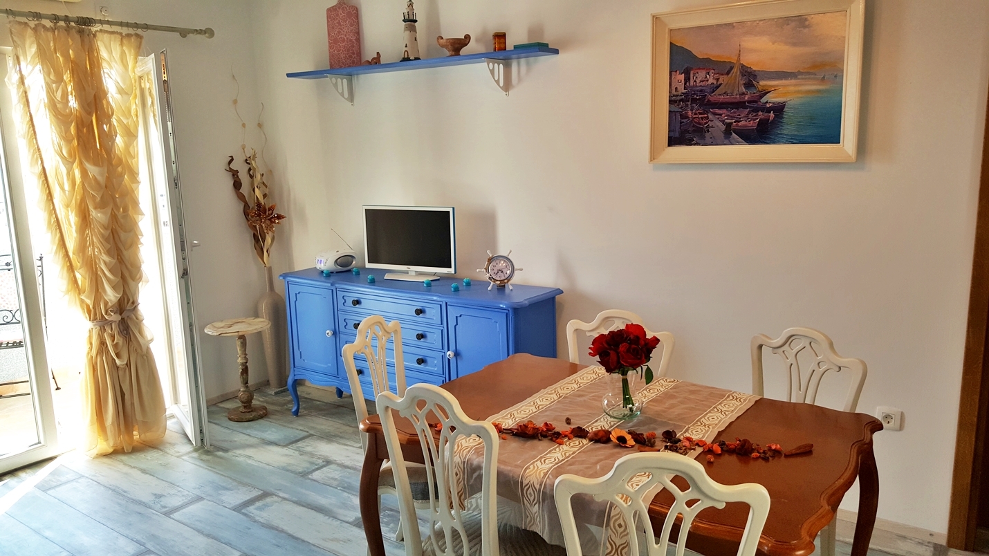 Apartment can accommodate 5 guests. Beds are situated in 2 sleeping rooms, within 55m2. Guests can use a private terrace to enjoy the warm summer evenings. The apartment offers the sea view. INCLUDED IN THE PRICE: tourist tax, final cleaning, air-conditioning, parking, internet, baby cot, iron, ironing board, hairdryer. OBLIGATORY ADDITIONAL COSTS: short stay fee (surcharge depending on a number of booked nights: 30% - 1, 20% - 2, 10% - 3). The availability of additional services for your chosen dates of stay, as well as their prices (if none are listed) must be checked ahead of time. Any additional services not shown in the price calculation are payable directly to the property owner and only if used by the visitor. Discounts to the base price: free day 14=13 (for reservations of 14 or more days you get one free day for the stay until 31122026).