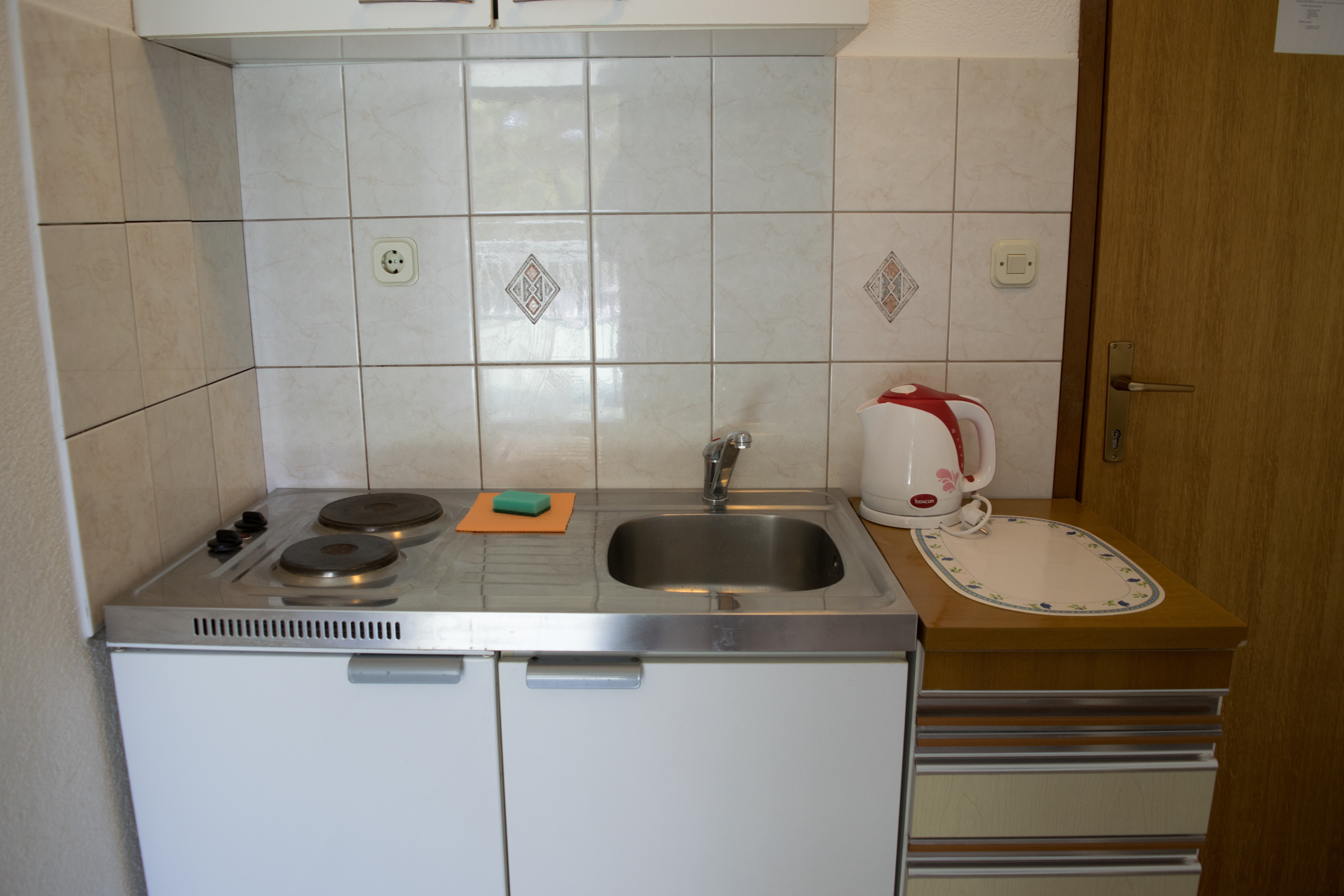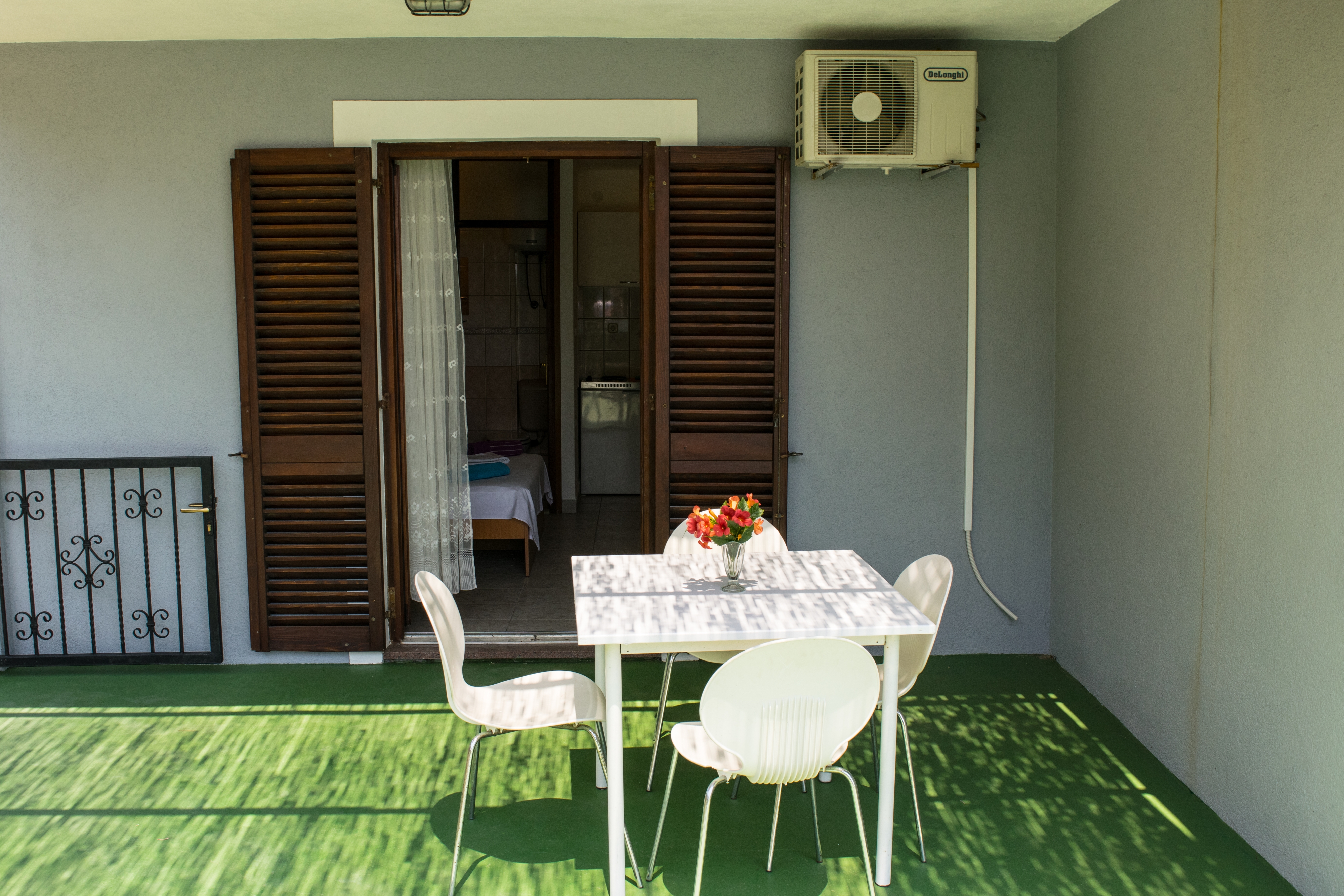 Studio flat can accommodate 3 guests. Beds are situated in 1 sleeping rooms, within 19m2. Guests can use a private terrace to enjoy the warm summer evenings. The studio offers the sea view. Food can be prepared using barbecue which is shared with other guests too. This accommodation unit welcomes pets at an additional charge. INCLUDED IN THE PRICE: tourist tax, final cleaning, air-conditioning, parking, internet, additional bed, iron, ironing board. OBLIGATORY ADDITIONAL COSTS: short stay fee (surcharge depending on a number of booked nights: 30% - 1, 20% - 2, 10% - 3). OPTIONAL ADDITIONAL COSTS: pets (€5.00 per night). The availability of additional services for your chosen dates of stay, as well as their prices (if none are listed) must be checked ahead of time. Any additional services not shown in the price calculation are payable directly to the property owner and only if used by the visitor.