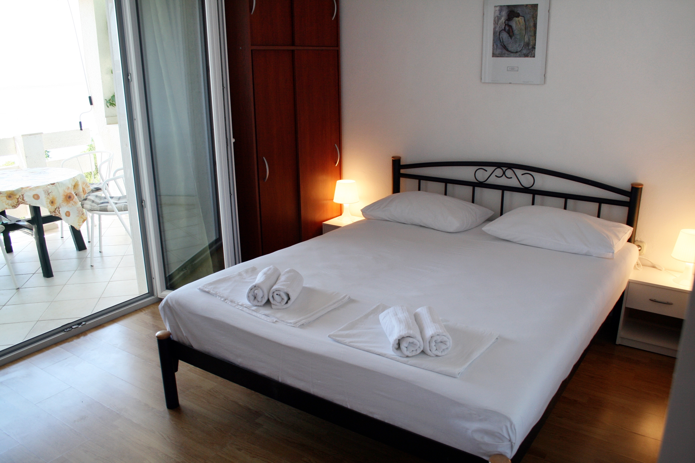 Apartment can accommodate 4 guests. Beds are situated in 2 sleeping rooms, within 33m2. Guests can use a private terrace to enjoy the warm summer evenings. The apartment offers the sea view. Food can be prepared using barbecue which is shared with other guests too. This accommodation unit welcomes pets at an additional charge. INCLUDED IN THE PRICE: tourist tax, final cleaning, parking, garage, internet, baby cot. OBLIGATORY ADDITIONAL COSTS: short stay fee (surcharge depending on a number of booked nights: 30% - 1, 20% - 2, 10% - 3). OPTIONAL ADDITIONAL COSTS: air-conditioning (€0.50 per hour), pets (€10.00 per night). The availability of additional services for your chosen dates of stay, as well as their prices (if none are listed) must be checked ahead of time. Any additional services not shown in the price calculation are payable directly to the property owner and only if used by the visitor.