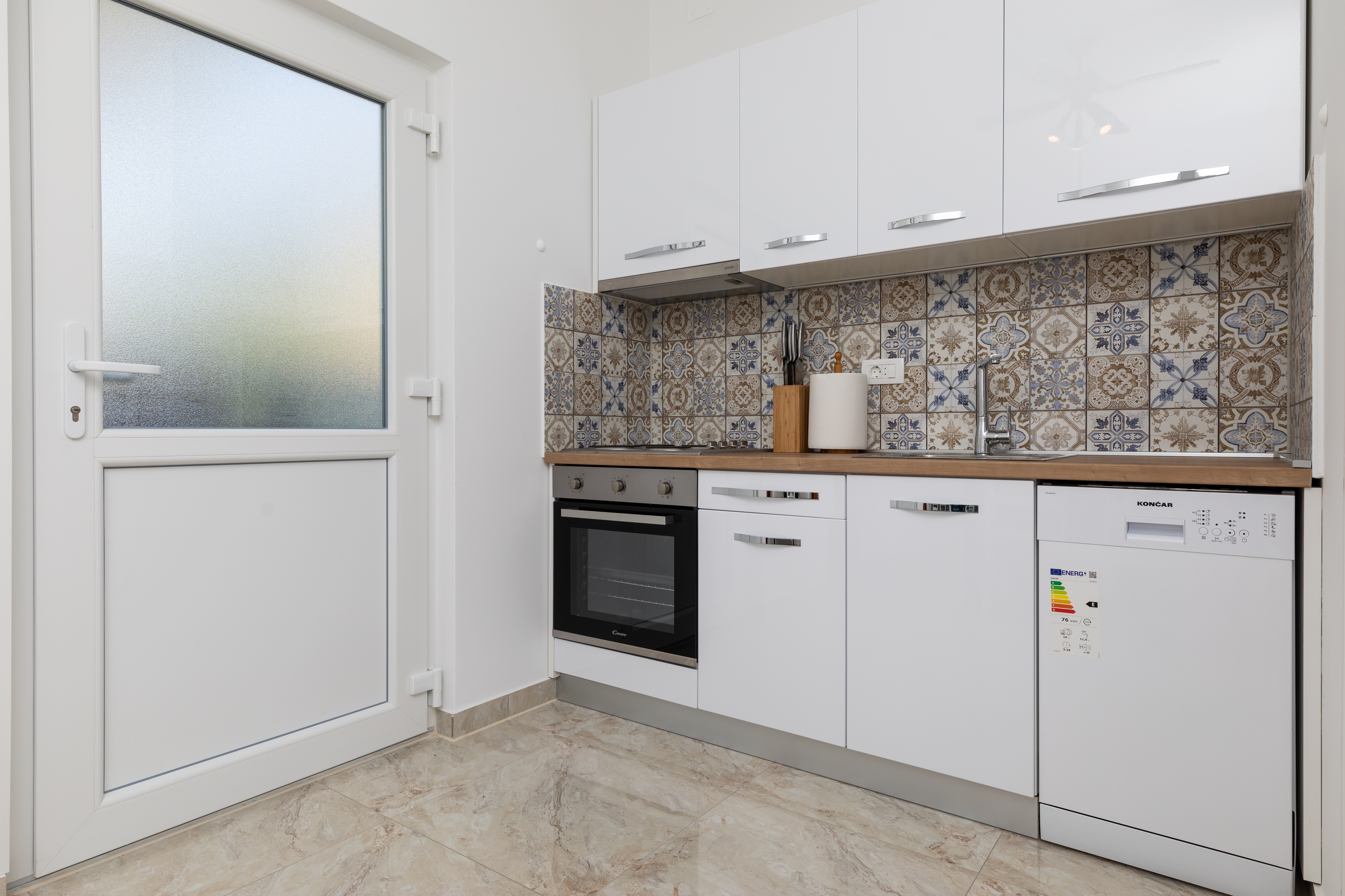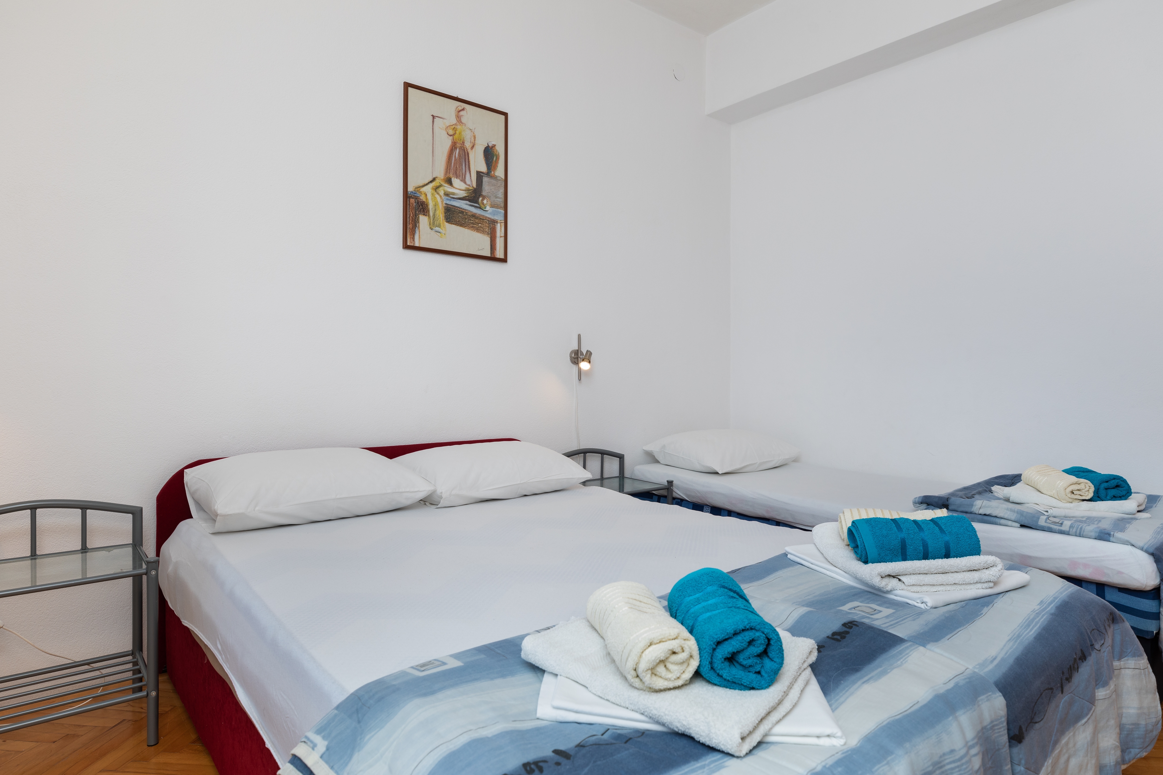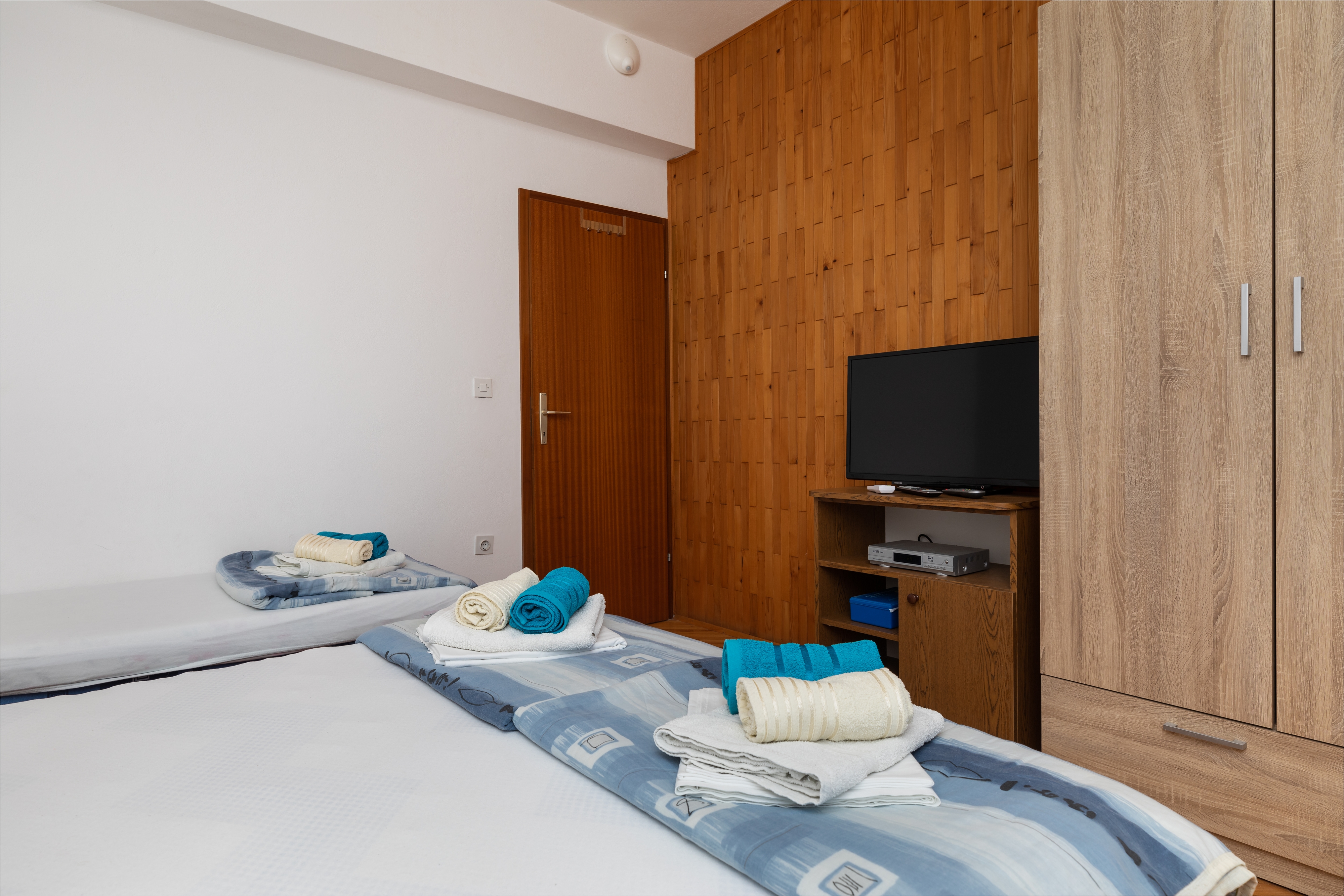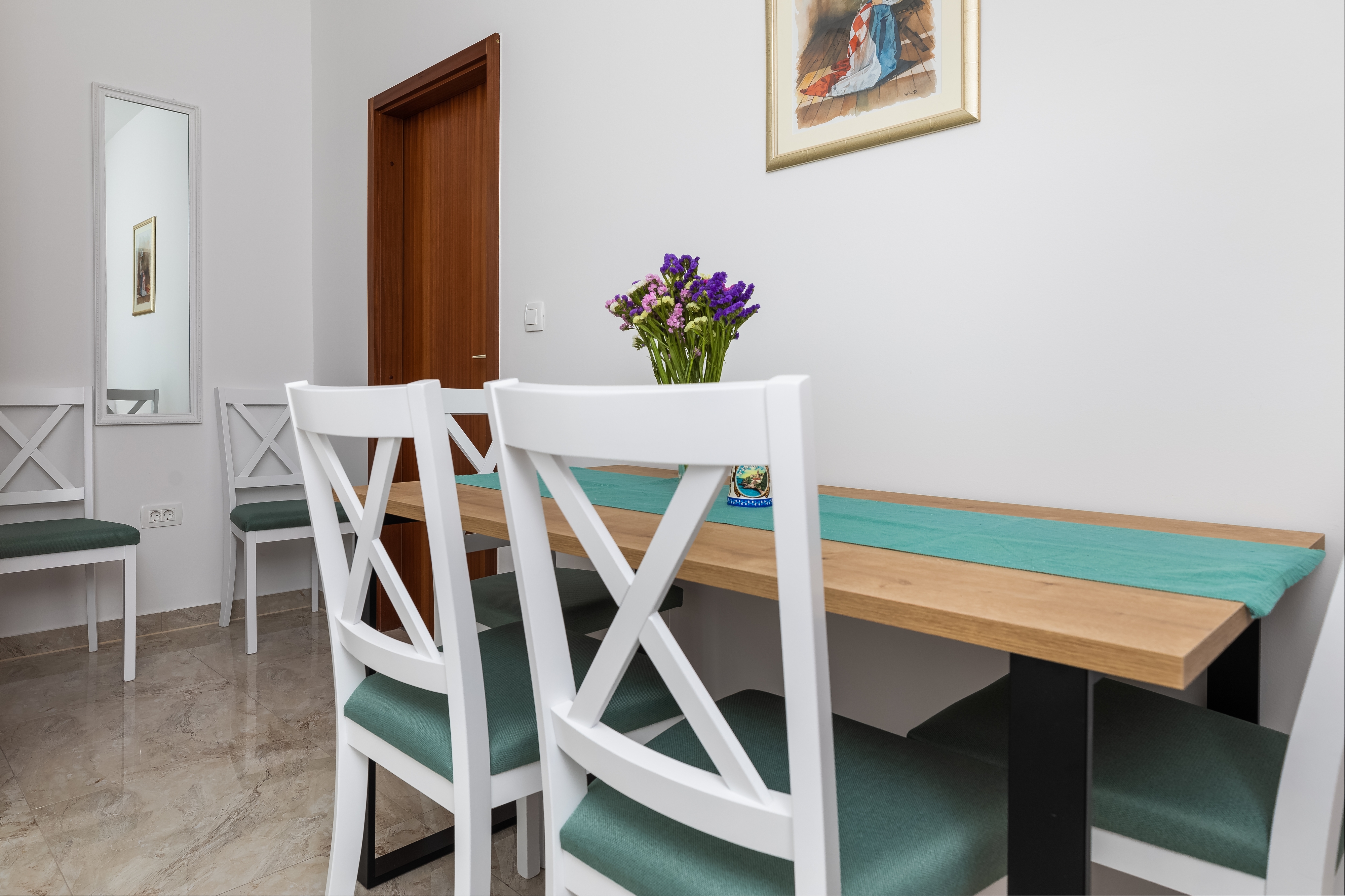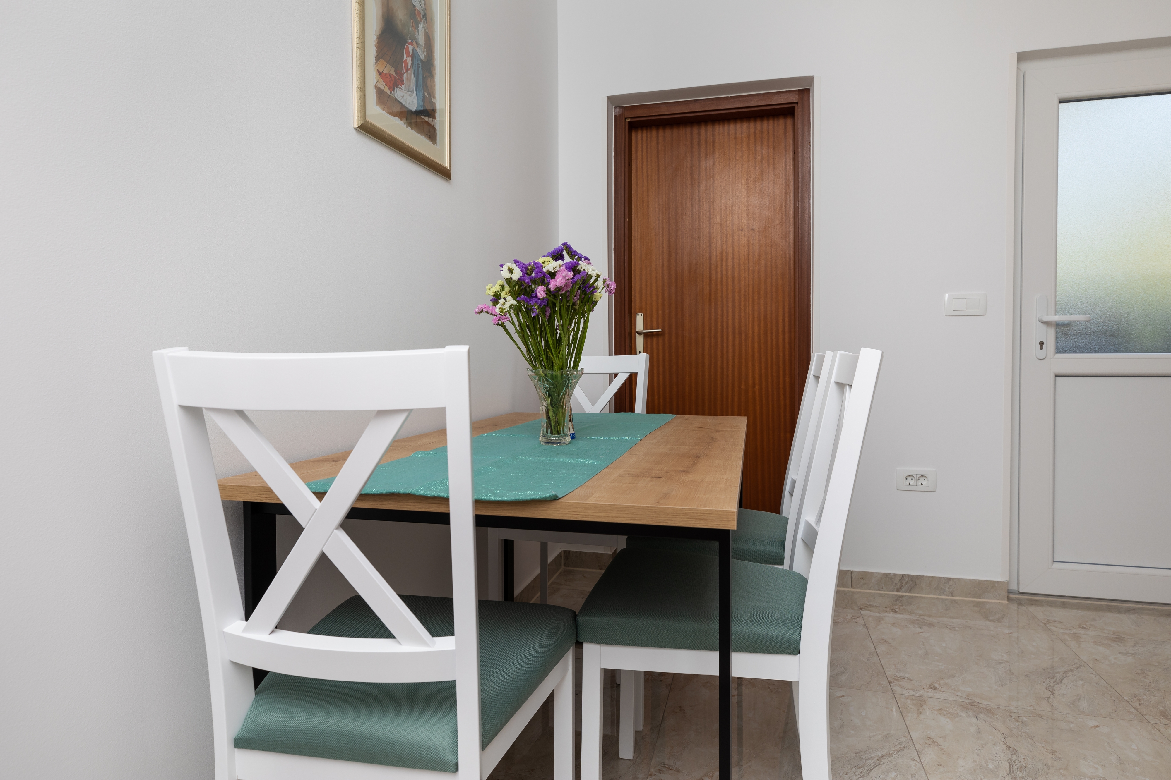 Apartment can accommodate 6 guests. Beds are situated in 2 sleeping rooms, within 38m2. Guests can use a private terrace to enjoy the warm summer evenings. The apartment offers the sea view. Food can be prepared using barbecue which is shared with other guests too. This accommodation unit welcomes pets at an additional charge. INCLUDED IN THE PRICE: tourist tax, final cleaning, air-conditioning, parking, internet. OBLIGATORY ADDITIONAL COSTS: short stay fee (surcharge depending on a number of booked nights: 30% - 1, 20% - 2, 10% - 3). OPTIONAL ADDITIONAL COSTS: pets (€8.00 per night). The availability of additional services for your chosen dates of stay, as well as their prices (if none are listed) must be checked ahead of time. Any additional services not shown in the price calculation are payable directly to the property owner and only if used by the visitor.