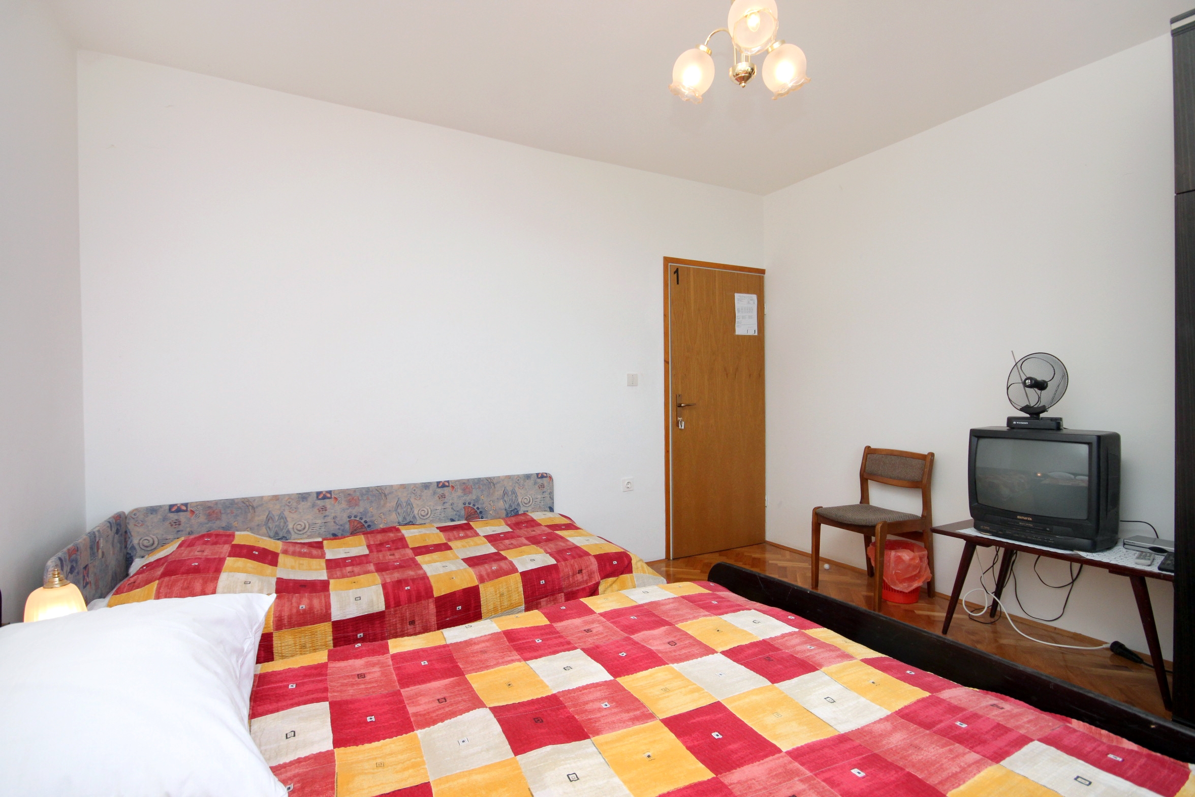 Room can accommodate 2 guests. Beds are situated in 1 sleeping rooms, within 21m2. Use of shared kitchen is possible. Guests can use a private terrace to enjoy the warm summer evenings. The room offers the sea view. Food can be prepared using barbecue which is shared with other guests too. Reserved accommodation unit is a room with its own bathroom and shared kitchen at an additional charge (the price is listed on our website). INCLUDED IN THE PRICE: tourist tax, final cleaning, central heating, parking, internet, baby cot, iron, ironing board, hairdryer, portable barbecue, sunchairs. OBLIGATORY ADDITIONAL COSTS: short stay fee (surcharge depending on a number of booked nights: 30% - 1, 20% - 2, 10% - 3). OPTIONAL ADDITIONAL COSTS: breakfast (€7.00, a 50% discount for children aged 4 to 12 years, Children up to age 4 free of charge), air-conditioning (€7.00 per night), shared kitchen (€5.00 per night), laundry (€5.00 washing). The availability of additional services for your chosen dates of stay, as well as their prices (if none are listed) must be checked ahead of time. Any additional services not shown in the price calculation are payable directly to the property owner and only if used by the visitor.