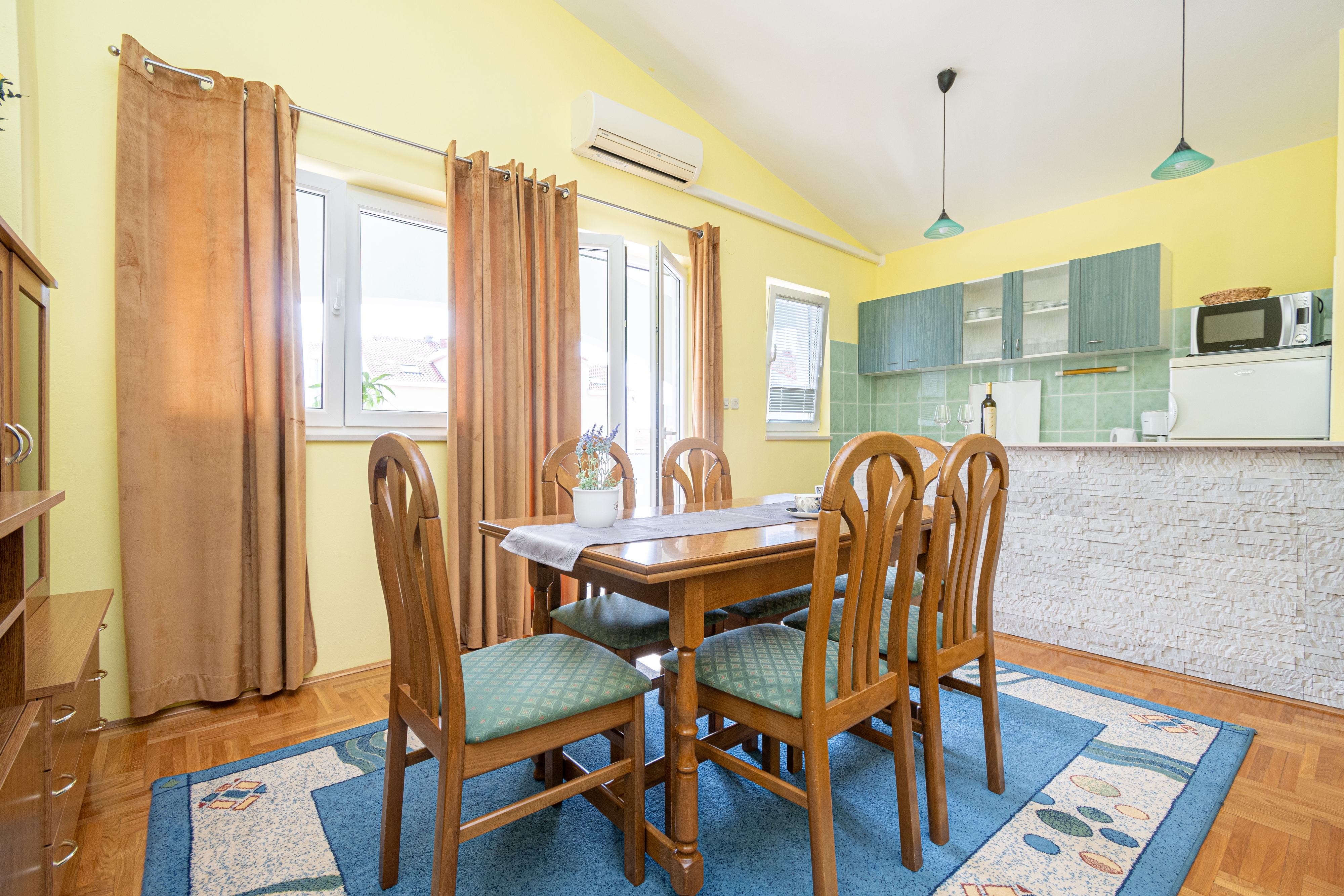 Apartment can accommodate 6 guests. Beds are situated in 2 sleeping rooms, but also in the living room, within 49m2. Guests can use a private terrace to enjoy the warm summer evenings. For full enjoyment and relaxation there is a private barbecue for this accommodation guests only. For the booked accommodation unit the deposit is paid directly to the owner upon check-in (deposit amount is displayed on the website) INCLUDED IN THE PRICE: tourist tax, final cleaning, air-conditioning, parking, internet, iron, ironing board, hairdryer. OBLIGATORY ADDITIONAL COSTS: deposit (ā¬200.00 one-time payment). The availability of additional services for your chosen dates of stay, as well as their prices (if none are listed) must be checked ahead of time. Any additional services not shown in the price calculation are payable directly to the property owner and only if used by the visitor.