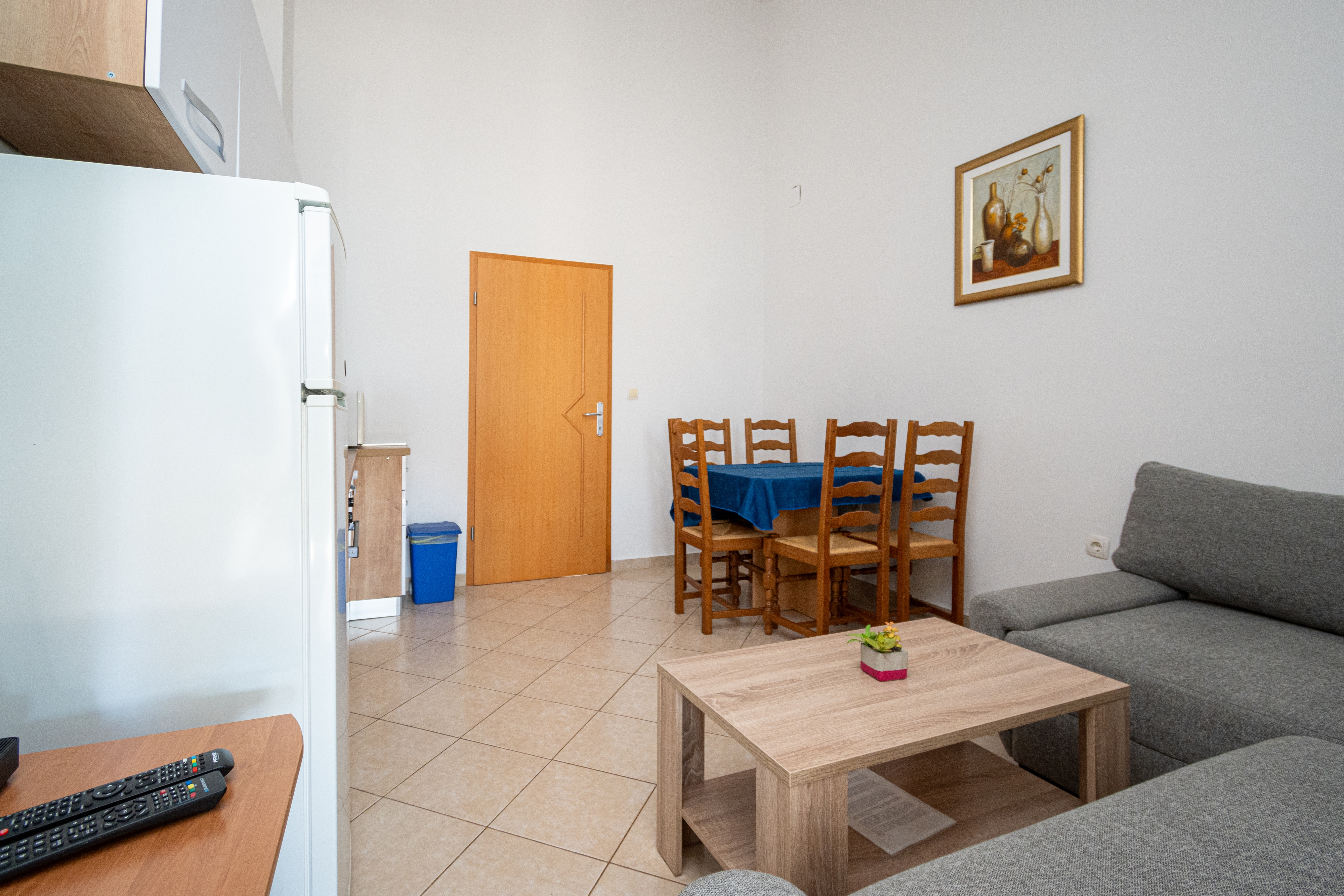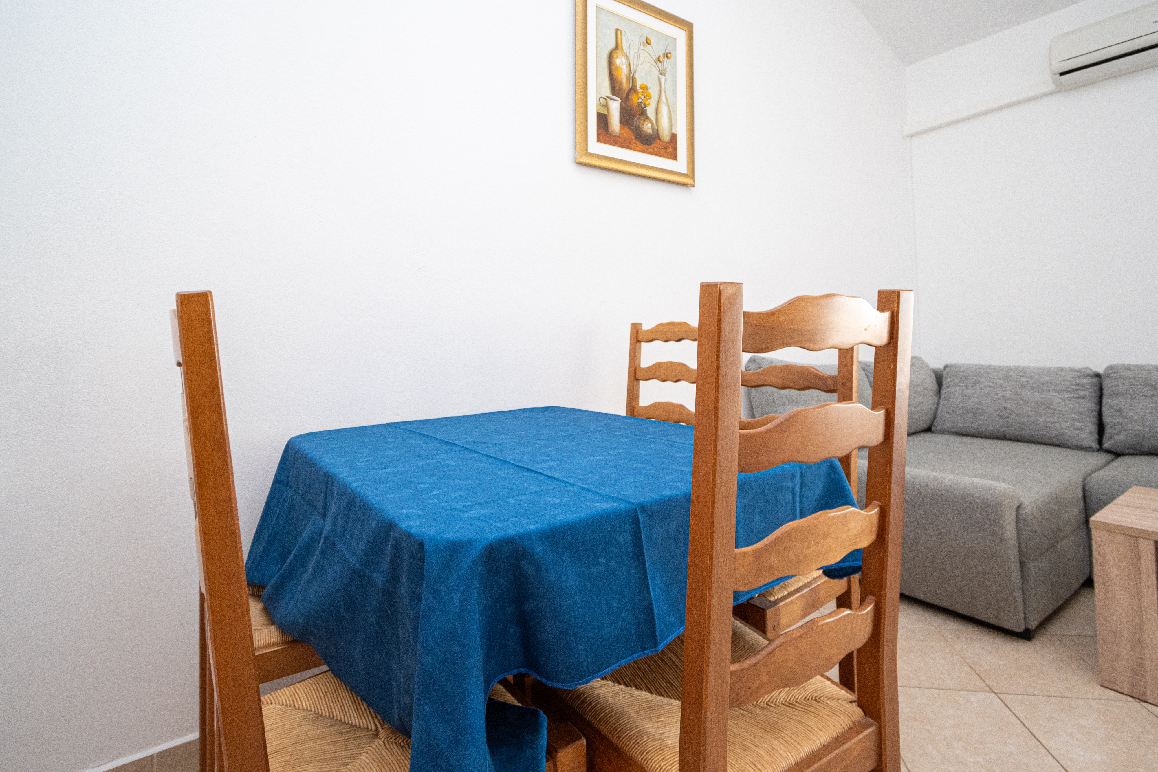 Apartment can accommodate 4 guests. Beds are situated in 2 sleeping rooms, within 38m2. Guests can use a private terrace to enjoy the warm summer evenings. The apartment offers the sea view. Food can be prepared using barbecue which is shared with other guests too. This accommodation unit welcomes pets at an additional charge. INCLUDED IN THE PRICE: tourist tax, final cleaning, air-conditioning, parking, internet, laundry, boat mooring, baby cot, hairdryer, sunshade, sunchairs. OPTIONAL ADDITIONAL COSTS: pets (ā¬15.00 per night). The availability of additional services for your chosen dates of stay, as well as their prices (if none are listed) must be checked ahead of time. Any additional services not shown in the price calculation are payable directly to the property owner and only if used by the visitor. Discounts to the base price: free day 14=13 (for reservations of 14 or more days you get one free day for the stay until 31122026).