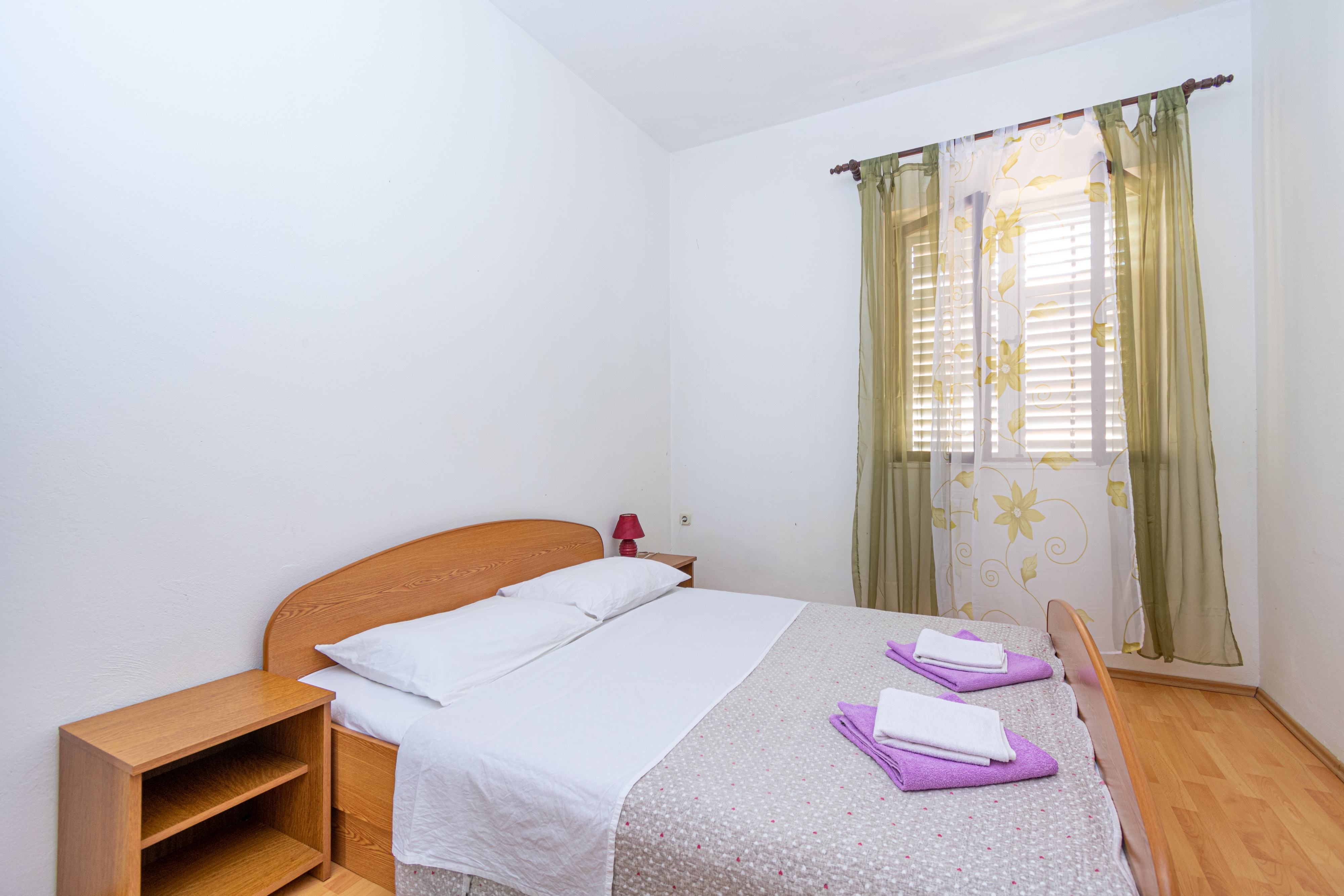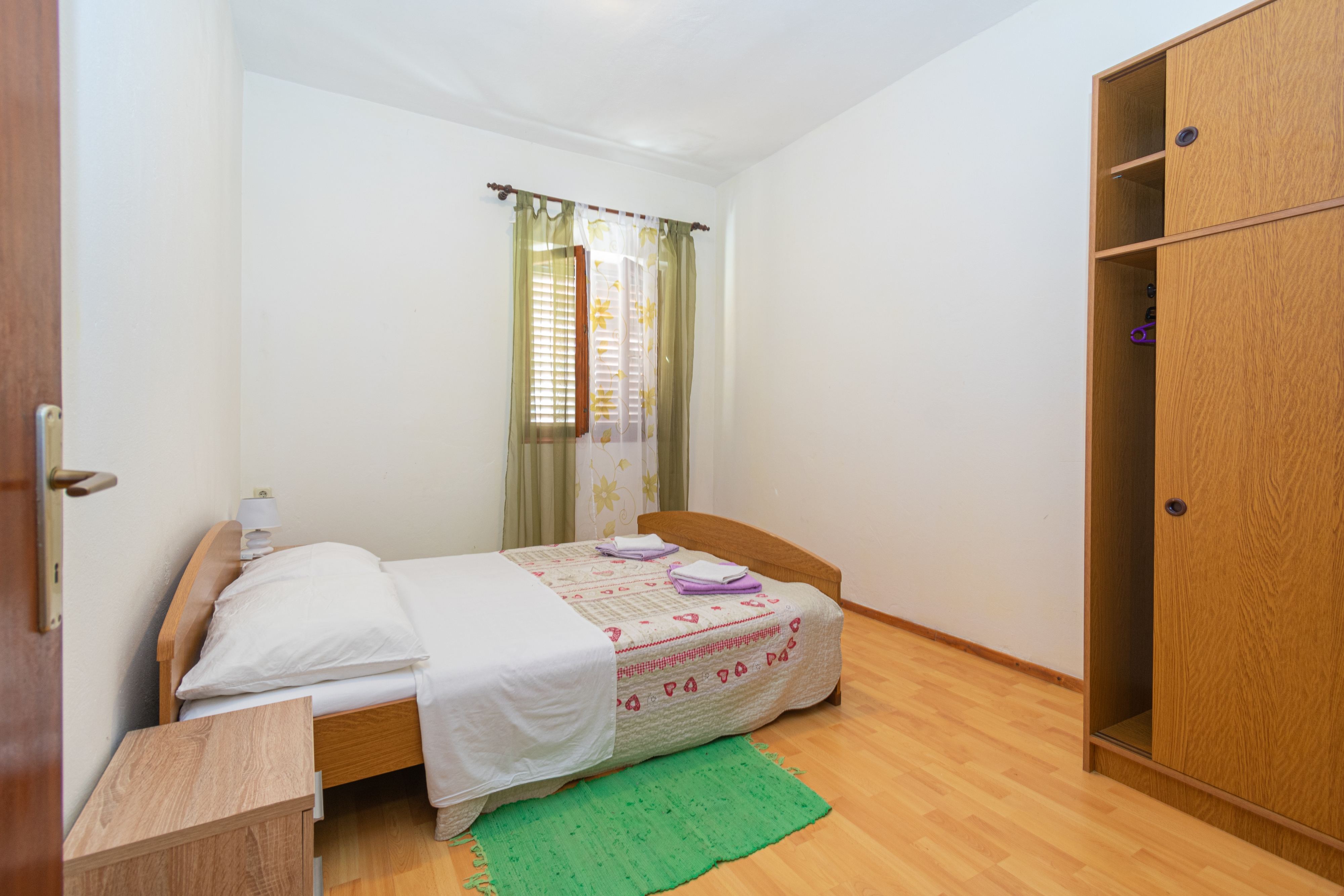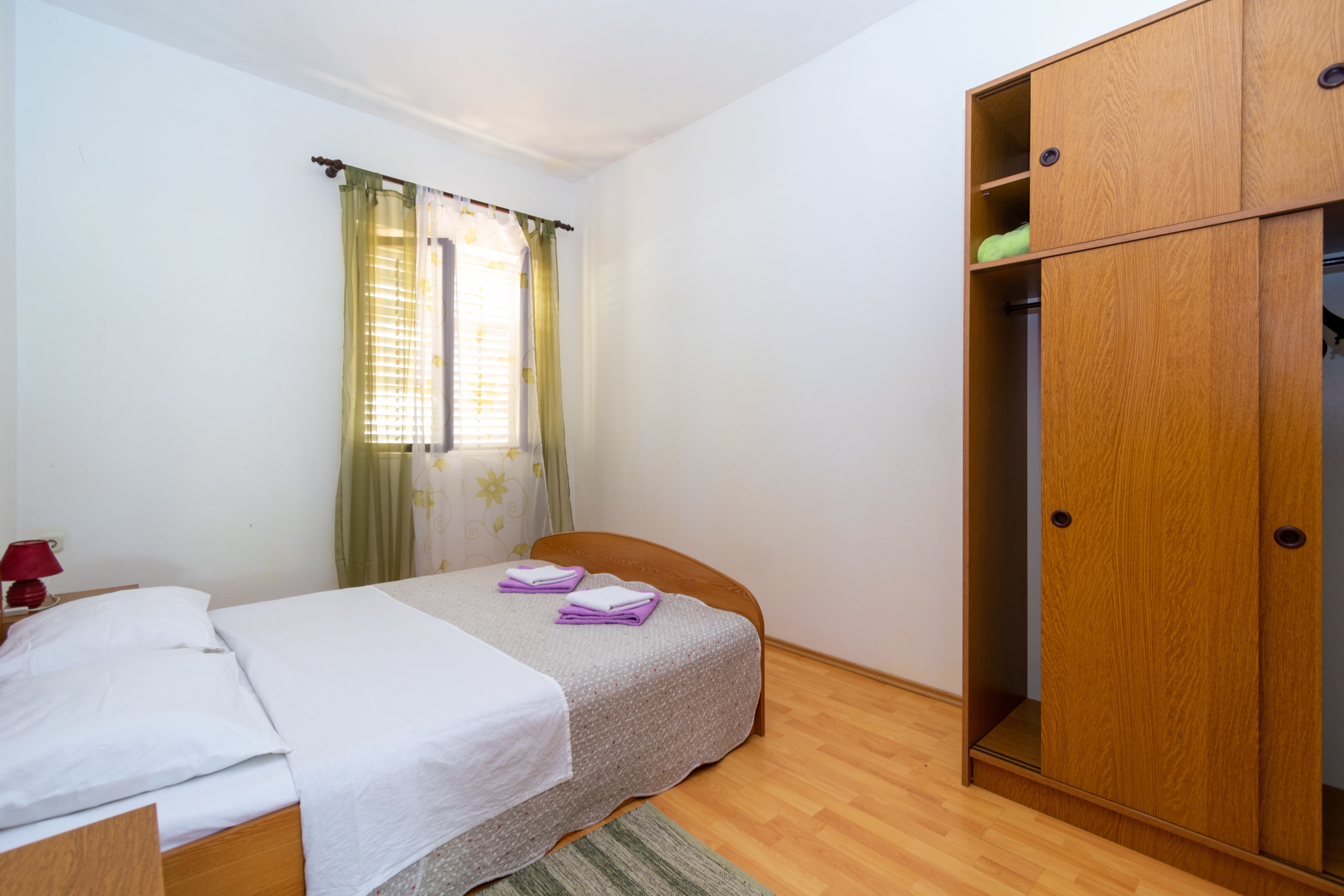 Apartment can accommodate 5 guests. Beds are situated in 2 sleeping rooms, but also in the dining room, within 53m2. Guests can use a private terrace to enjoy the warm summer evenings. The apartment offers the sea view. Food can be prepared using barbecue which is shared with other guests too. This accommodation unit welcomes pets at no additional costs. INCLUDED IN THE PRICE: tourist tax, final cleaning, air-conditioning, parking, internet, pets. The availability of additional services for your chosen dates of stay, as well as their prices (if none are listed) must be checked ahead of time. Any additional services not shown in the price calculation are payable directly to the property owner and only if used by the visitor.