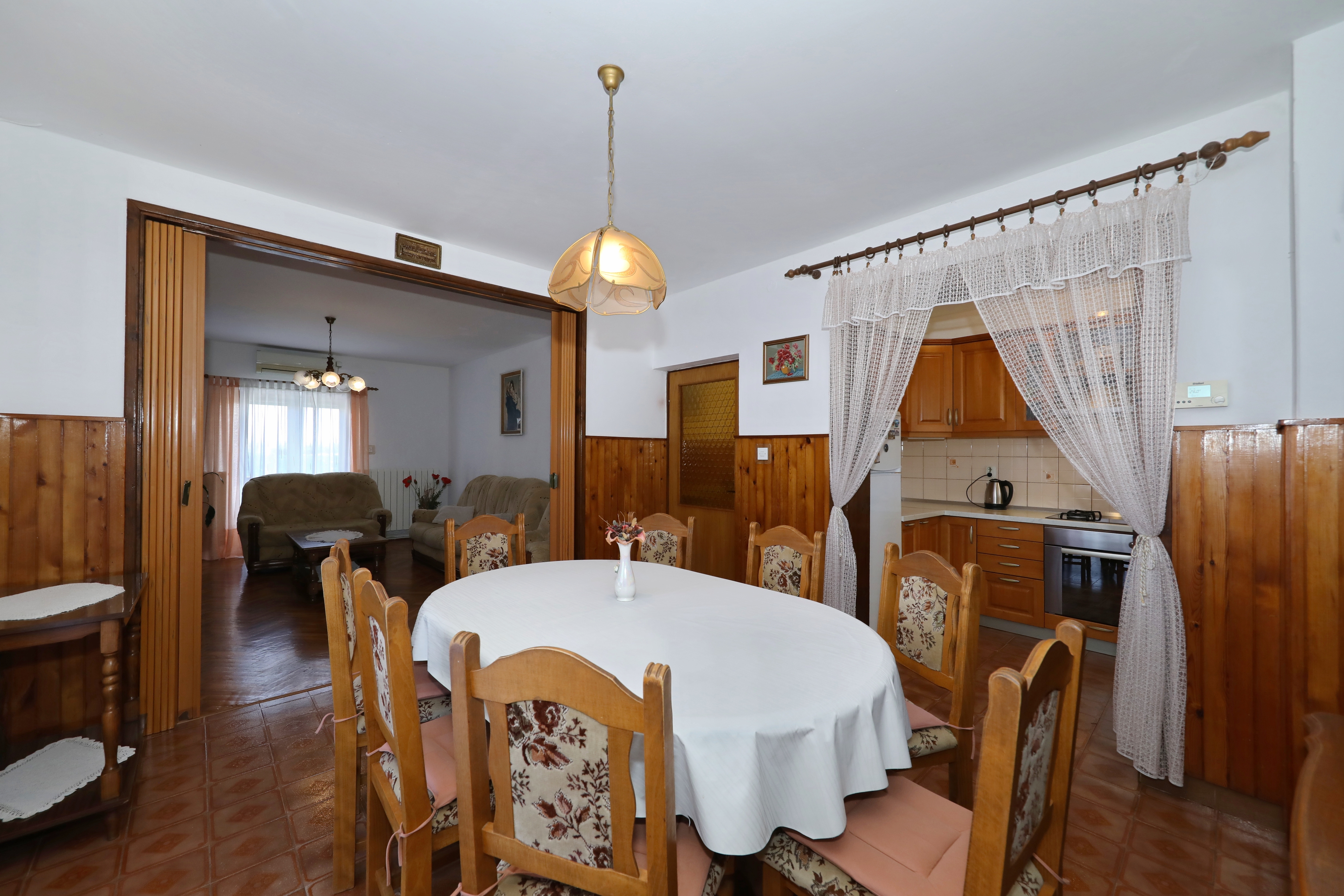 Apartment can accommodate 7 guests. Beds are situated in 2 sleeping rooms, but also in the living room, within 76m2. Guests can use a private terrace to enjoy the warm summer evenings. The apartment offers the sea view. Food can be prepared using barbecue which is shared with other guests too. This accommodation unit welcomes pets at an additional charge. INCLUDED IN THE PRICE: tourist tax, final cleaning, air-conditioning, parking, internet, iron, ironing board, portable barbecue. OBLIGATORY ADDITIONAL COSTS: short stay fee (surcharge depending on a number of booked nights: 30% - 1, 20% - 2, 10% - 3). OPTIONAL ADDITIONAL COSTS: laundry (€10.00 washing), boat mooring (€5.00 per night), pets (€10.00 per night). The availability of additional services for your chosen dates of stay, as well as their prices (if none are listed) must be checked ahead of time. Any additional services not shown in the price calculation are payable directly to the property owner and only if used by the visitor.