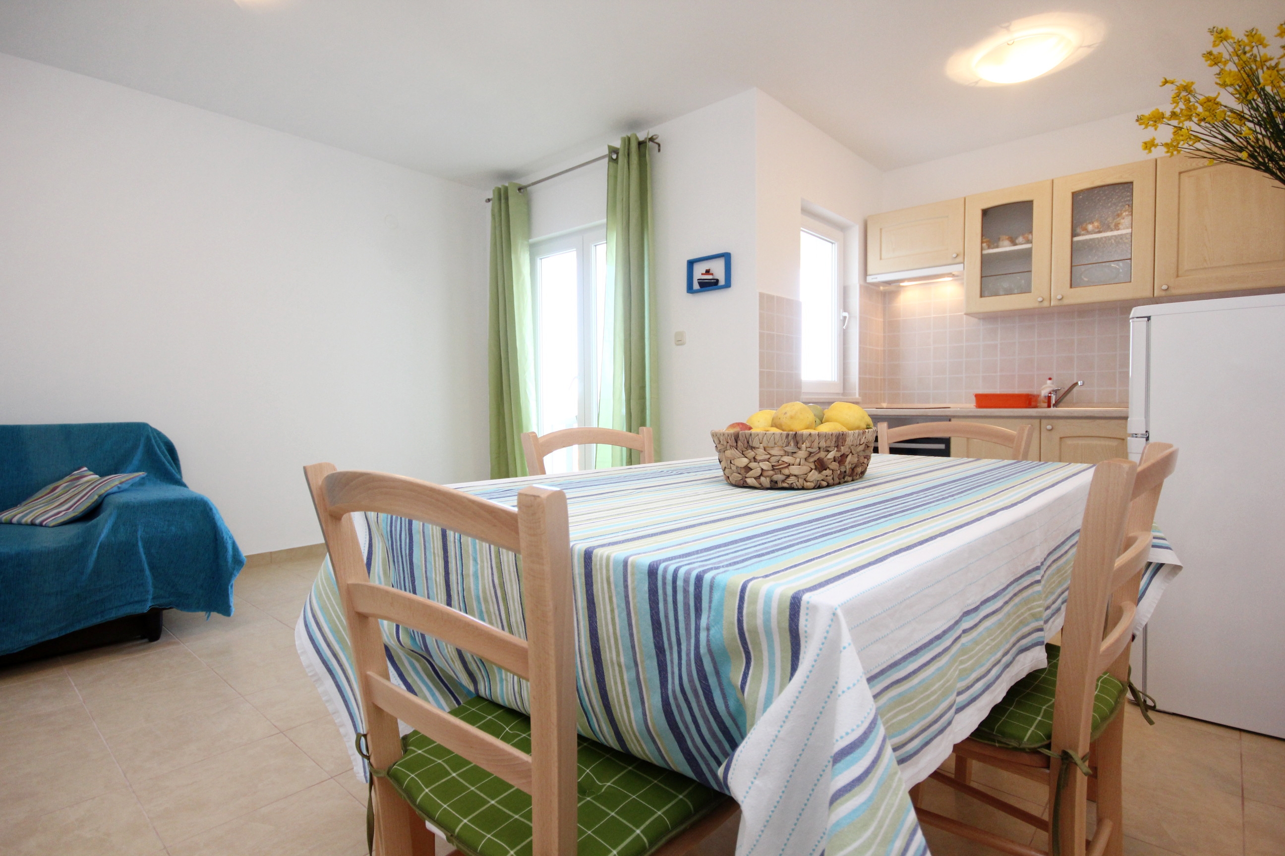 Apartment can accommodate 4 guests. Beds are situated in 1 sleeping rooms, but also in the living room, within 42m2. Guests can use a private terrace to enjoy the warm summer evenings. The apartment offers the sea view. Food can be prepared using barbecue which is shared with other guests too. This accommodation unit welcomes pets at no additional costs. INCLUDED IN THE PRICE: tourist tax, final cleaning, air-conditioning, parking, internet, laundry, pets, baby cot, iron, ironing board, hairdryer, portable barbecue. The availability of additional services for your chosen dates of stay, as well as their prices (if none are listed) must be checked ahead of time. Any additional services not shown in the price calculation are payable directly to the property owner and only if used by the visitor.