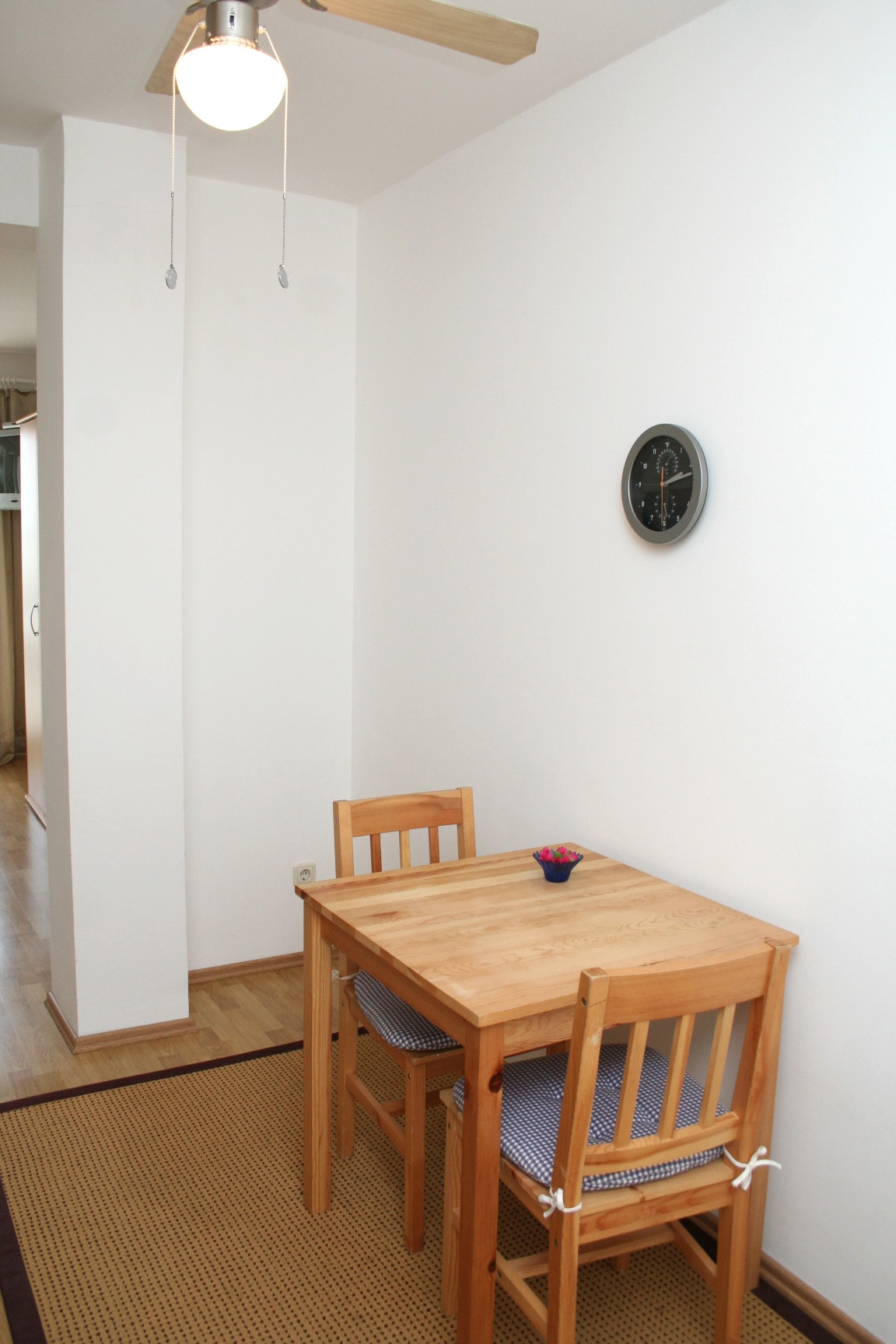 Studio flat can accommodate 3 guests. Beds are situated in 1 sleeping rooms, but also in the dining room, within 24m2. Guests can use a private terrace to enjoy the warm summer evenings. Food can be prepared using barbecue which is shared with other guests too. INCLUDED IN THE PRICE: tourist tax, final cleaning, parking, internet, baby cot. OBLIGATORY ADDITIONAL COSTS: short stay fee (surcharge depending on a number of booked nights: 30% - 1, 20% - 2, 10% - 3). OPTIONAL ADDITIONAL COSTS: air-conditioning (€5.00 per night). The availability of additional services for your chosen dates of stay, as well as their prices (if none are listed) must be checked ahead of time. Any additional services not shown in the price calculation are payable directly to the property owner and only if used by the visitor.