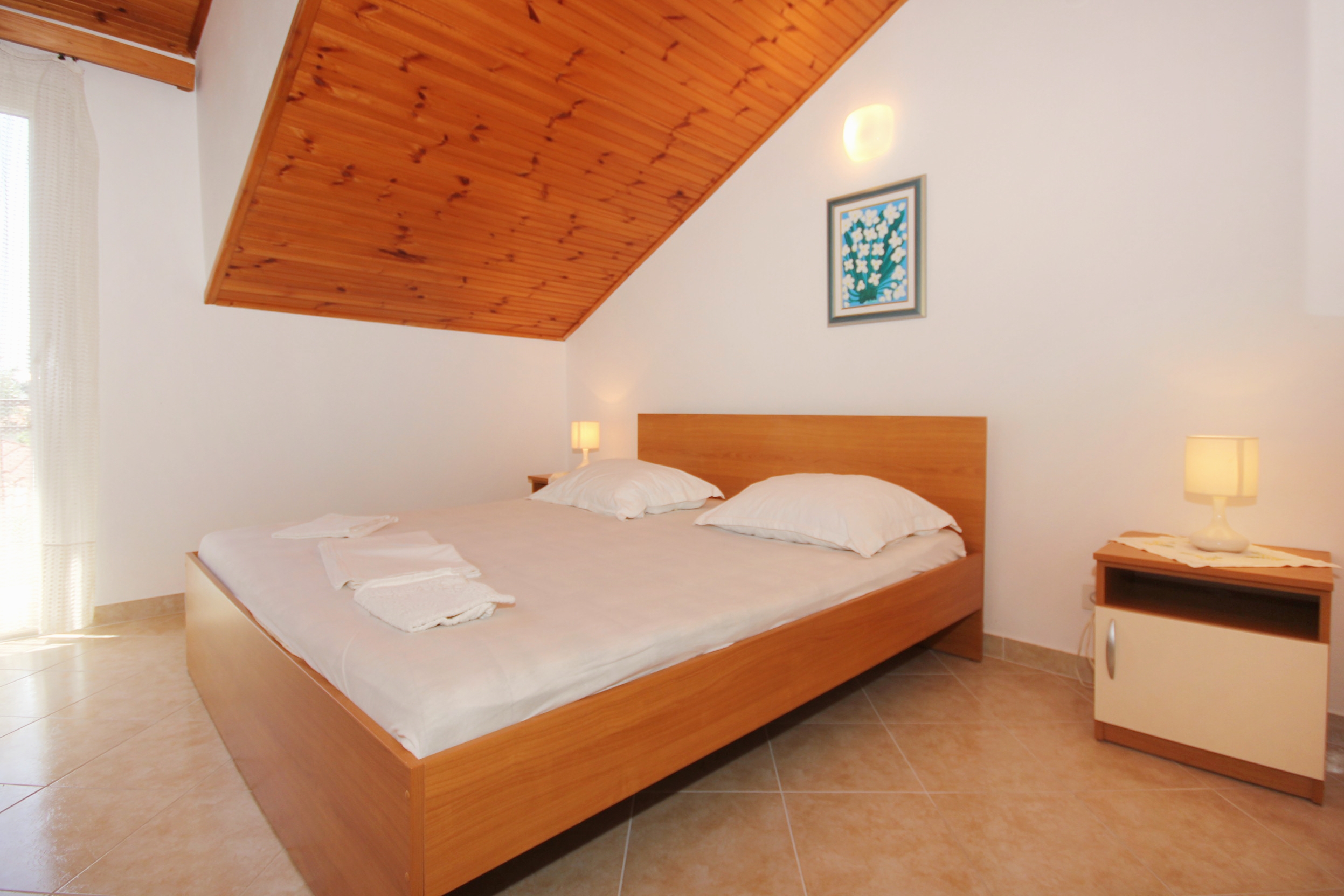 Apartment can accommodate 4 guests. Beds are situated in 2 sleeping rooms, within 63m2. Guests can use a private terrace to enjoy the warm summer evenings. The apartment offers the sea view. Food can be prepared using barbecue which is shared with other guests too. INCLUDED IN THE PRICE: tourist tax, final cleaning, air-conditioning, parking, garage, internet, iron, ironing board, portable barbecue, 2 beds for children (included in the price). OBLIGATORY ADDITIONAL COSTS: short stay fee (surcharge depending on a number of booked nights: 30% - 1, 20% - 2, 10% - 3). The availability of additional services for your chosen dates of stay, as well as their prices (if none are listed) must be checked ahead of time. Any additional services not shown in the price calculation are payable directly to the property owner and only if used by the visitor. Discounts to the base price: free day 14=13 (for reservations of 14 or more days you get one free day for the stay until 31122026).