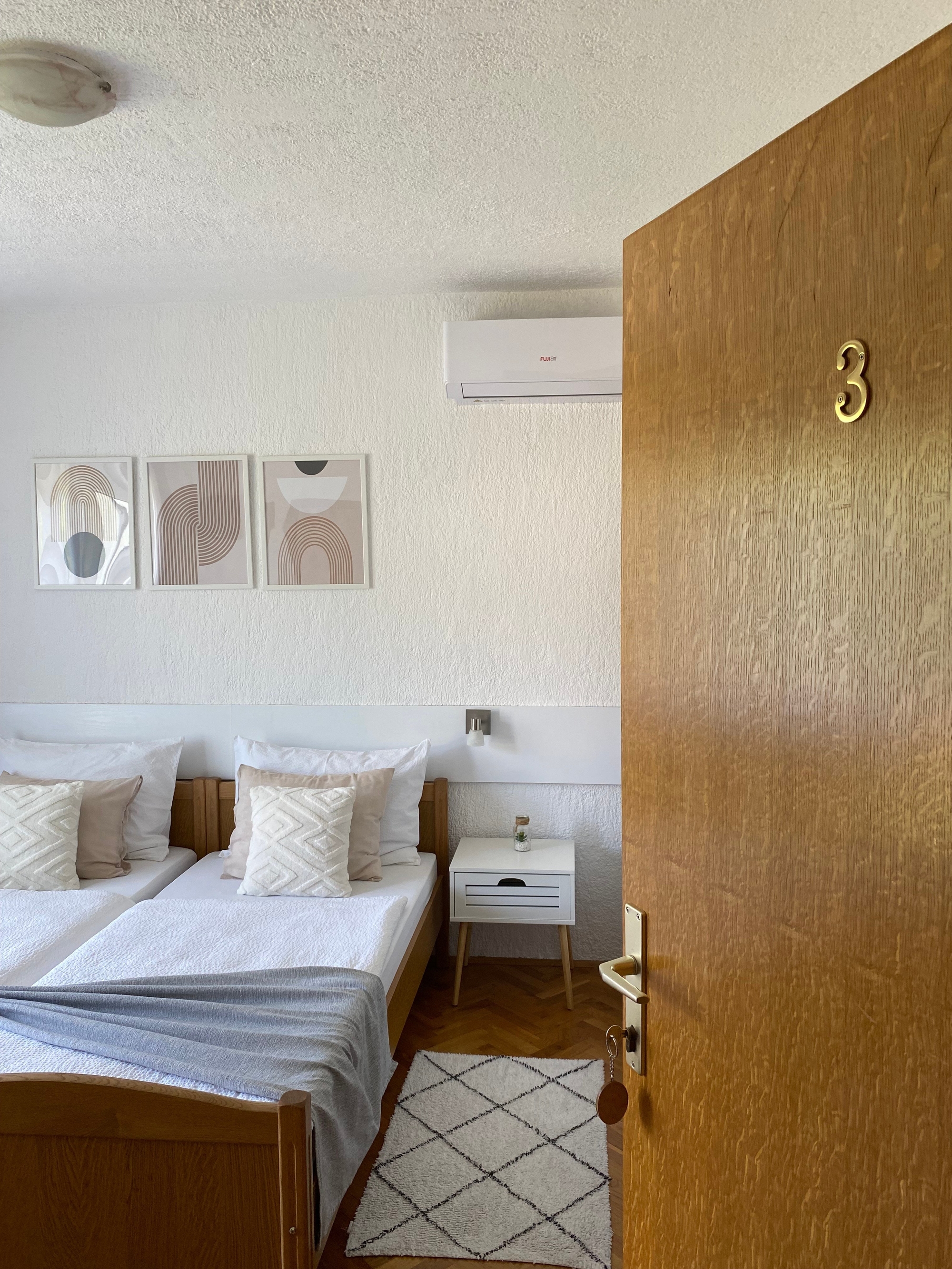 Room can accommodate 2 guests. Beds are situated in 1 sleeping rooms, within 16m2. Guests can use a private balcony to enjoy the warm summer evenings. This accommodation unit welcomes pets at an additional charge. Reserved accommodation unit is a room with its own bathroom and there is no usage of kitchen. INCLUDED IN THE PRICE: tourist tax, final cleaning, air-conditioning, central heating, parking, internet, iron, ironing board, hairdryer. OPTIONAL ADDITIONAL COSTS: laundry (€5.00 washing), pets (€10.00 per night). The availability of additional services for your chosen dates of stay, as well as their prices (if none are listed) must be checked ahead of time. Any additional services not shown in the price calculation are payable directly to the property owner and only if used by the visitor. Discounts to the base price: free day 14=13 (for reservations of 14 or more days you get one free day for the stay until 31122026).